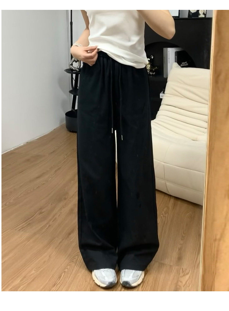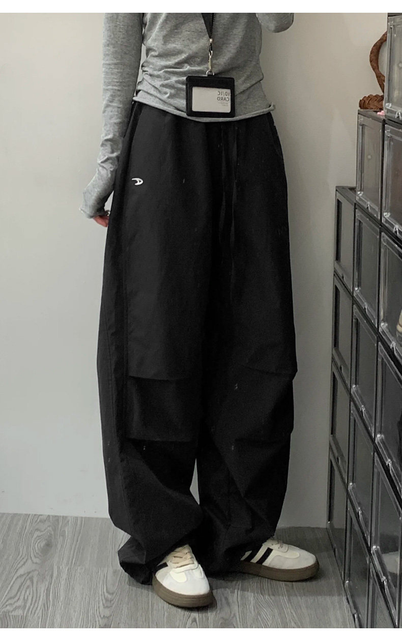Navy blue American overalls for women spring 2026 new high waist drape loose casual retro wide leg sports pants