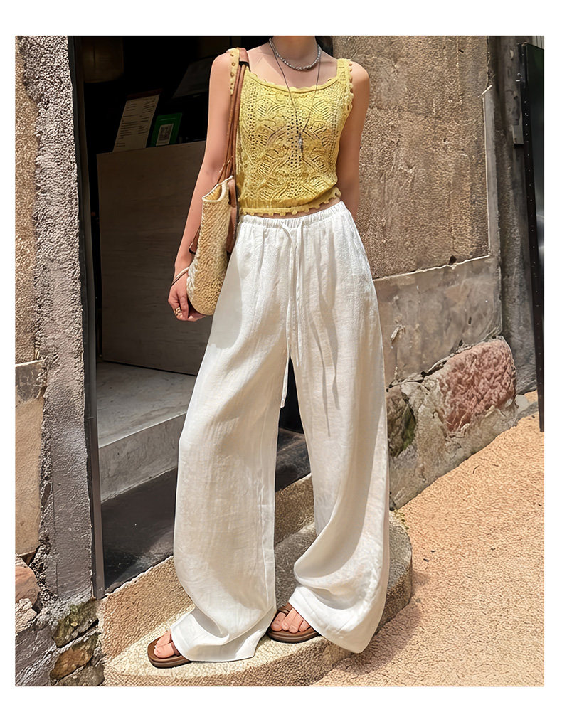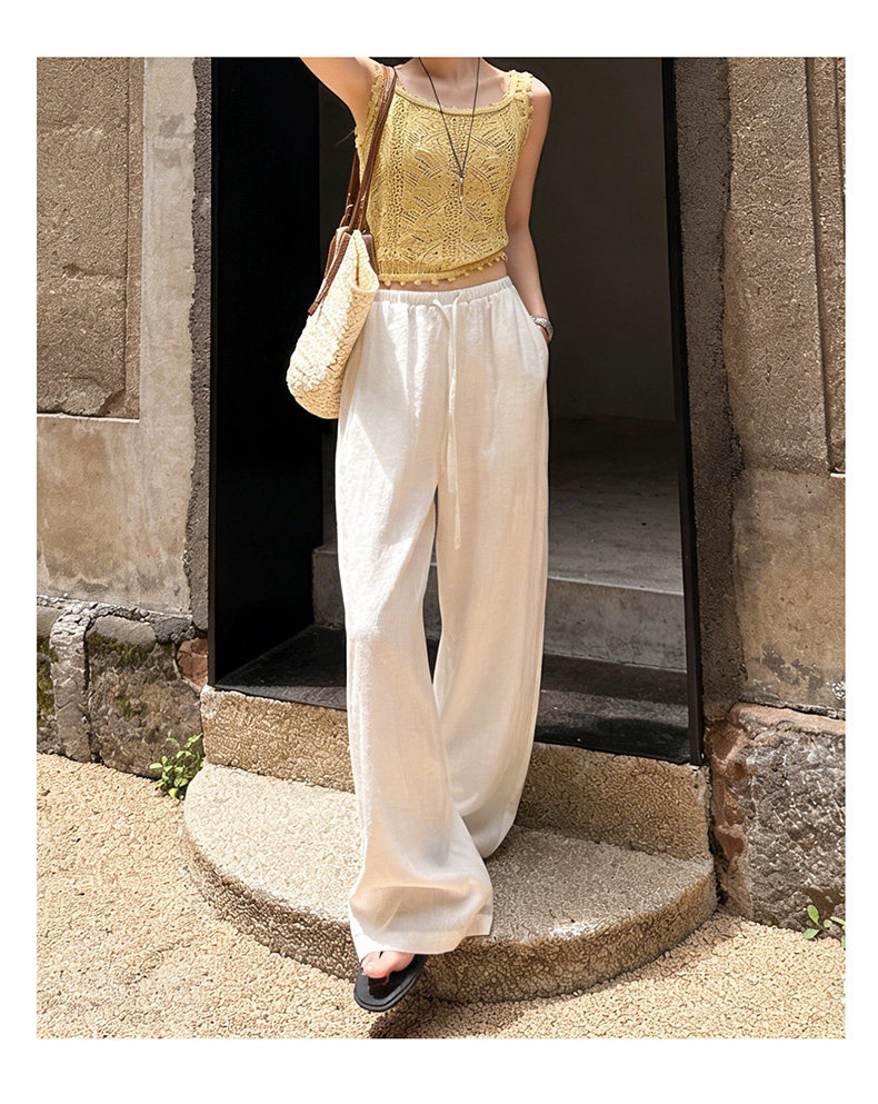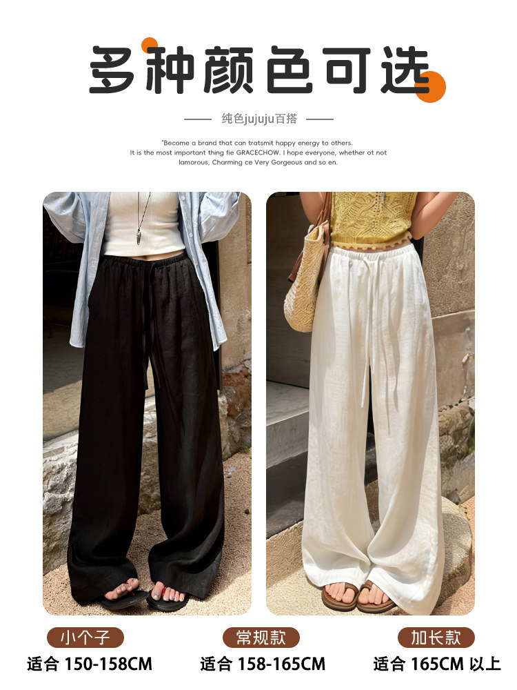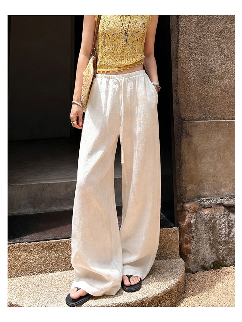 White linen pants for women 2026 new summer relaxed old money straight pants casual ice silk ramie cotton and linen wide leg pants