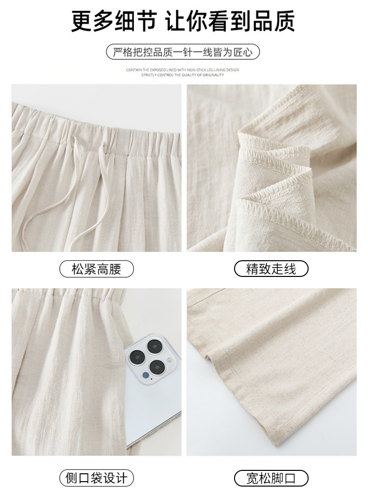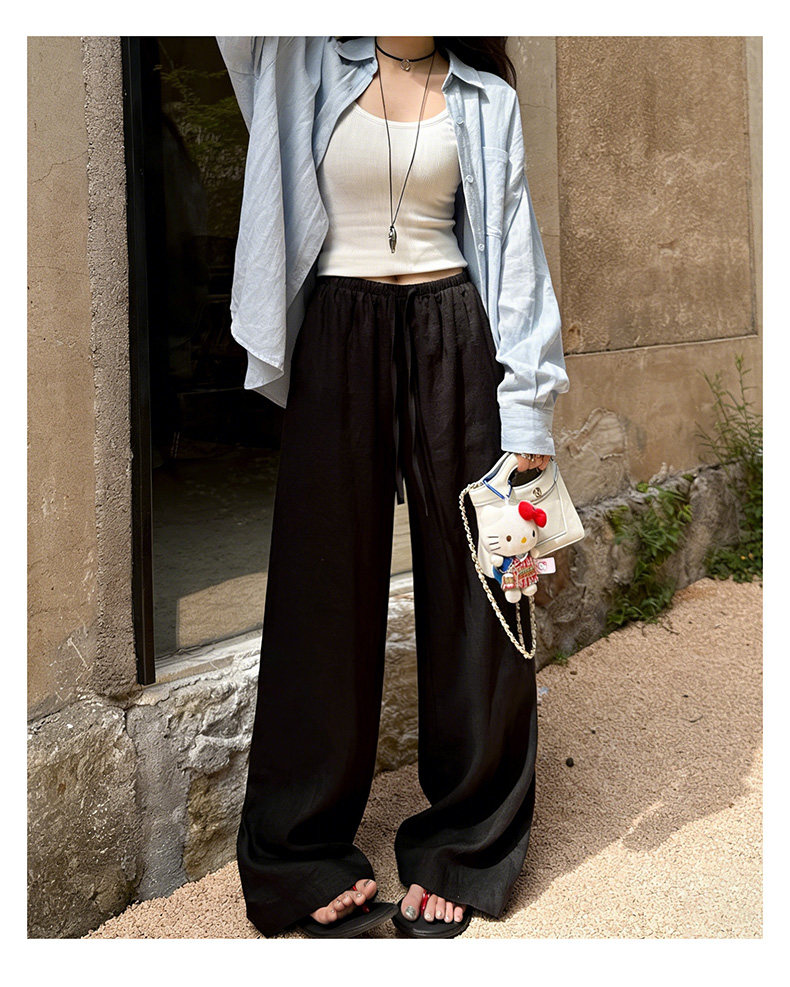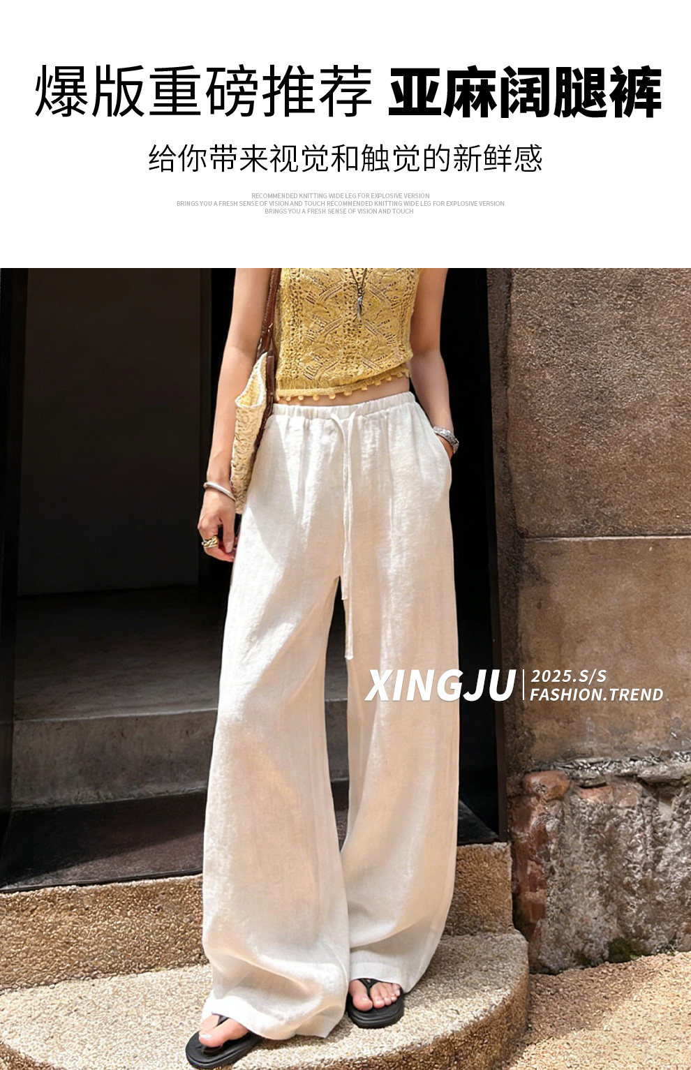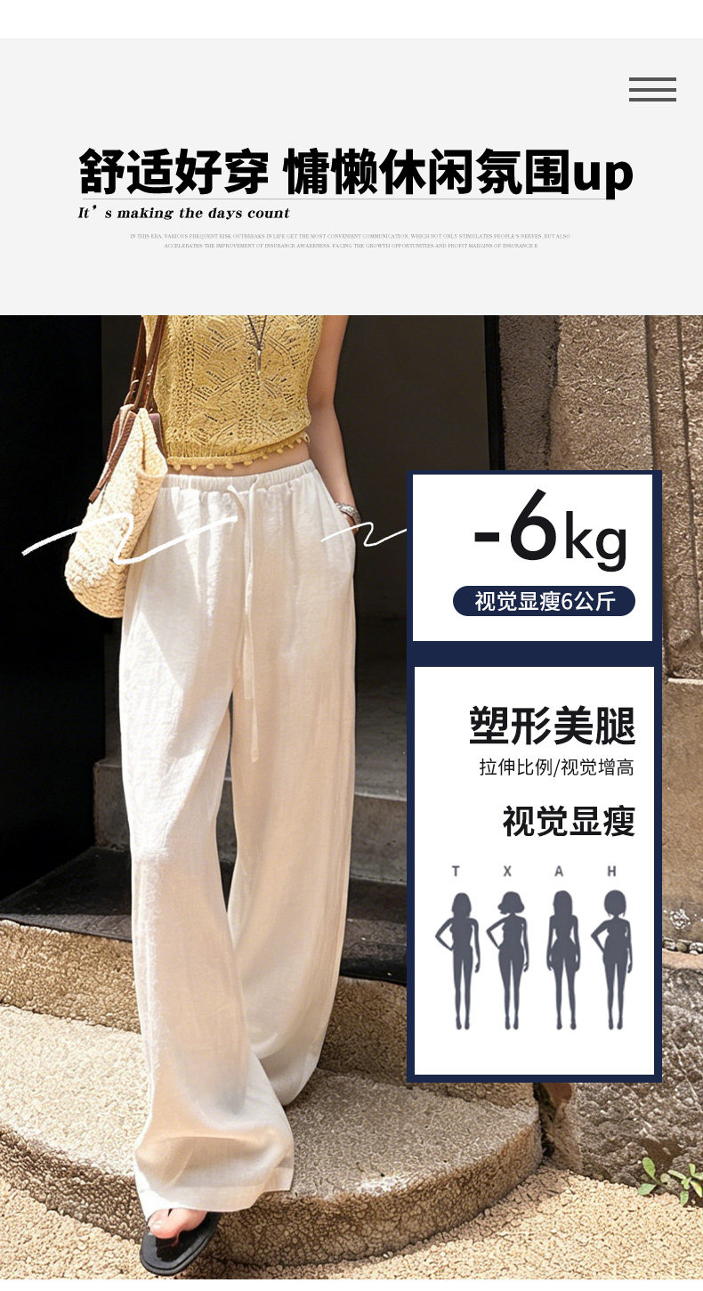 White linen pants for women 2026 new summer relaxed old money straight pants casual ice silk ramie cotton and linen wide leg pants