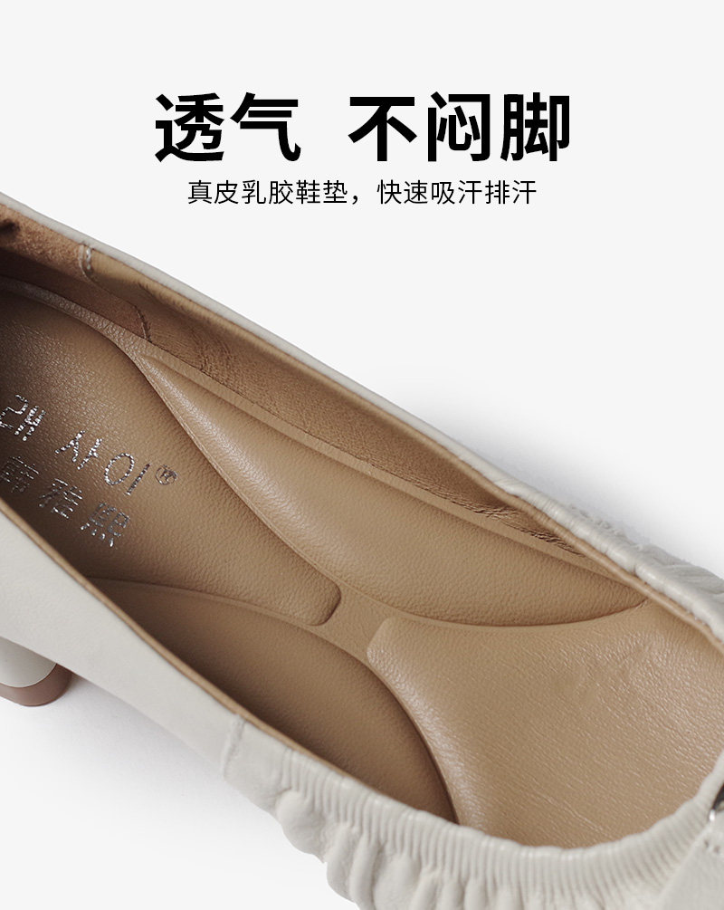 Sheepskin thick heel single shoes for women, low heel, genuine leather, versatile, fashionable, elegant, commuting, simple, 2026 spring new small leather shoes