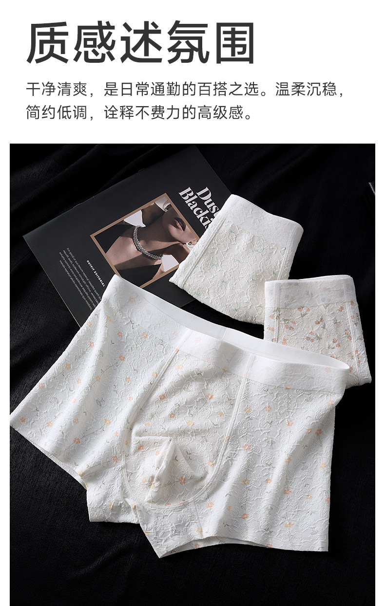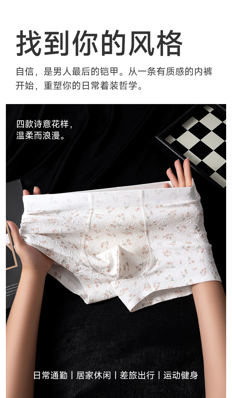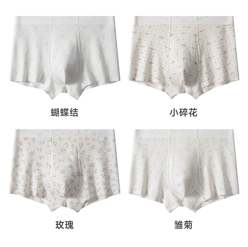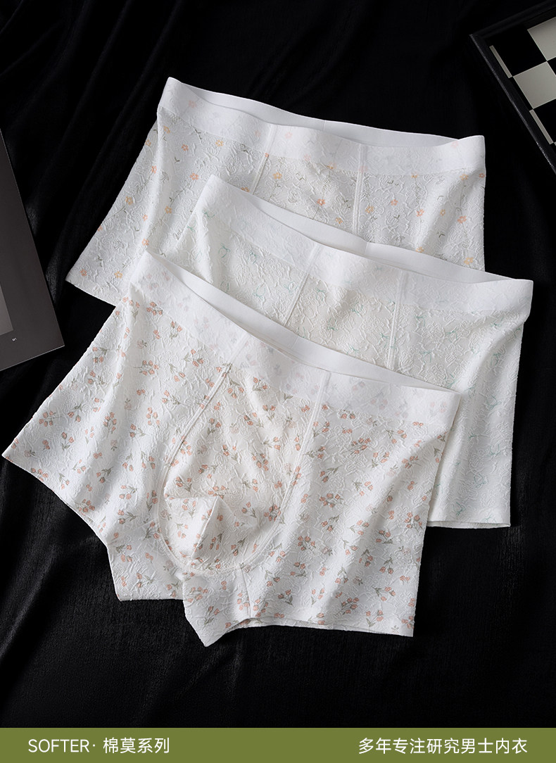New Cotton Men's Underwear, Seamless and Breathable, 10A Antibacterial Crotch, Youth Style with Small Floral Print, Shorts