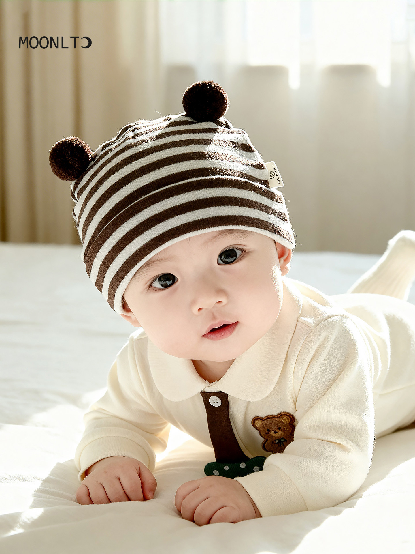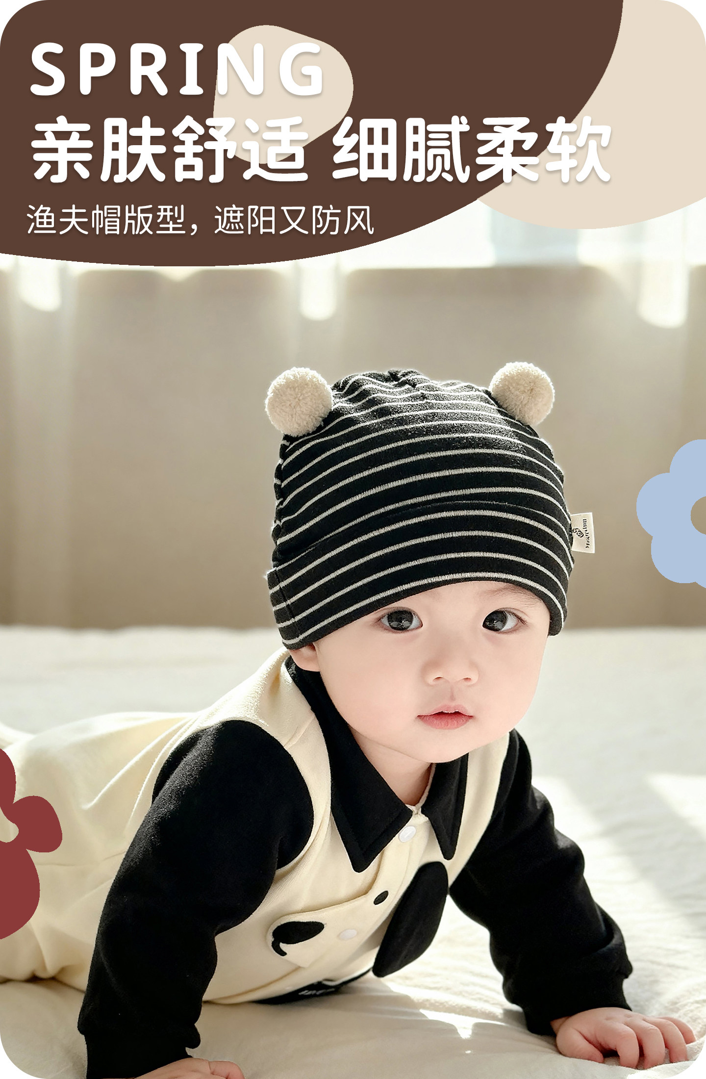 Infant and toddler hats spring and autumn double ball stripes sun protection thin newborn baby hats for male and female babies small month old pullover hats