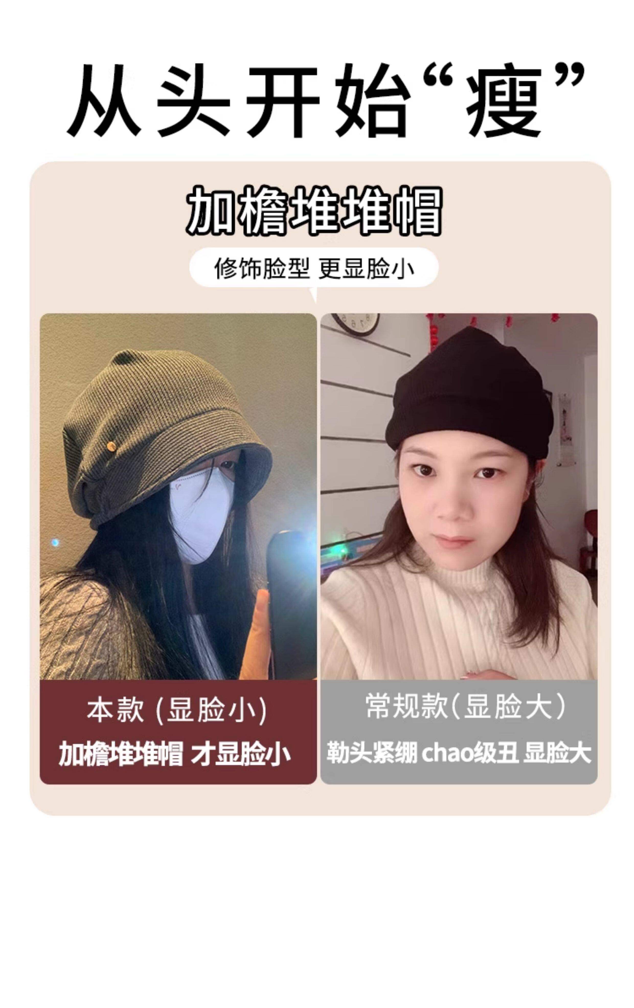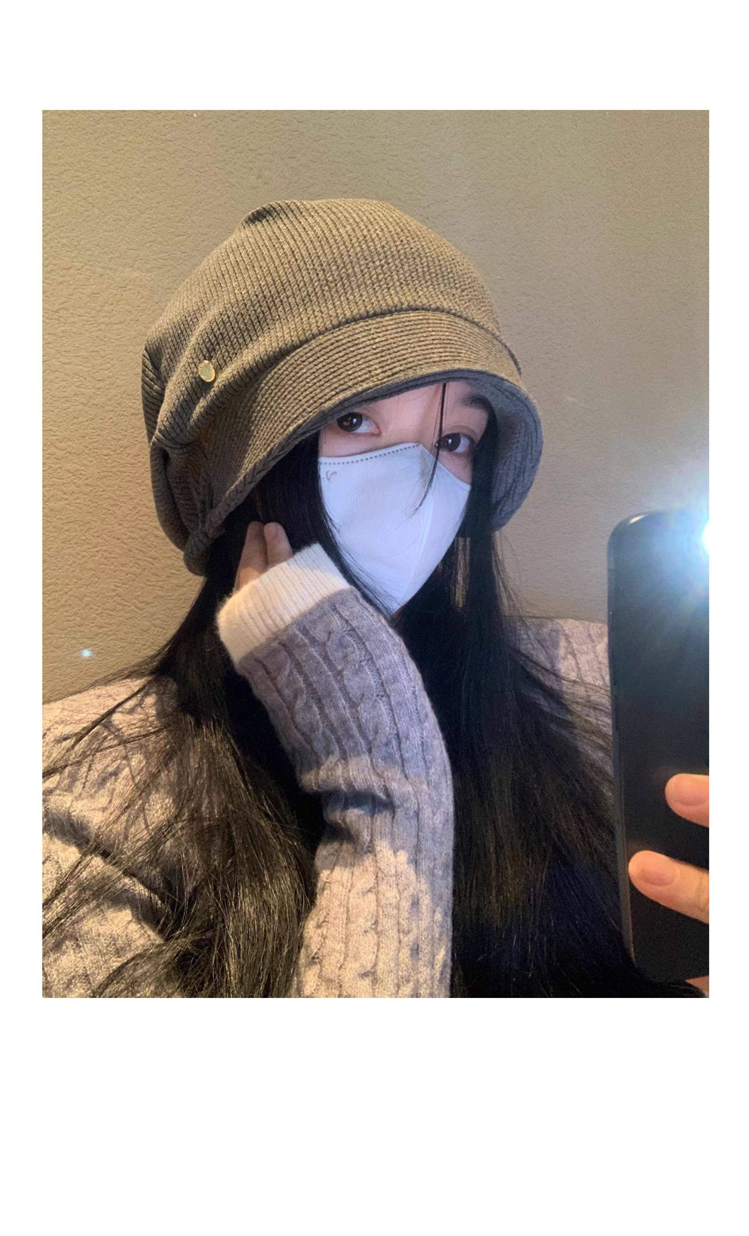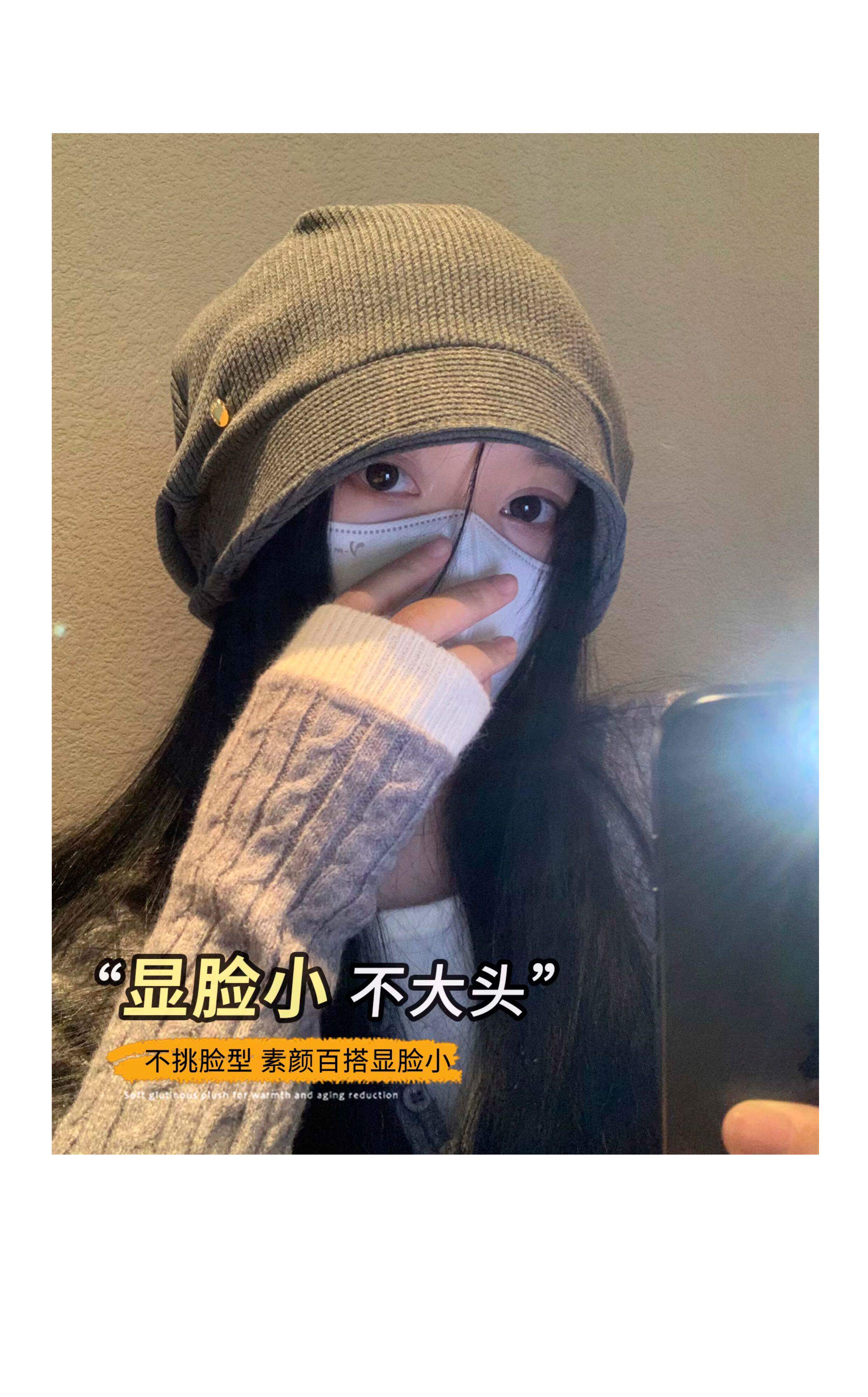 Mqvq Slouchy Beanie for Women, Spring Korean Style, Versatile, Large Head Circumference, Bare Face Covering, Thin and Loose Fit, Makes Face Look Smaller, Headwrap Hat
