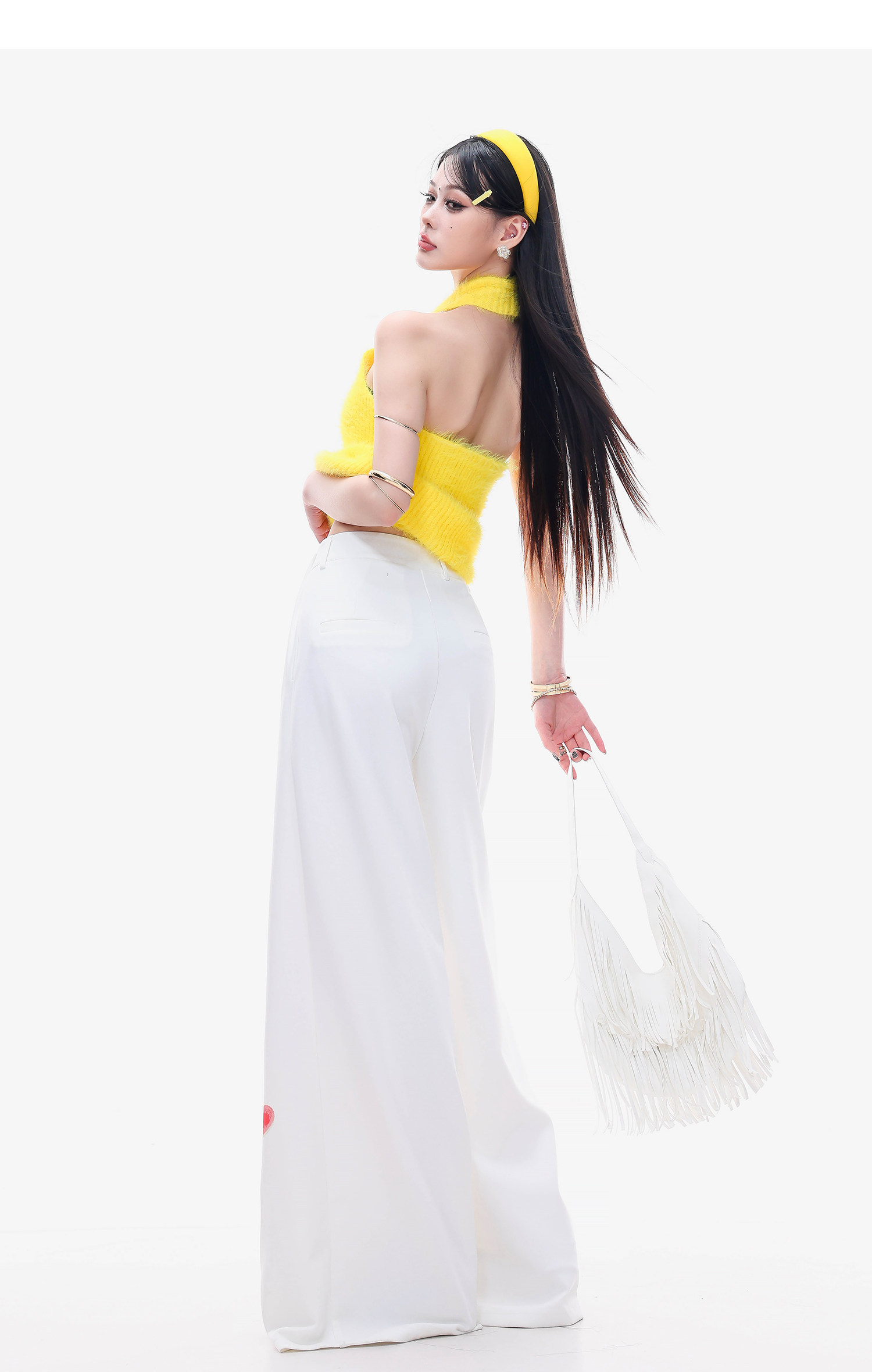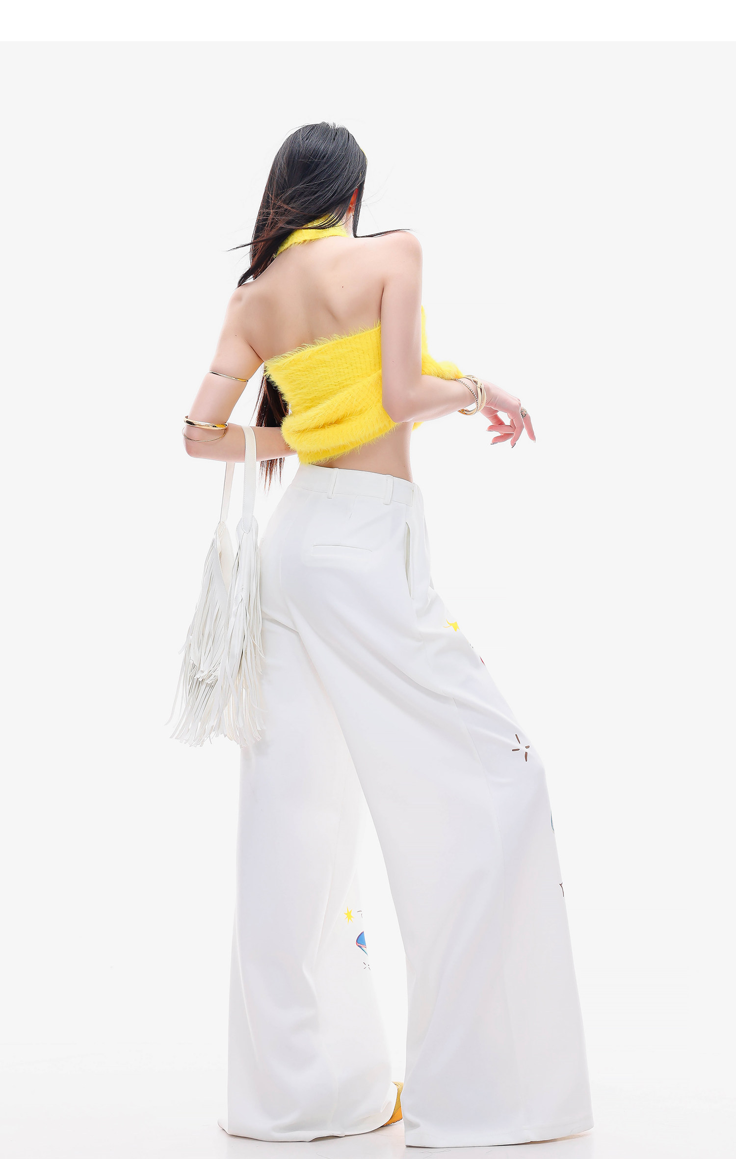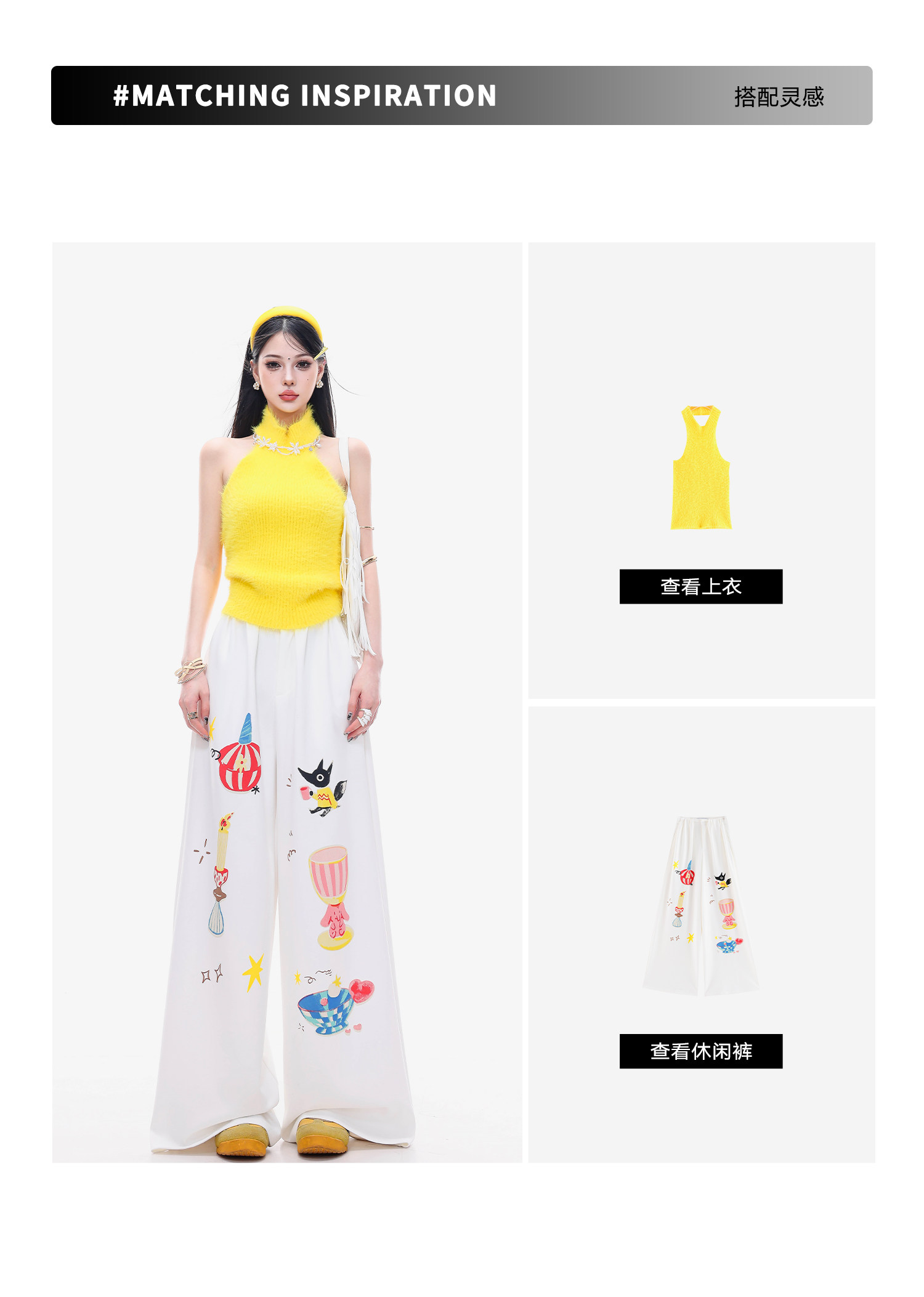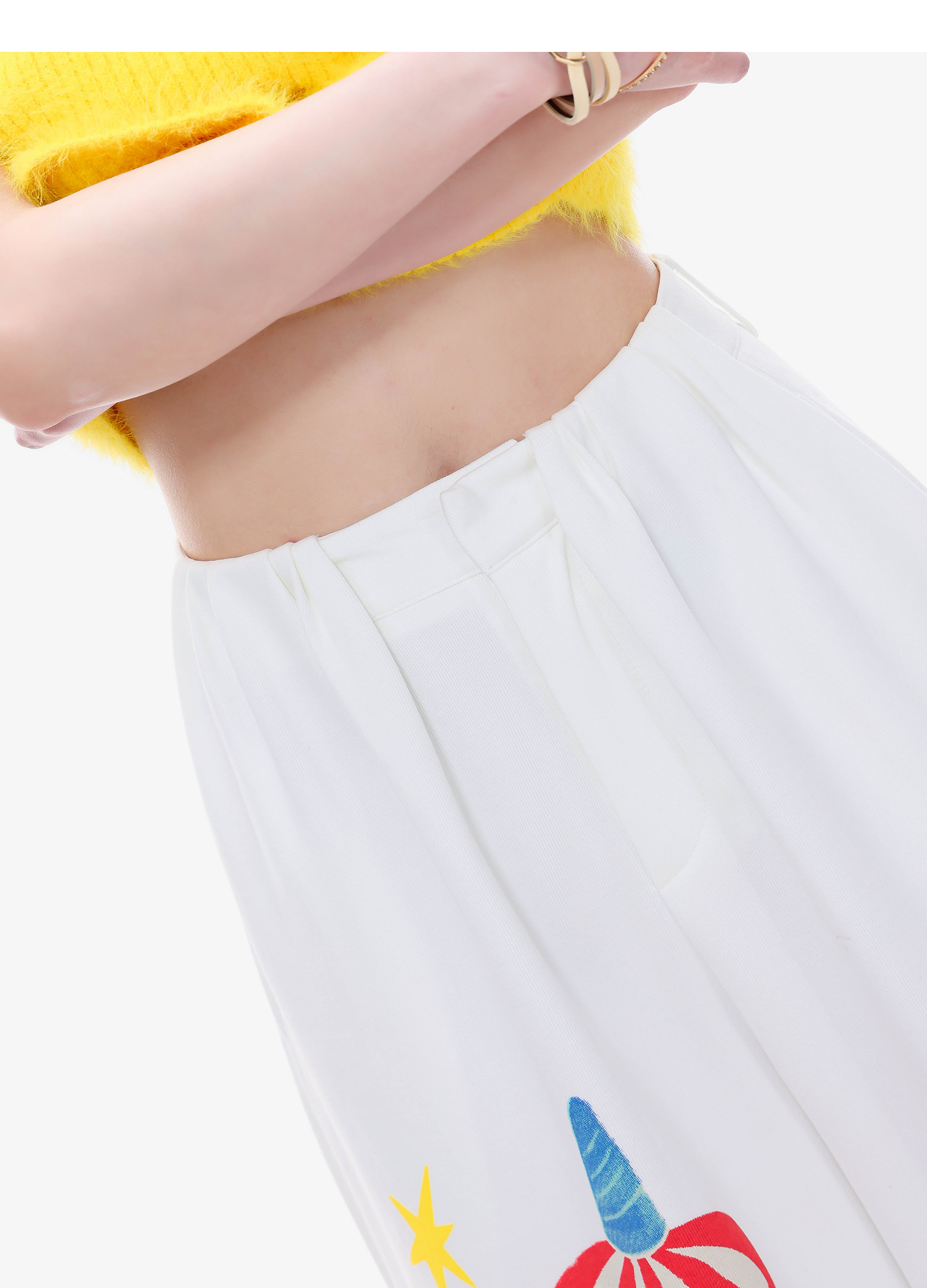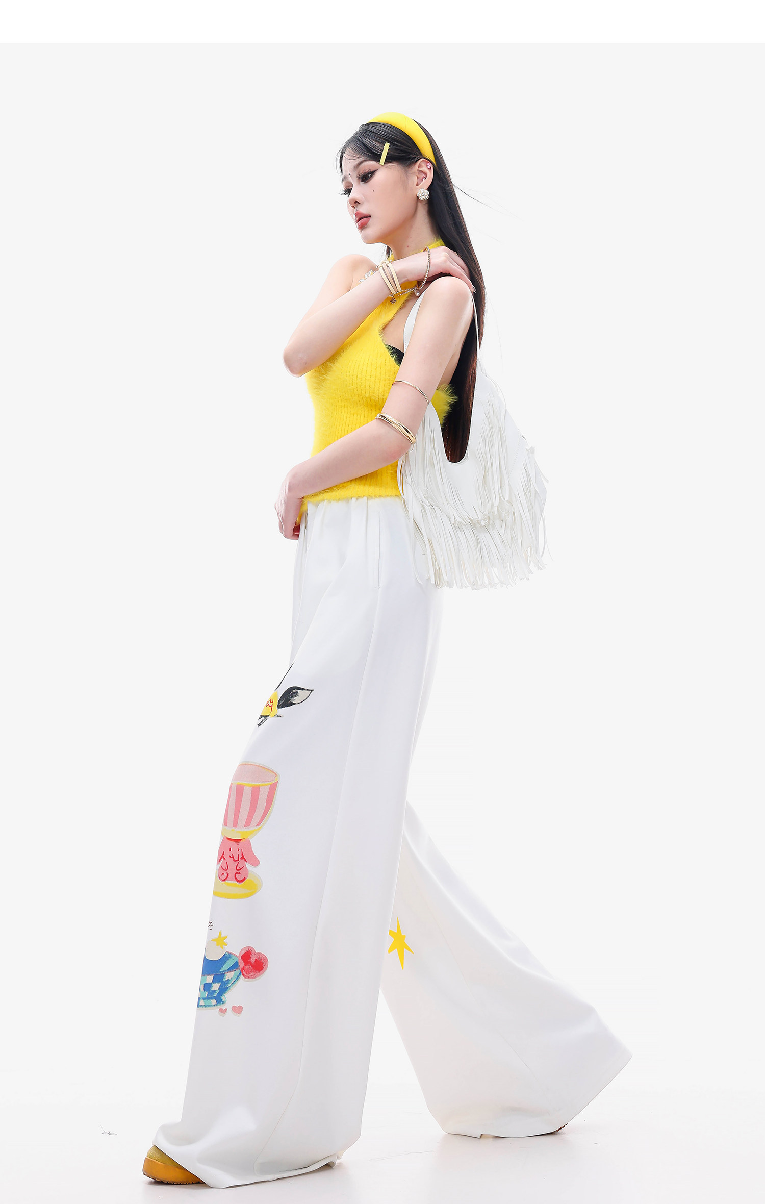 Abwlr Fairy Tale Town-Original Cartoon Printed Straight Wide-Leg Pants for Women Spring and Summer White Loose Slimming Look Casual Pants