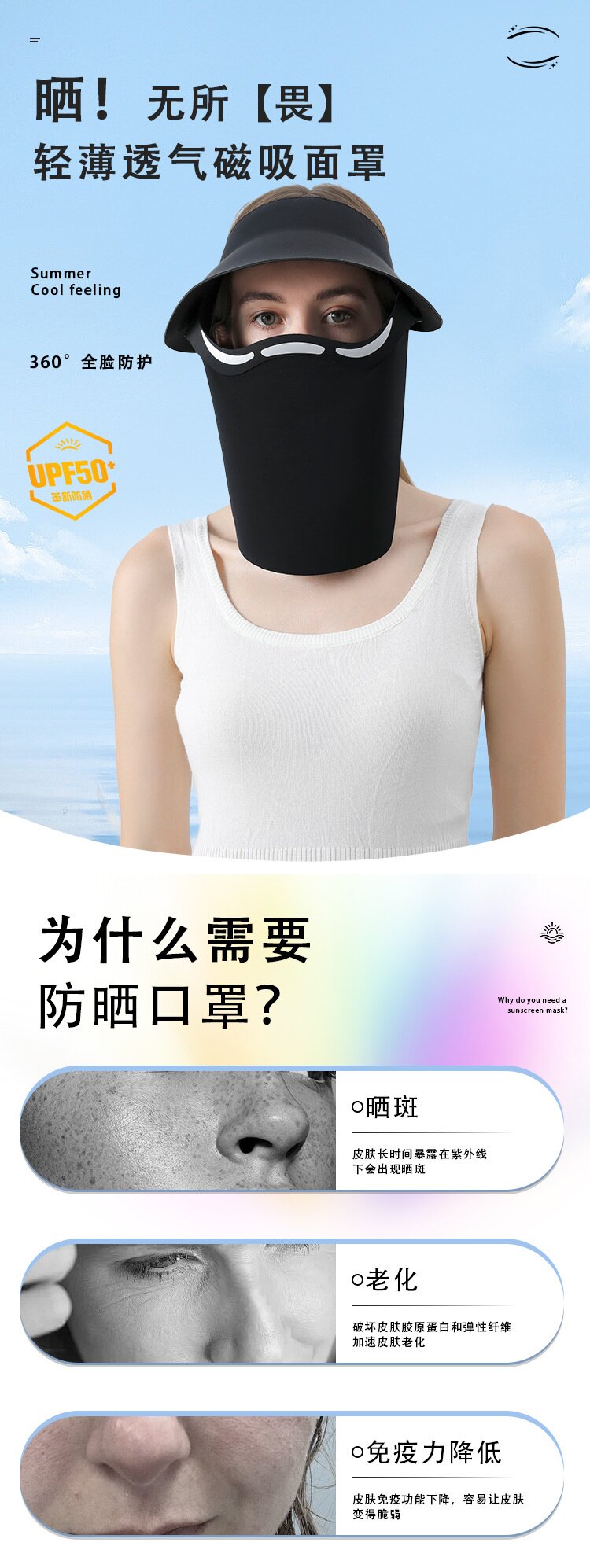 New magnetic mask sun protection hat for women summer anti-UV sun hat empty top hat full face sun protection mask for men