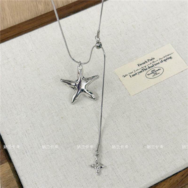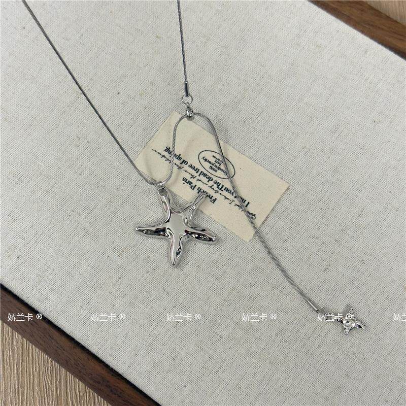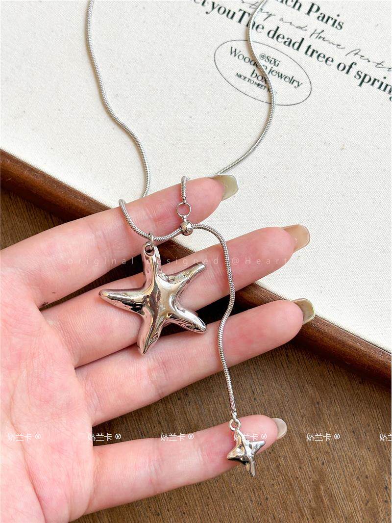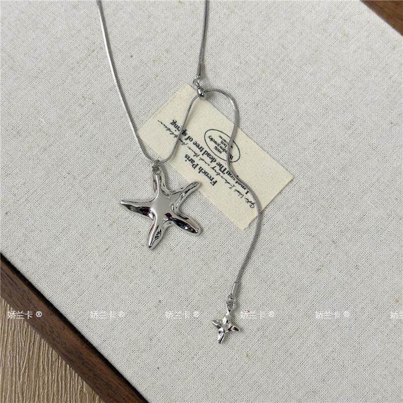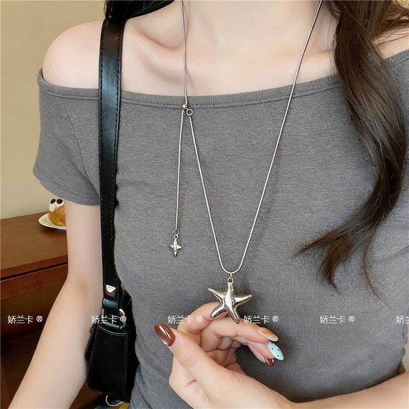 Korean-Style Metal Star Pendant Necklace for Women, Light Luxury and High-End Feel, Long Pull-Out Star Tassel Sweater Chain Accessory