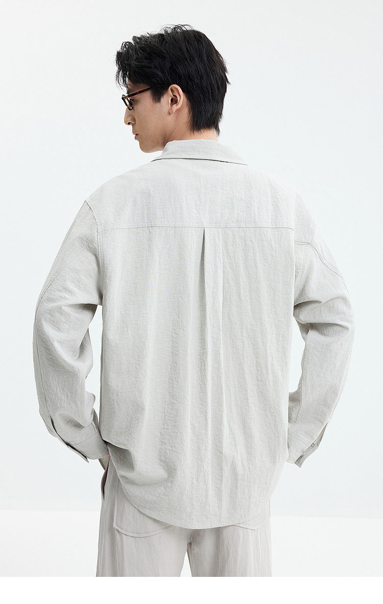 Black Zeming Men's Lyocell Textured Shirt 2026 Spring New Old Money Style Retro Loose Lapel Top