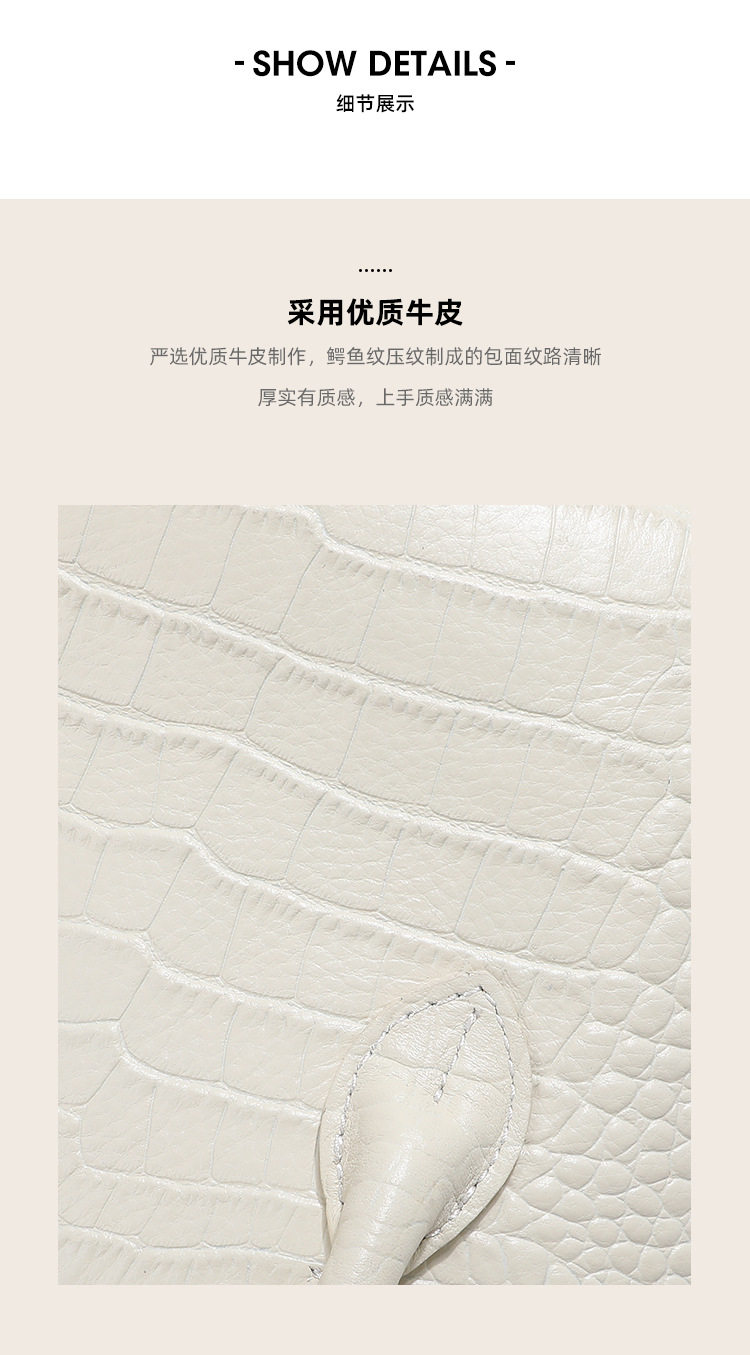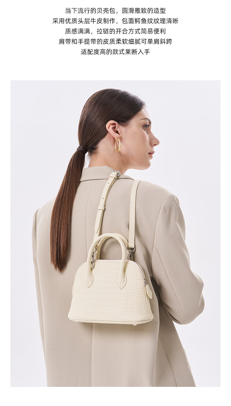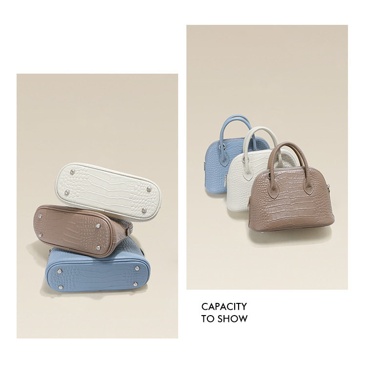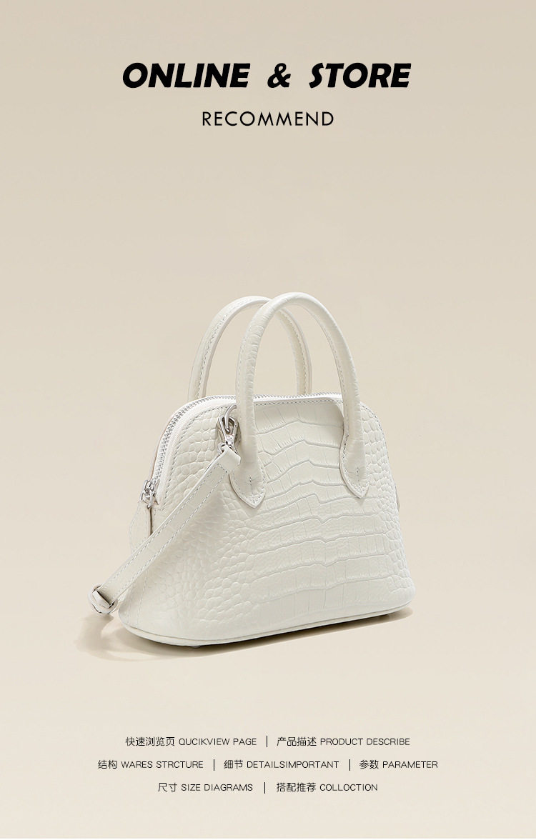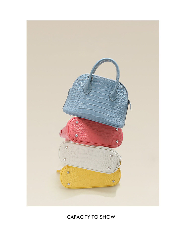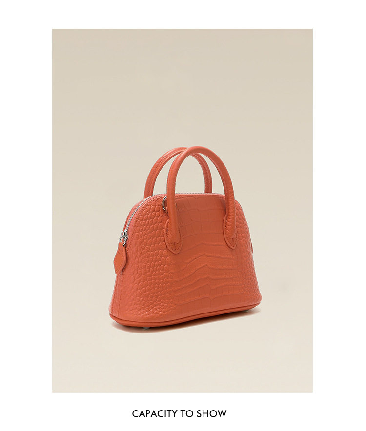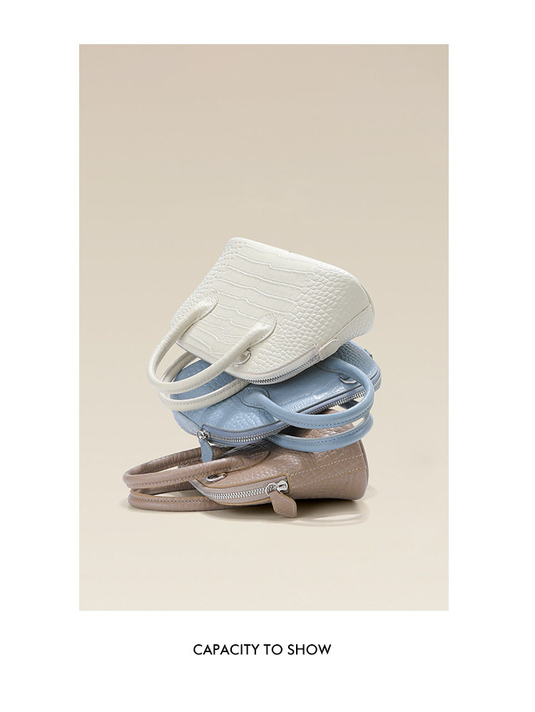 French Fmkgoyar Crocodile Pattern Shell Bag Genuine Leather Women's Bag First-Layer Cowhide Commuter Handbag Single Shoulder Crossbody Bag