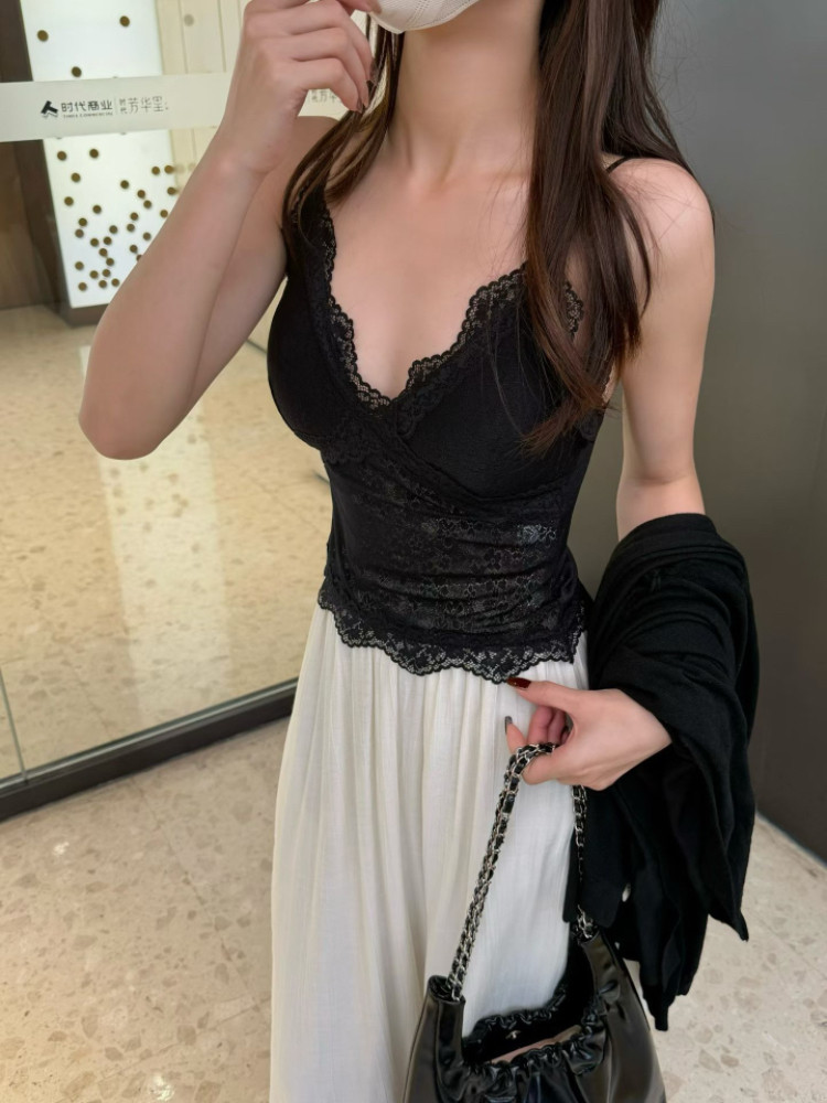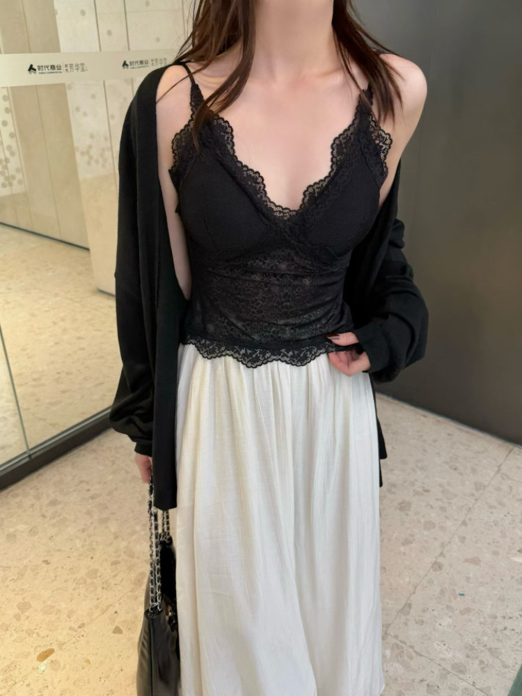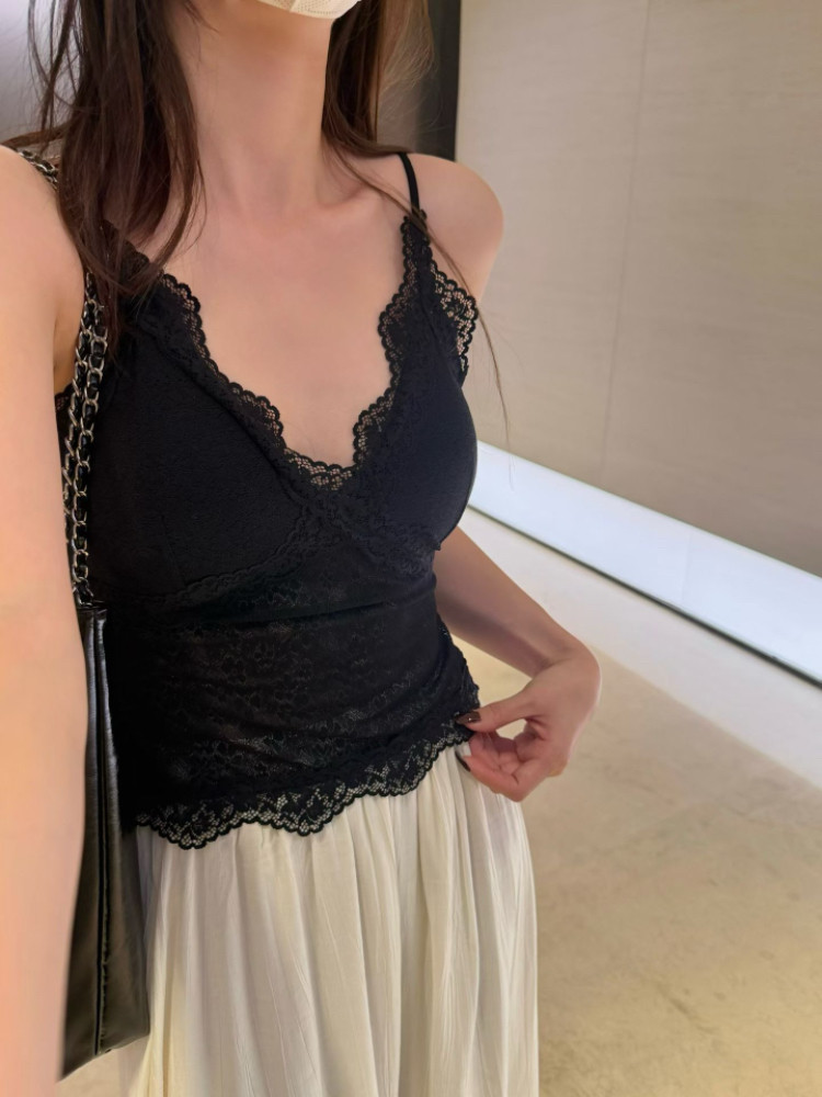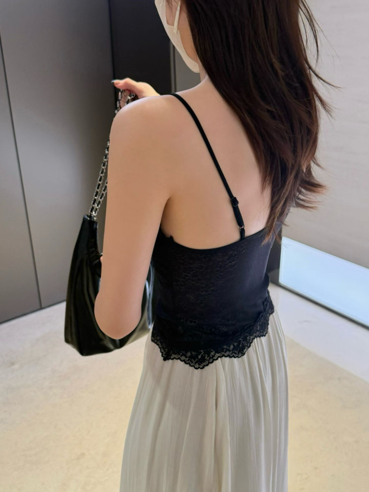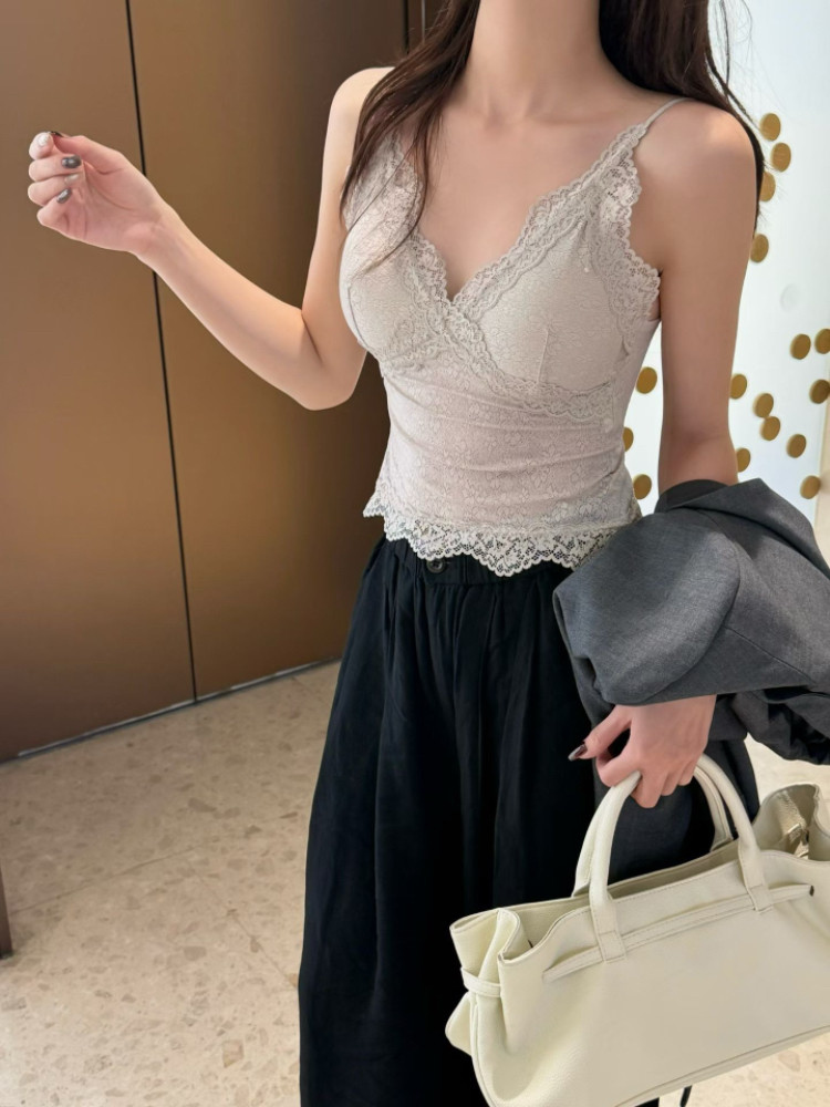 Sweet Lace Camisole for Women with Built-In Bra Pads, Beautiful Back Design, Integrated Bra and Underwear, Summer Outerwear Top