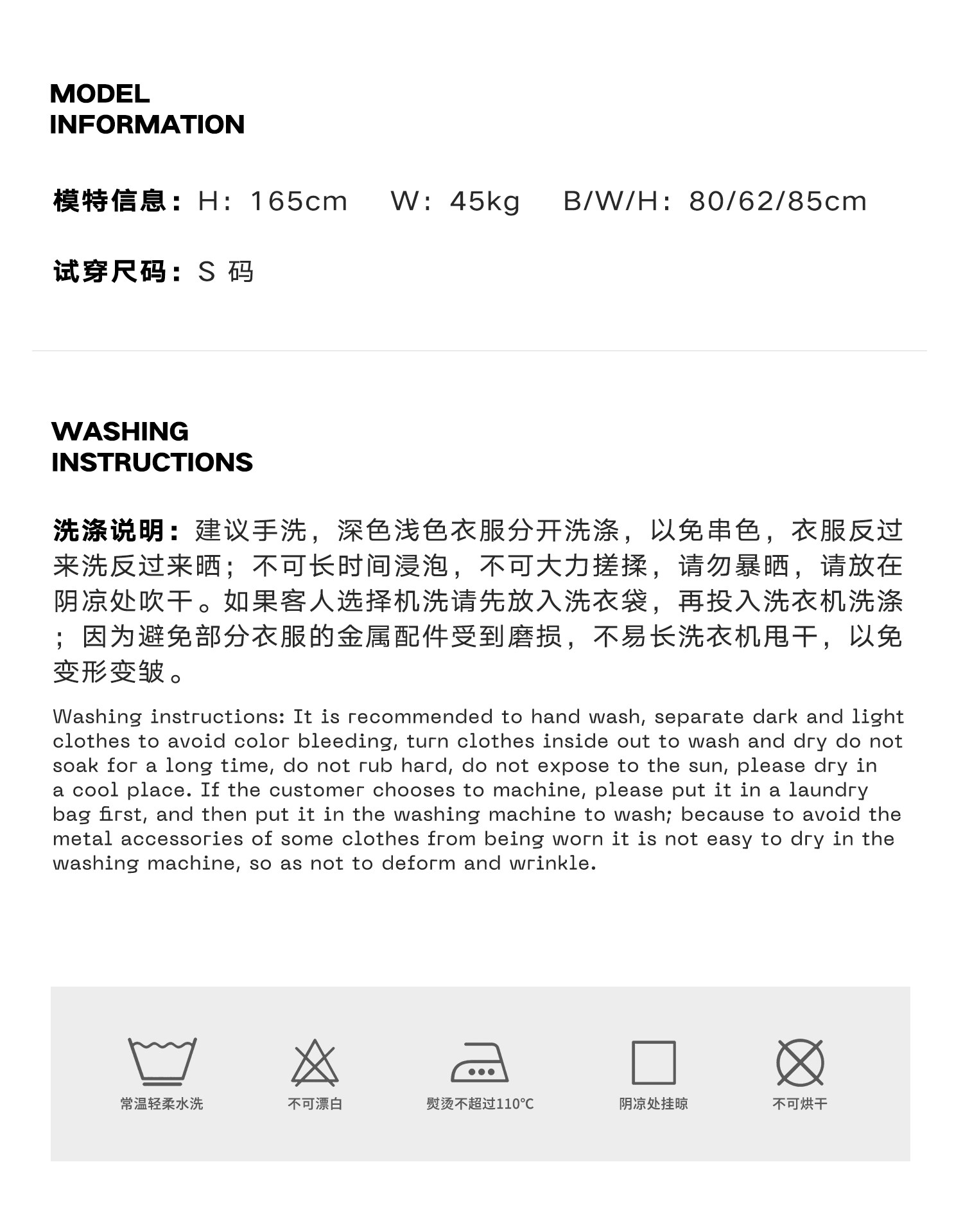 China (cm) 160-165/84-86 165-170 / 88-90 167-172 / 92-96 168-173 / 98-102 170-176 / 106-110