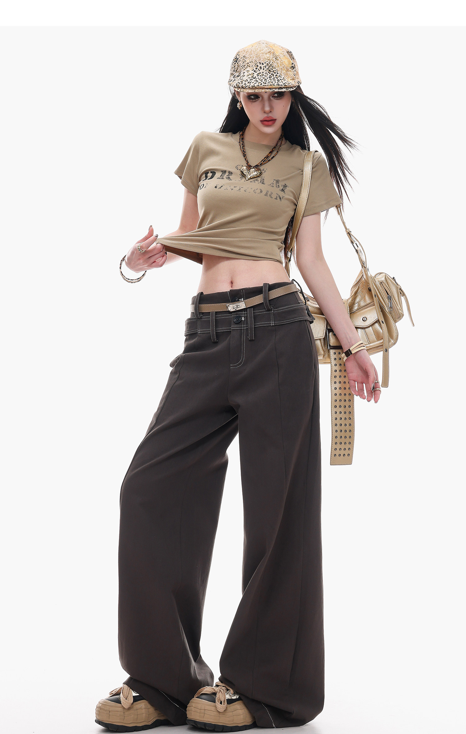 Abwlr Gray Space - Original American-Style Wide-Leg Pants for Women, Loose and Drapey, Versatile, Slimming, Casual Straight-Leg Pants