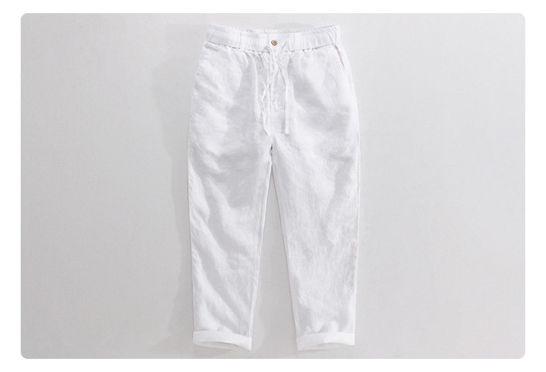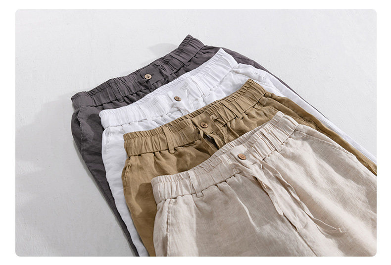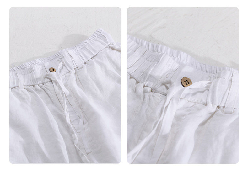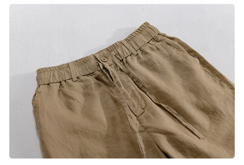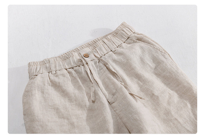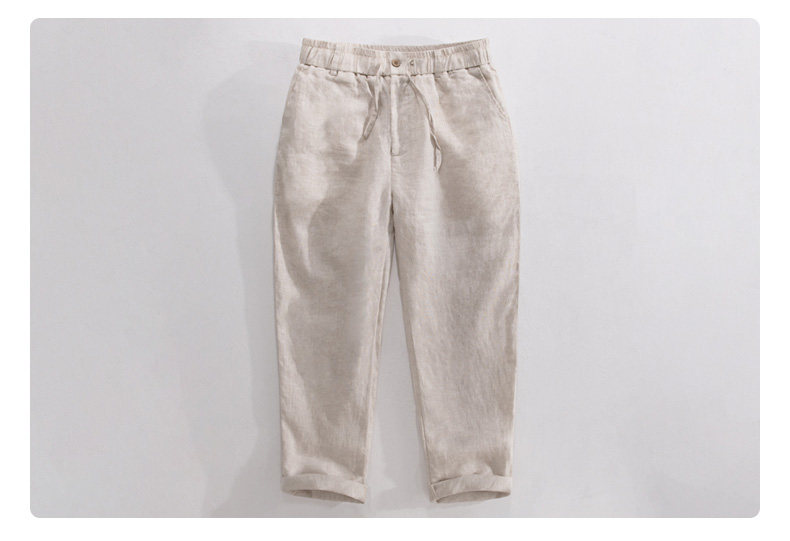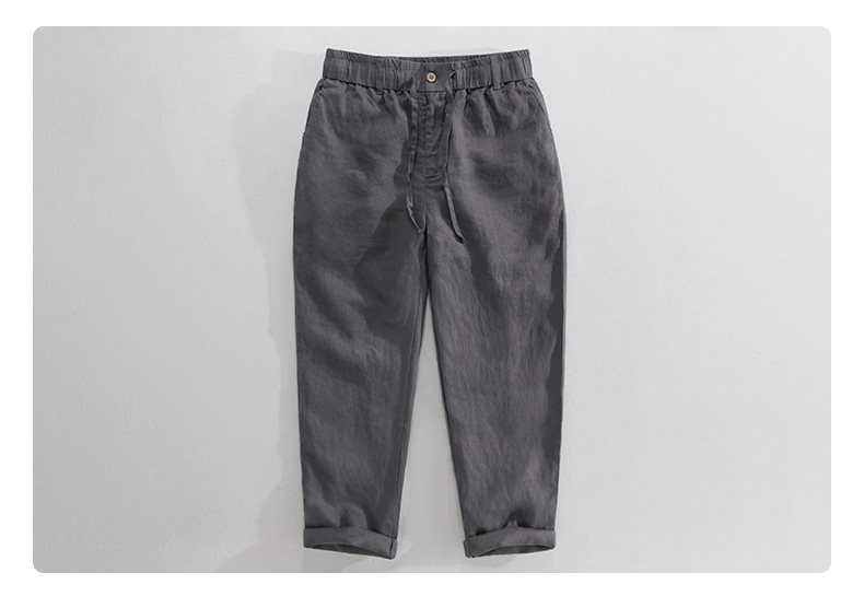 High-End Pure Linen Textured Wide-Leg Straight Pants for Men, Elastic Waist Drawstring Casual Pants, Drapey Full Linen Long Pants