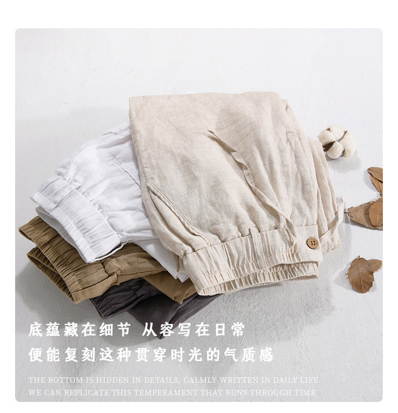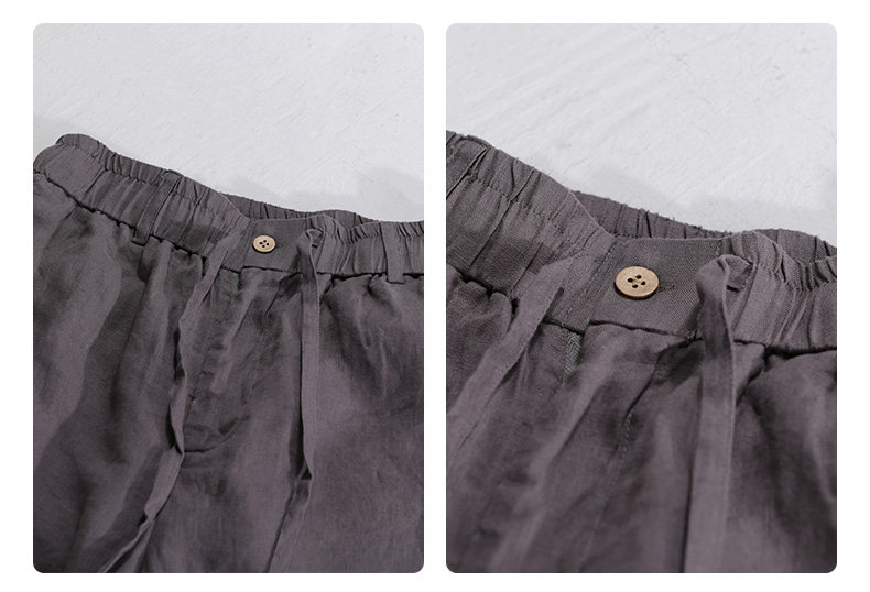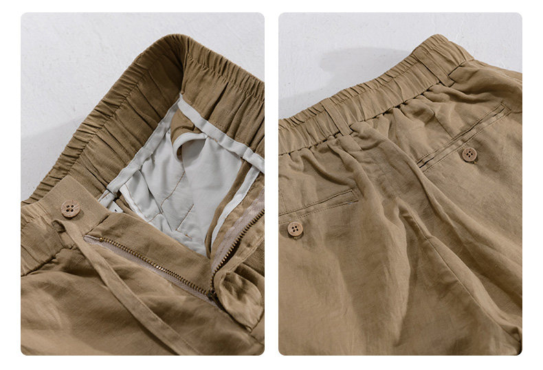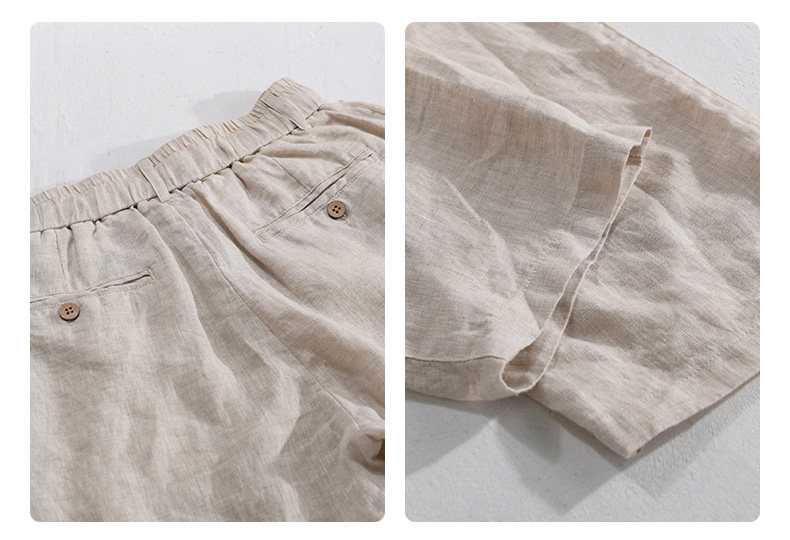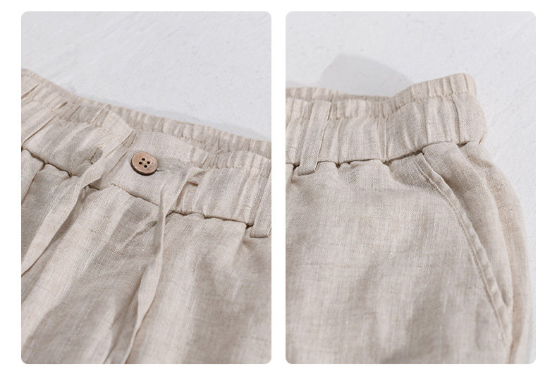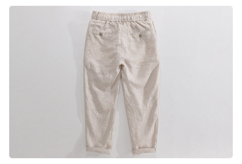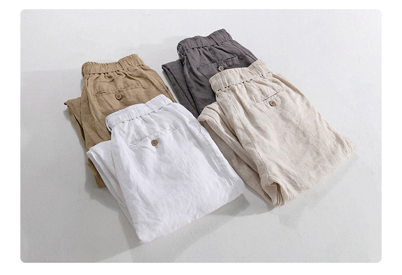High-End Pure Linen Textured Wide-Leg Straight Pants for Men, Elastic Waist Drawstring Casual Pants, Drapey Full Linen Long Pants