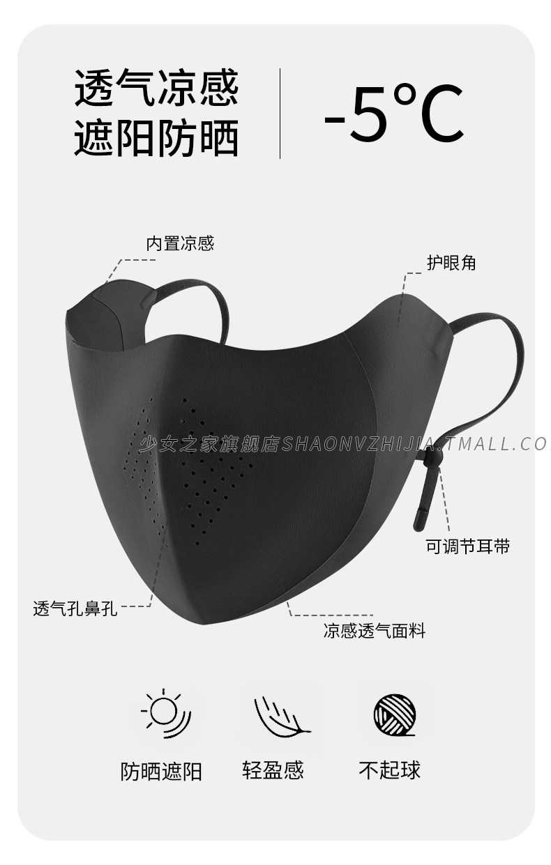 Black Sun Protection Mask for Women, Anti-Uv, Summer Ice Silk Thin Model, Three-Dimensional Breathable Eye Protection, Cycling Sunshade Mask