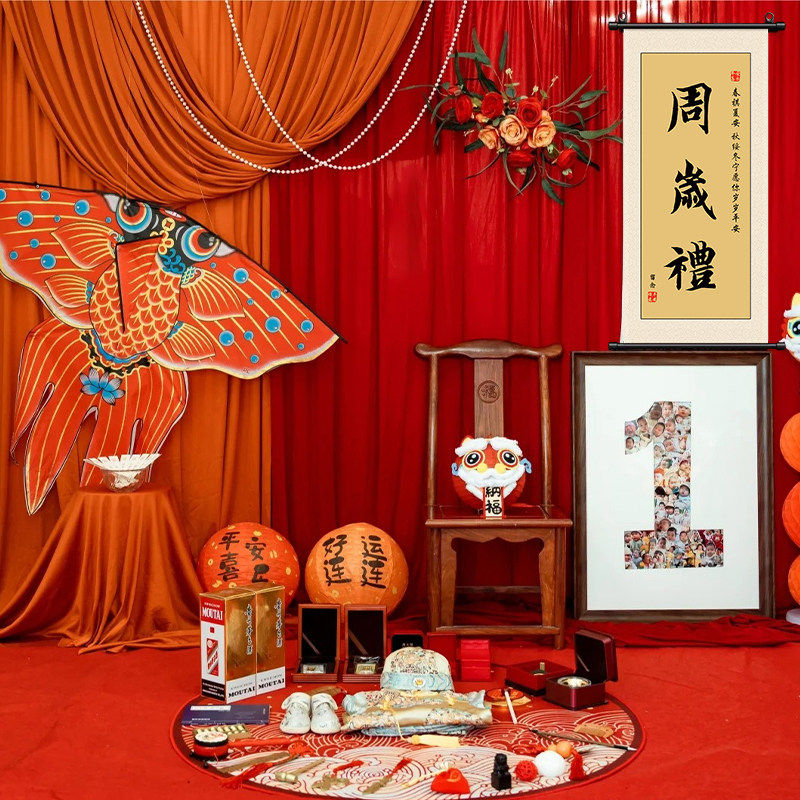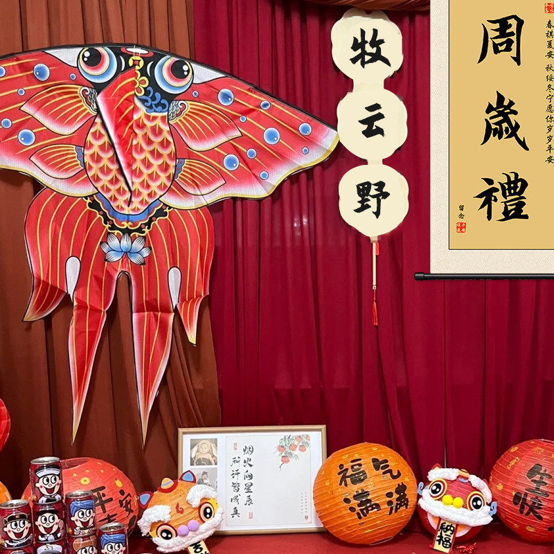 Baby's First Birthday Ceremony Scene Setup, Atmospheric Lanterns, Children's Birthday Backdrop Decoration, Paper Kite, First Birthday Package