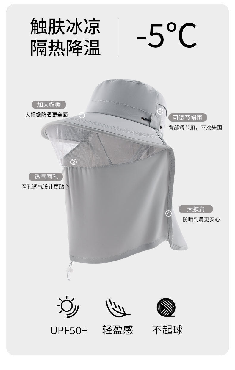 Sun Protection Hat for Women, Summer Uv Protection, Large Brim Fisherman's Hat, Face Mask for Men, Fishing Mosquito-Proof Sun Hat