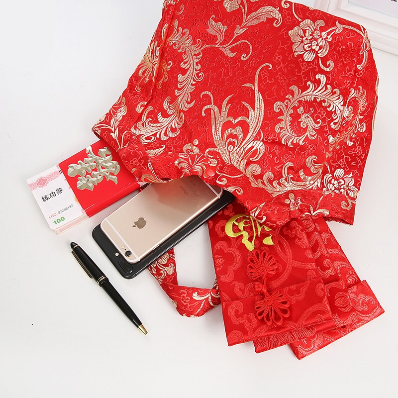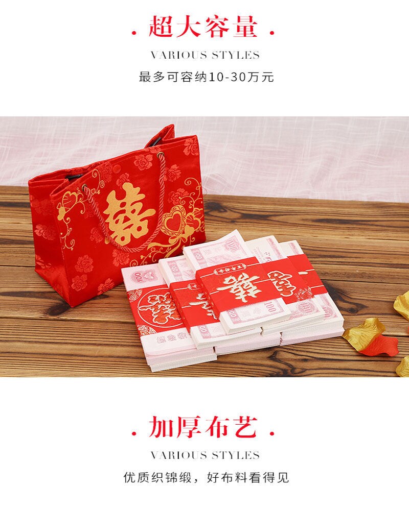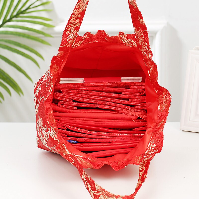 Wedding Gift Money Bag, Engagement 20W Dowry Money, Portable Red Envelope Bag, Extra-Large Fabric Red Envelope Bag, Bride's Dowry Bag