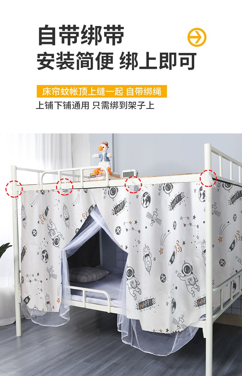 Student Dormitory Mosquito Net with Strong Light-Blocking and Anti-Mosquito Features, Integrated Bed Curtain 0.9m, Fully Enclosed, Suitable for Both Upper and Lower Bunk Beds, Bed Surround 1.2m