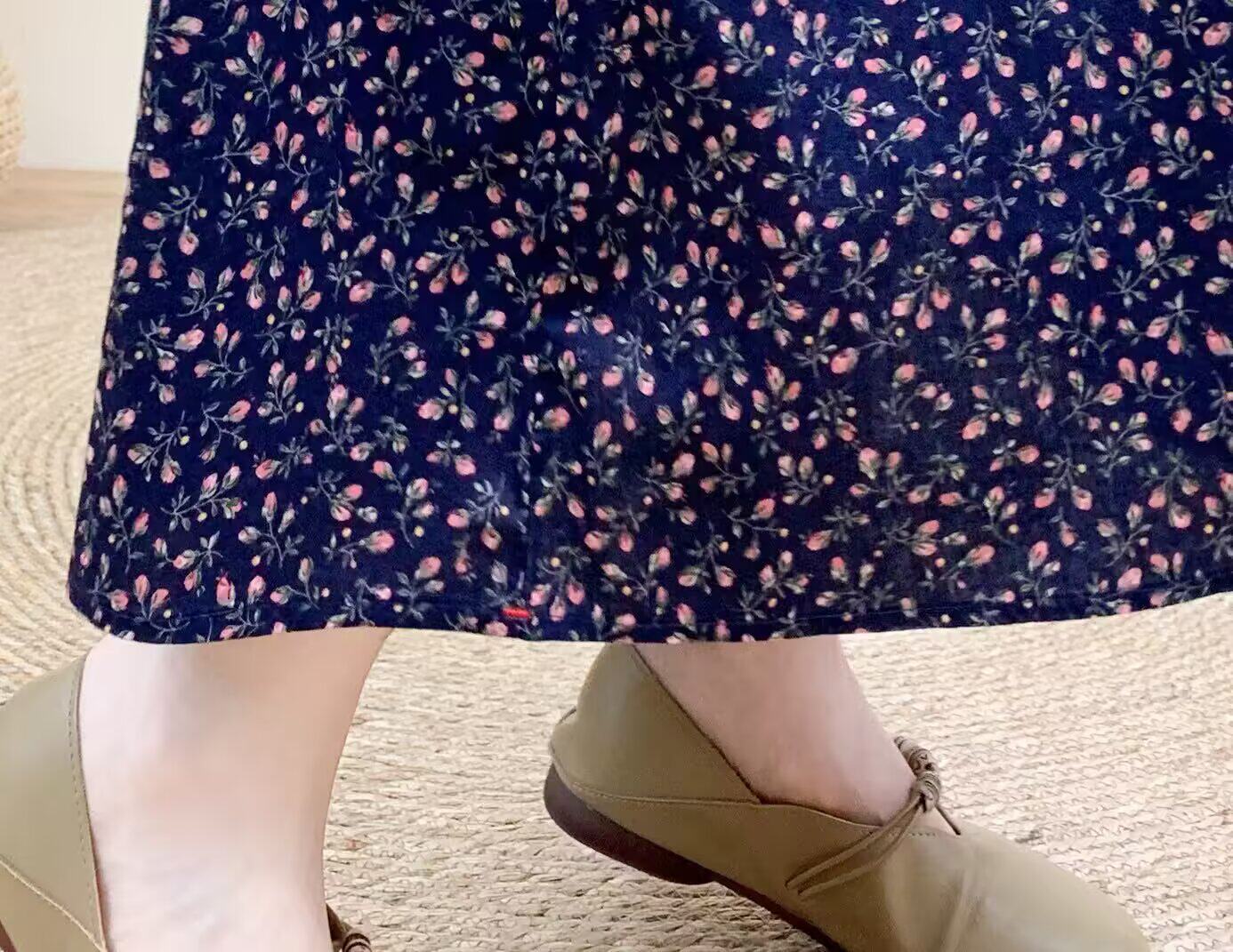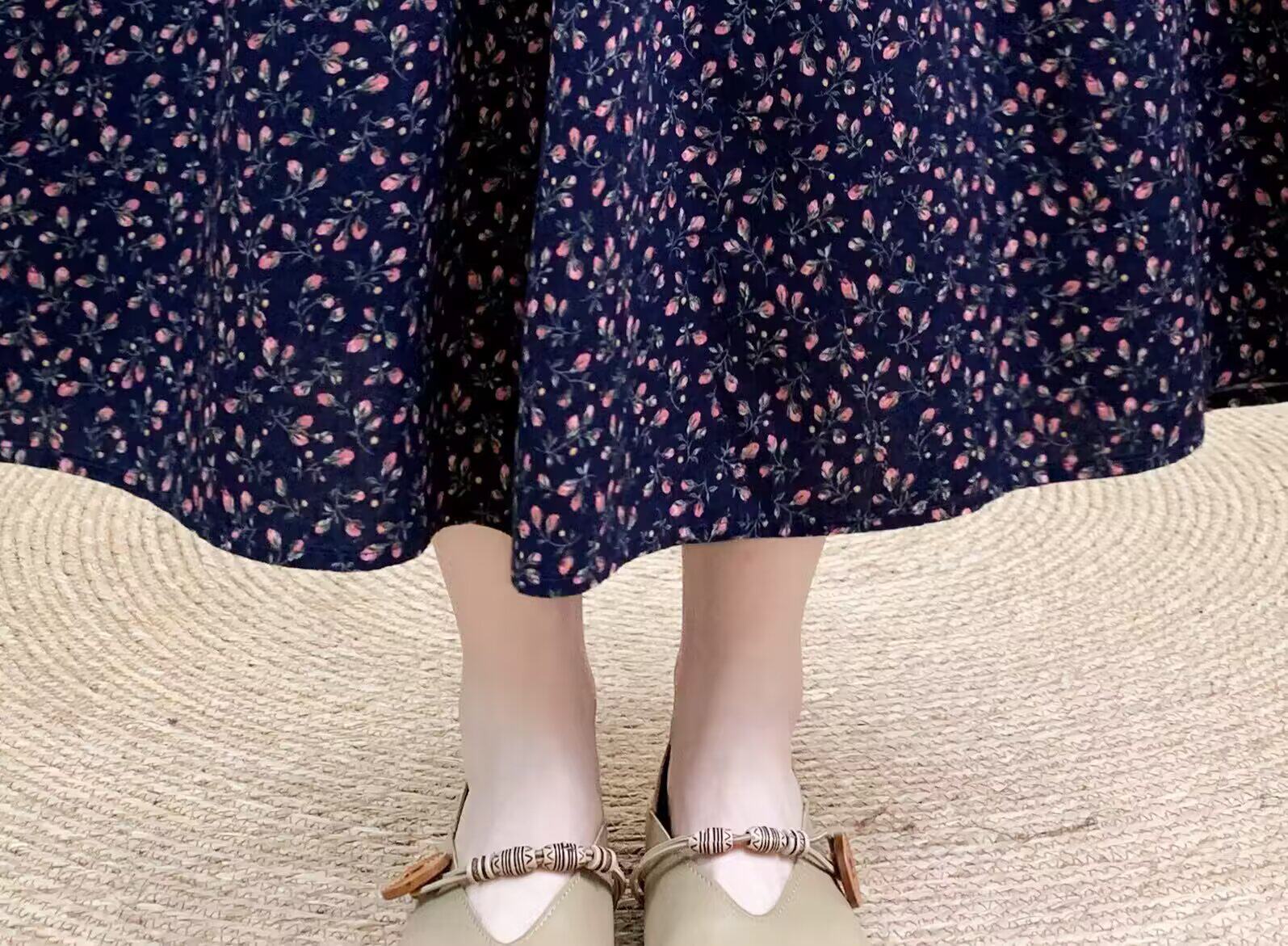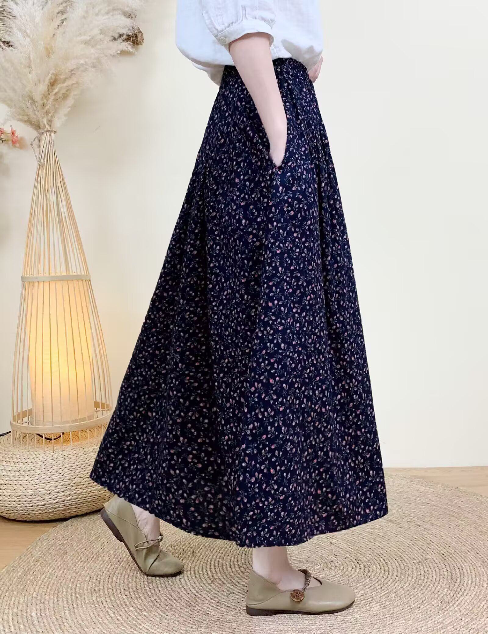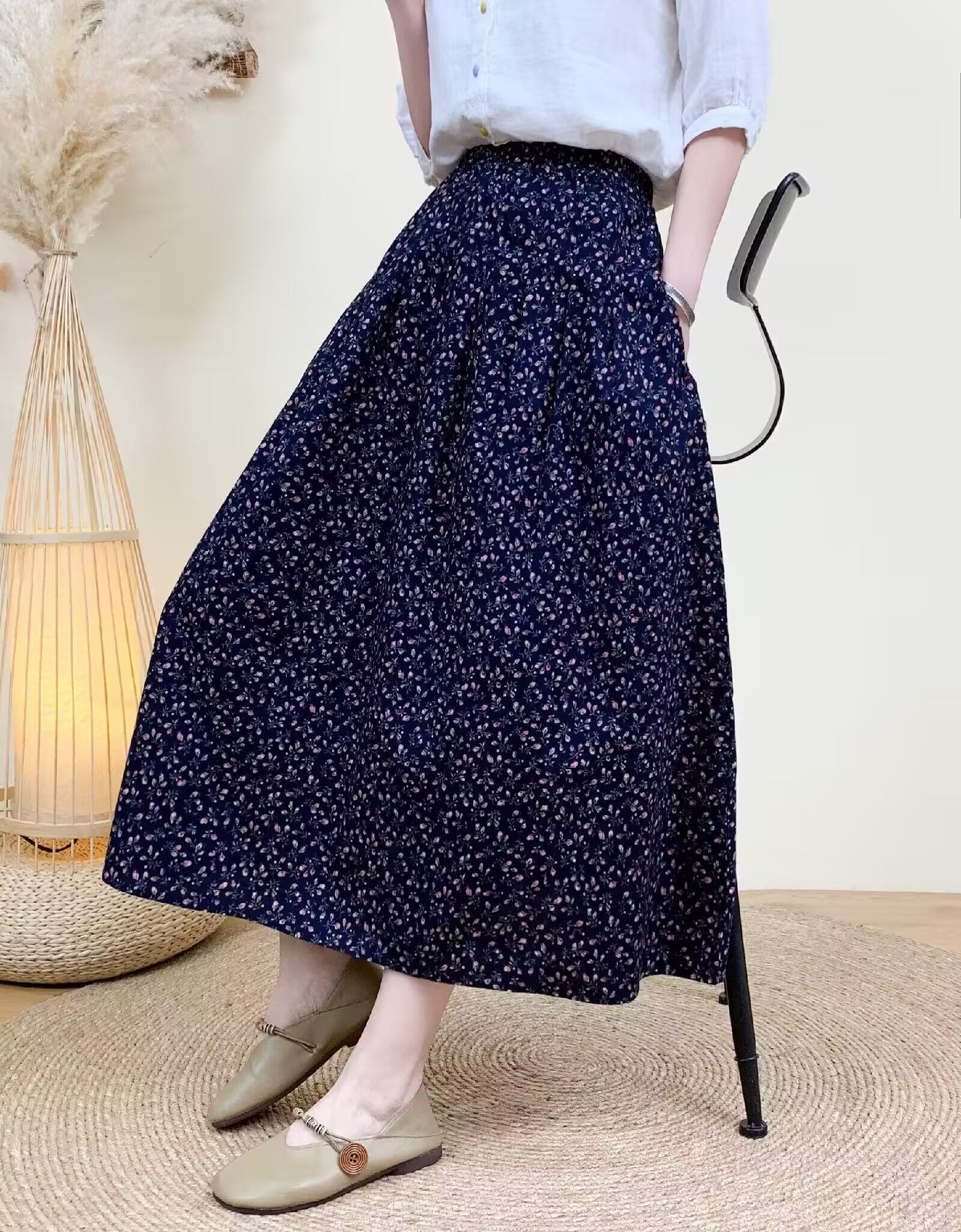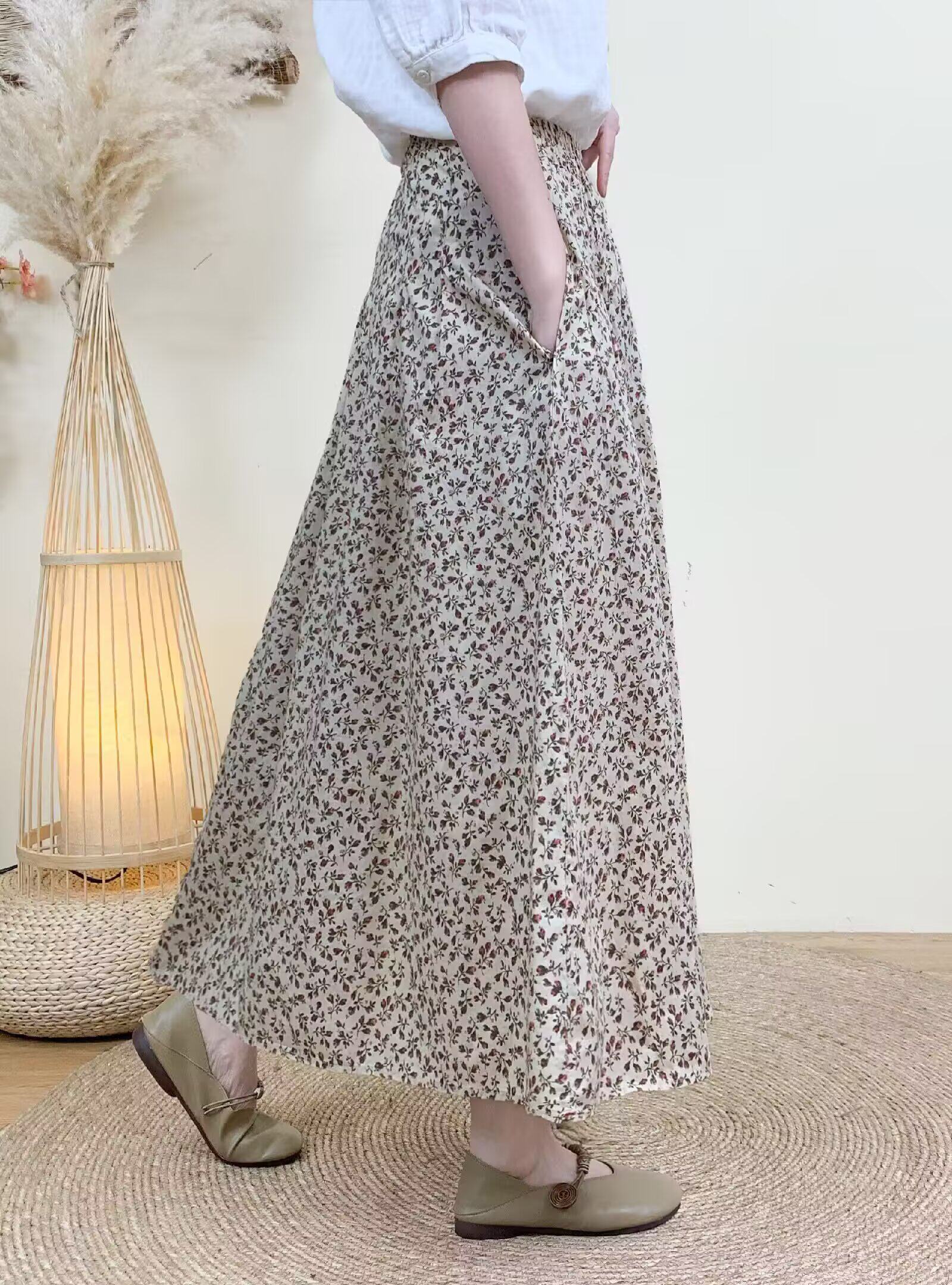 Light Chinese-Style Pure Cotton Floral Print Pleated Retro A-Line Skirt for Women, New Spring 2026 Collection, Suitable for Petite Sizes