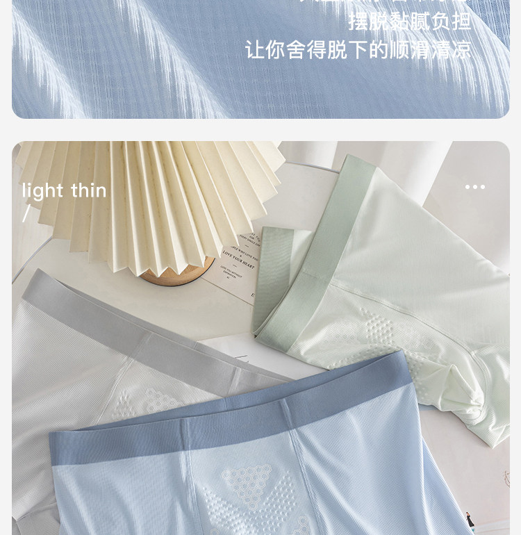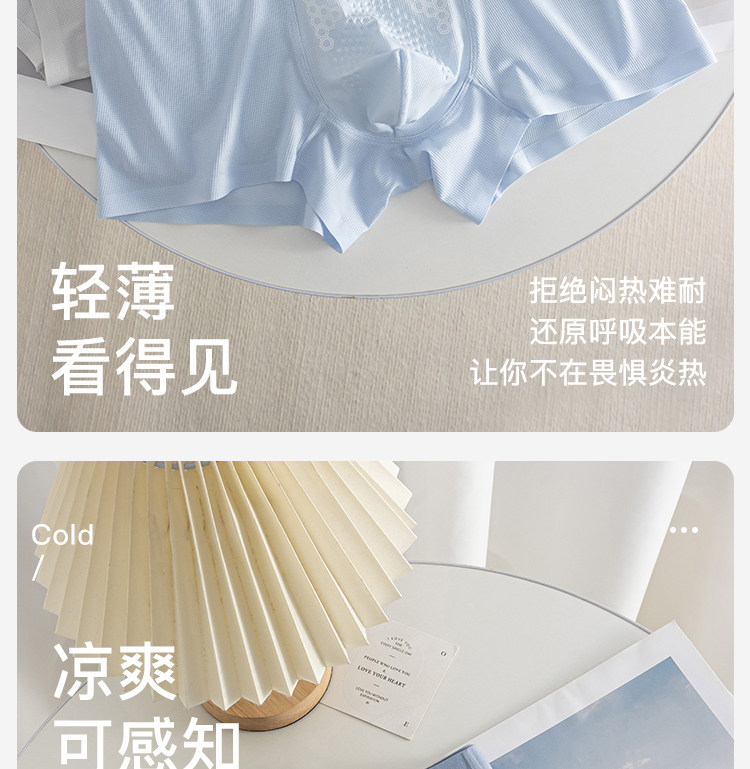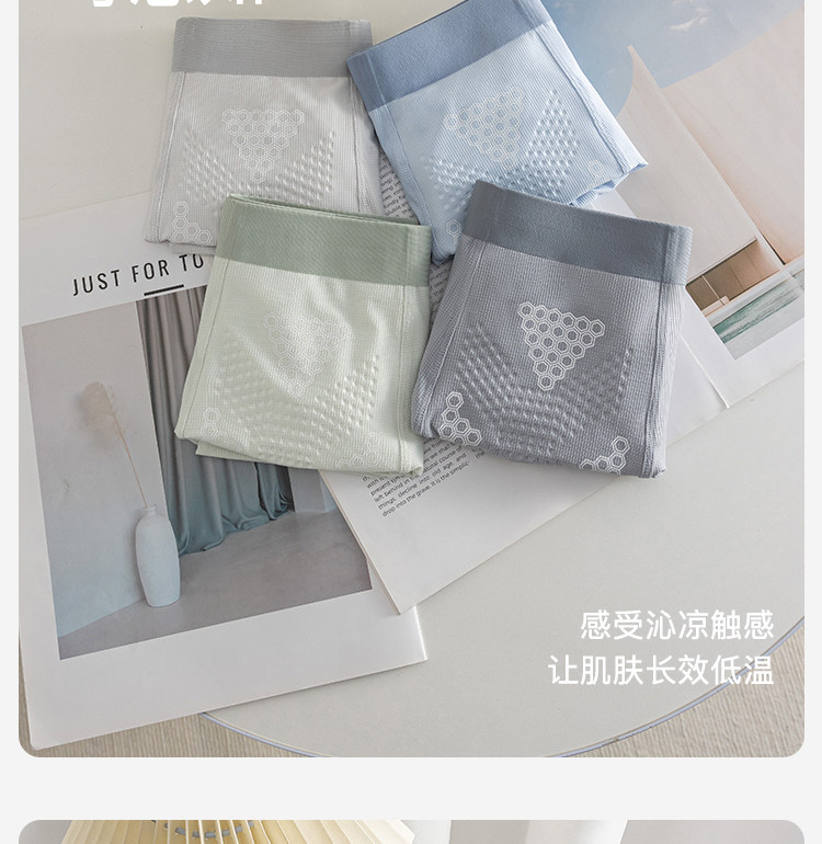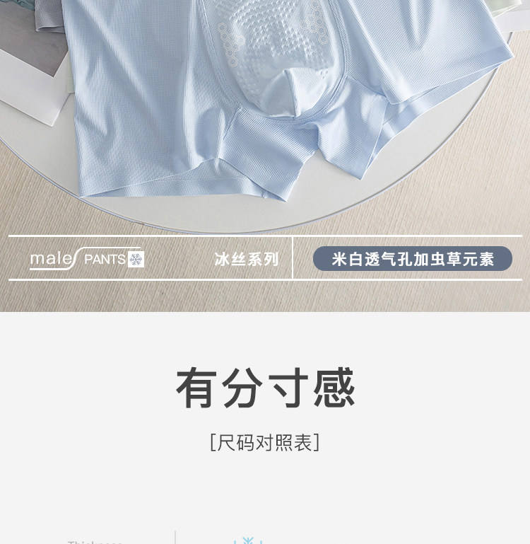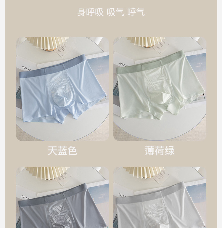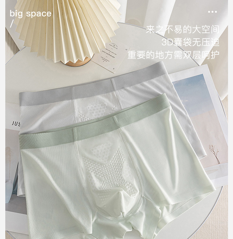 Summer New Style Ice Silk Men's Underwear with Massage Particles, Breathable Cordyceps Antibacterial Crotch, Seamless Boxer Shorts