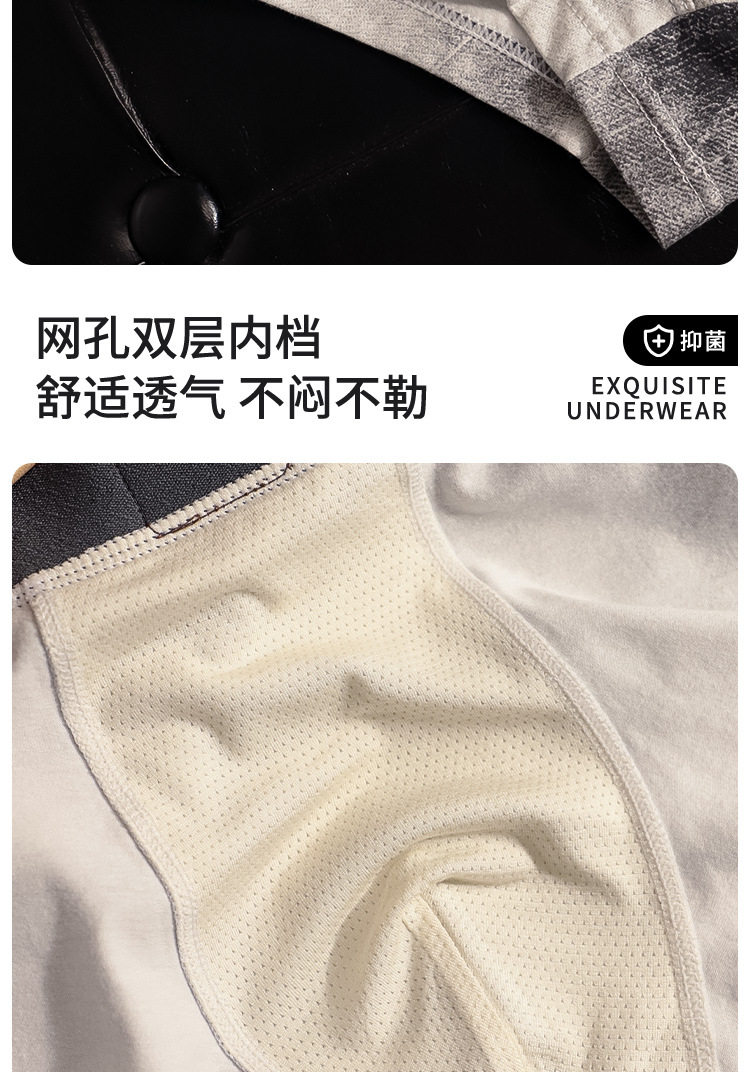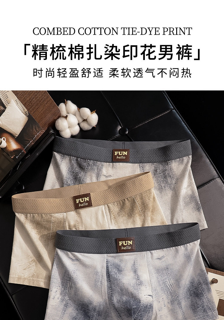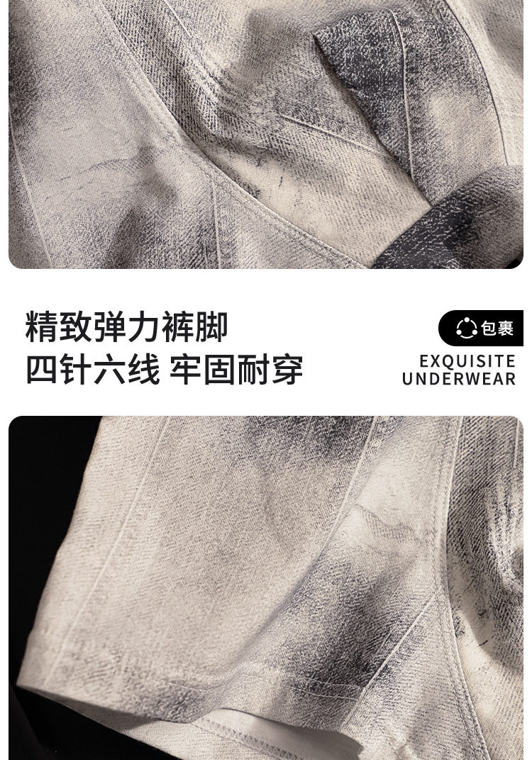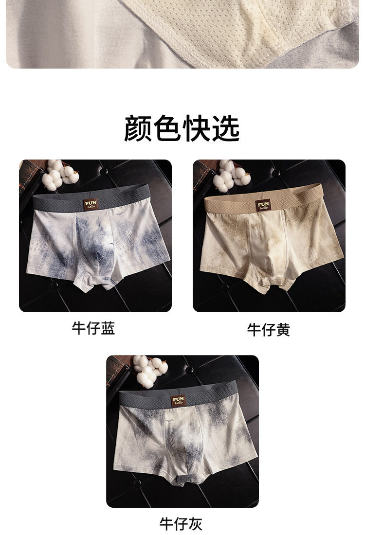 High-End Men's Underwear 2026 New Fashion Denim Print Mid-Waist Pure Cotton Crotch Comfortable Men's Boxer Briefs