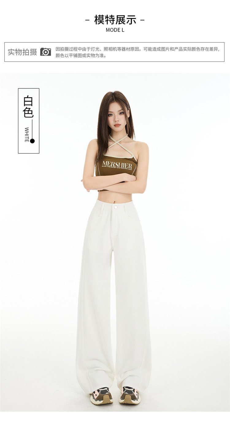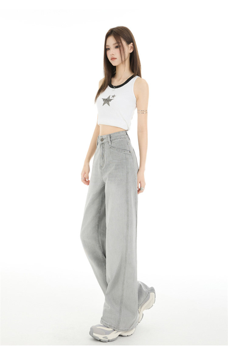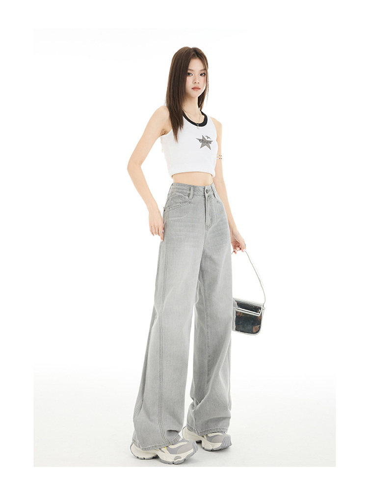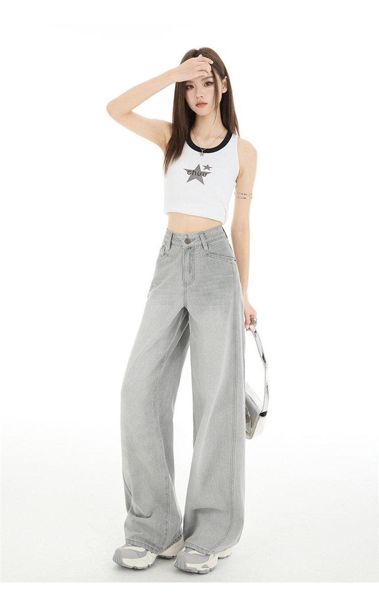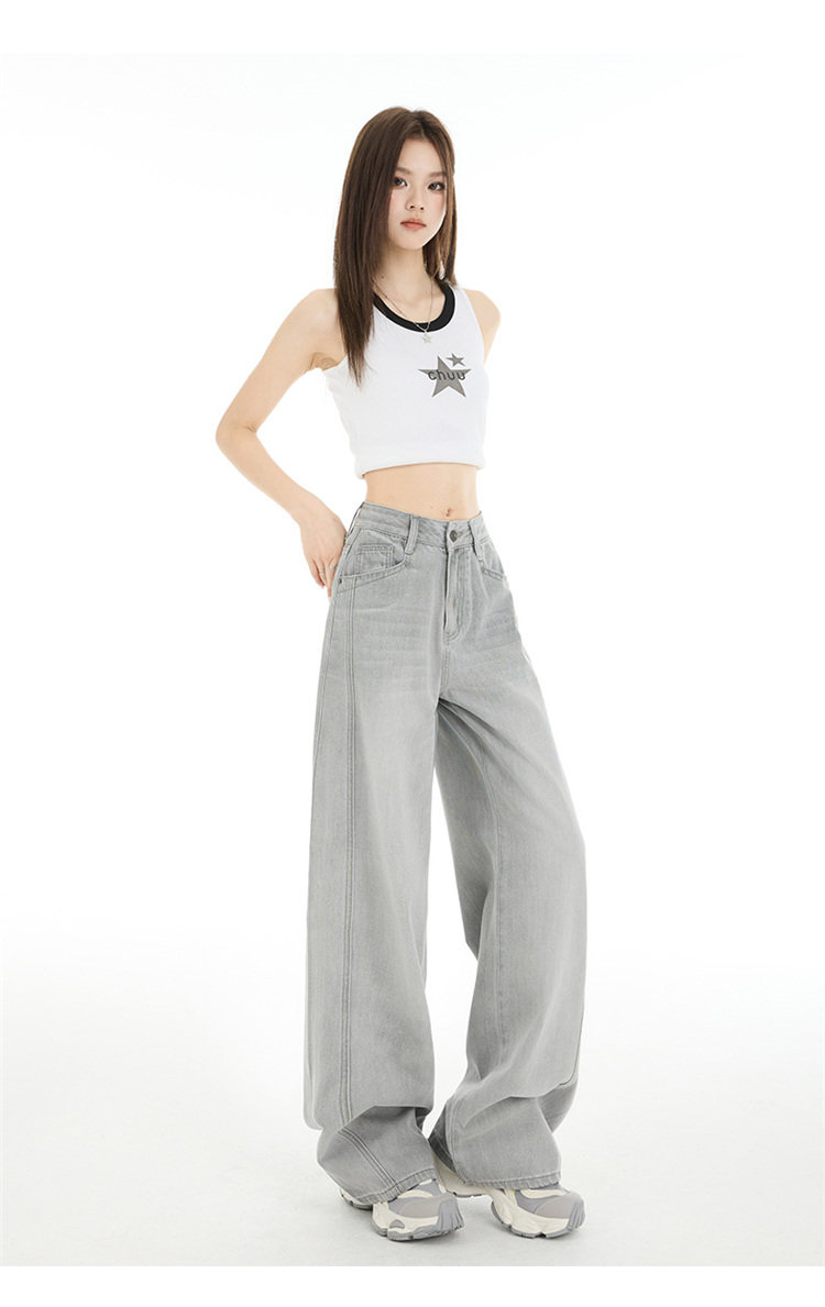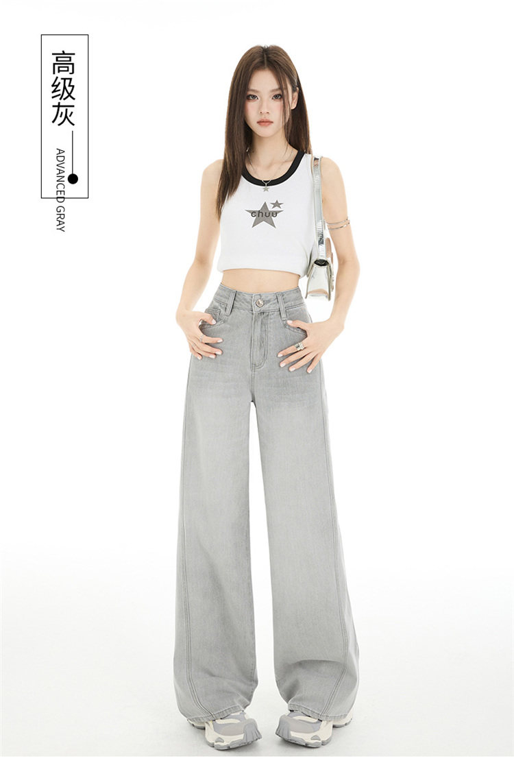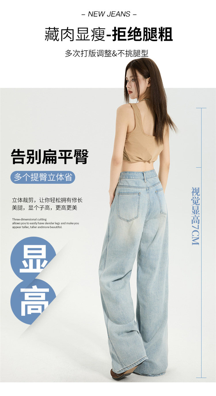 American Retro Style High-Waisted Wide-Leg Jeans for Women, Spring Season, Loose Fit, Slimming Light-Colored Straight-Leg Pants, Height-Enhancing Floor-Length Pants