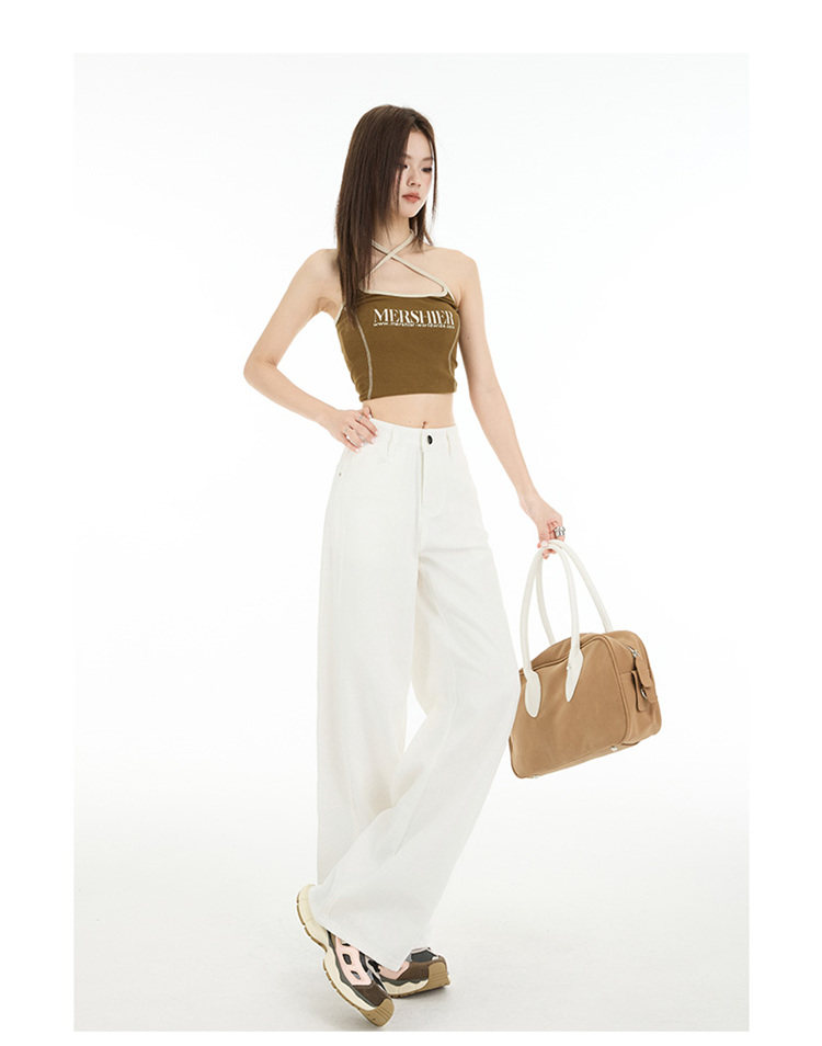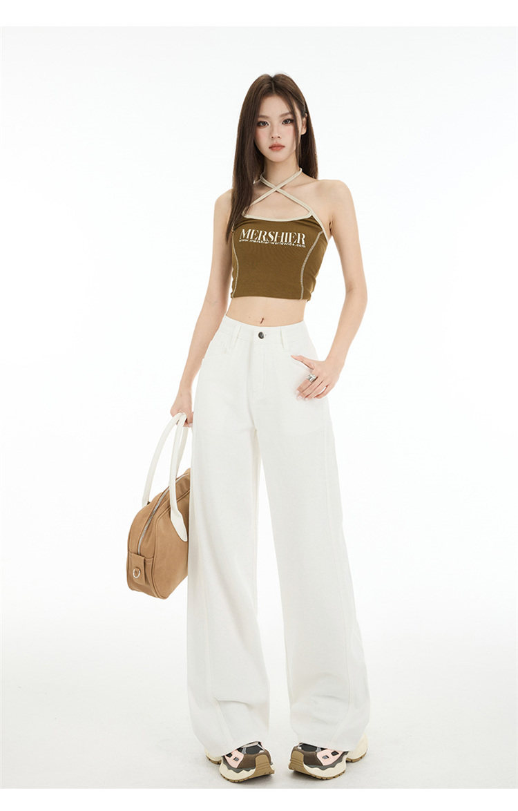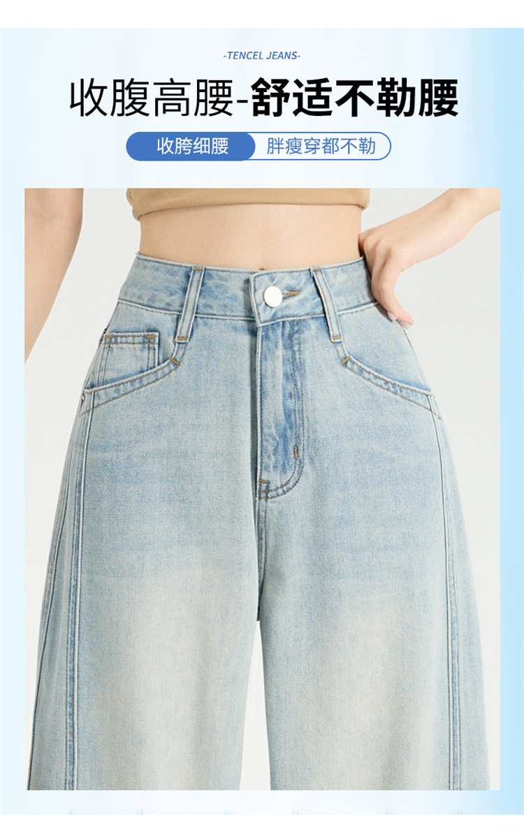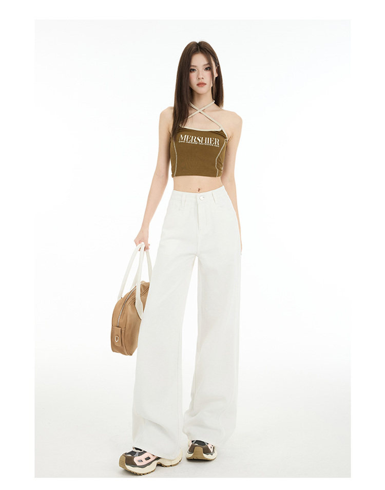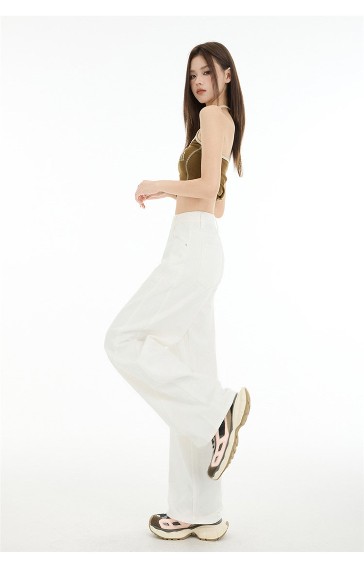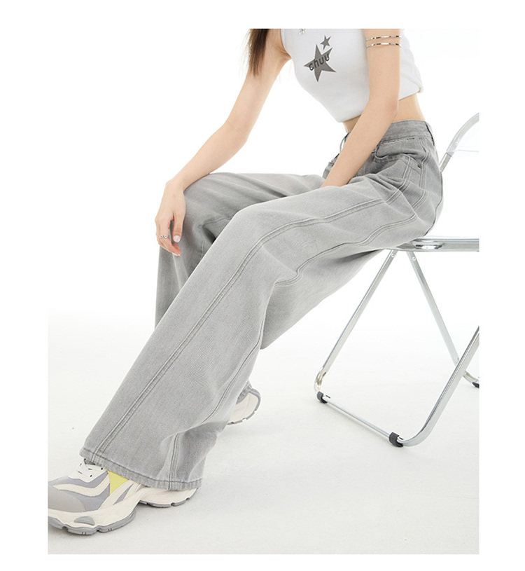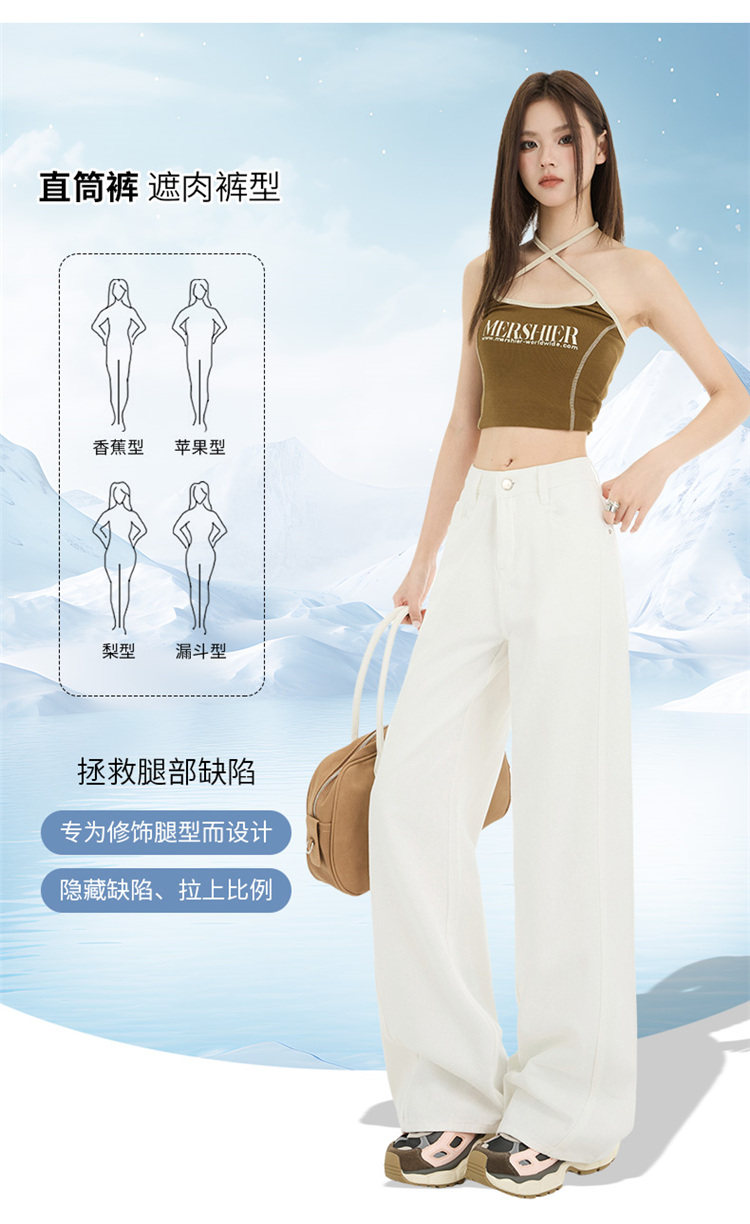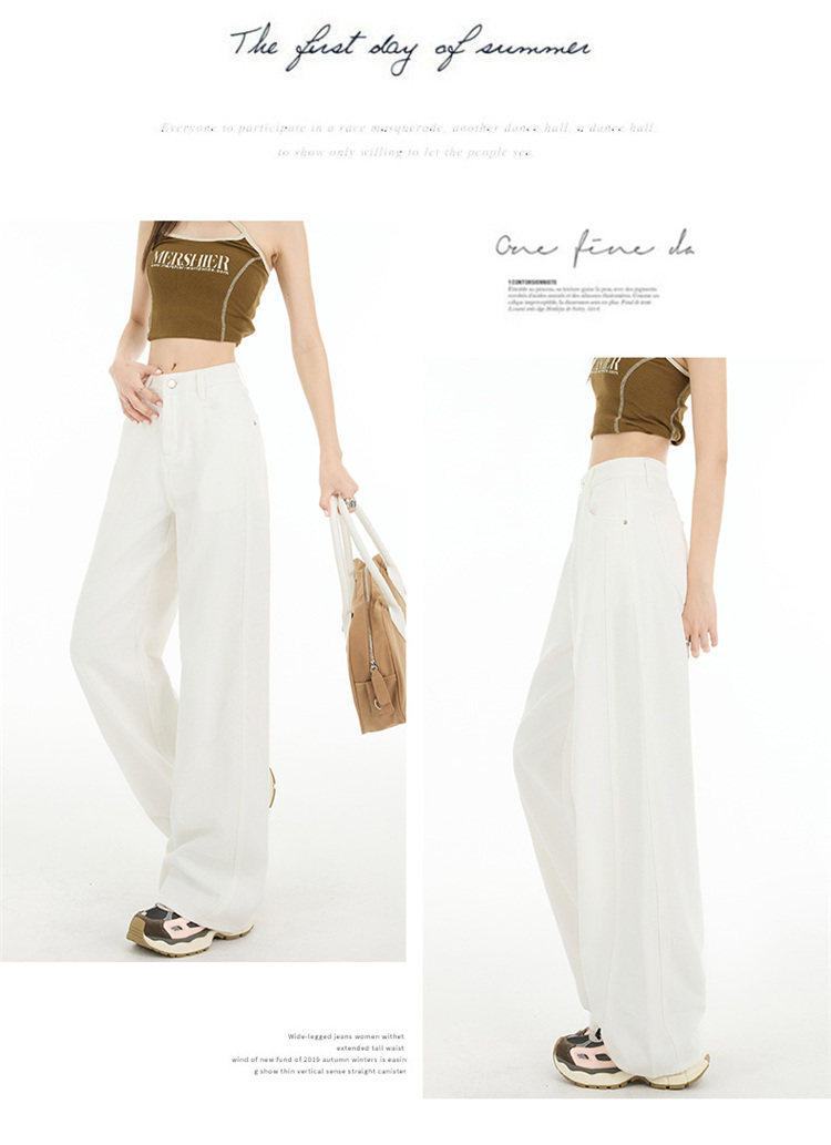American Retro Style High-Waisted Wide-Leg Jeans for Women, Spring Season, Loose Fit, Slimming Light-Colored Straight-Leg Pants, Height-Enhancing Floor-Length Pants