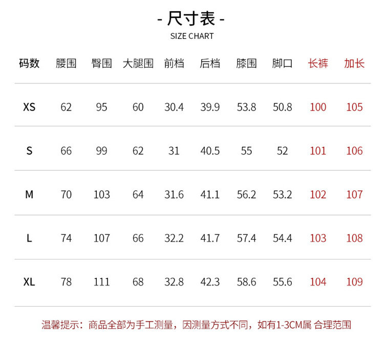 Outseam (cm) 99 cm 101.5 cm 104 cm 106.5 cm 109 cm