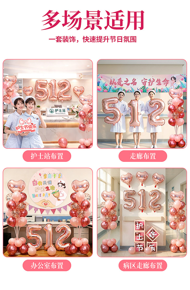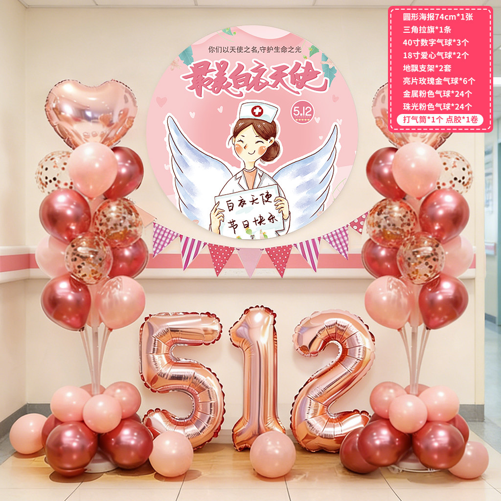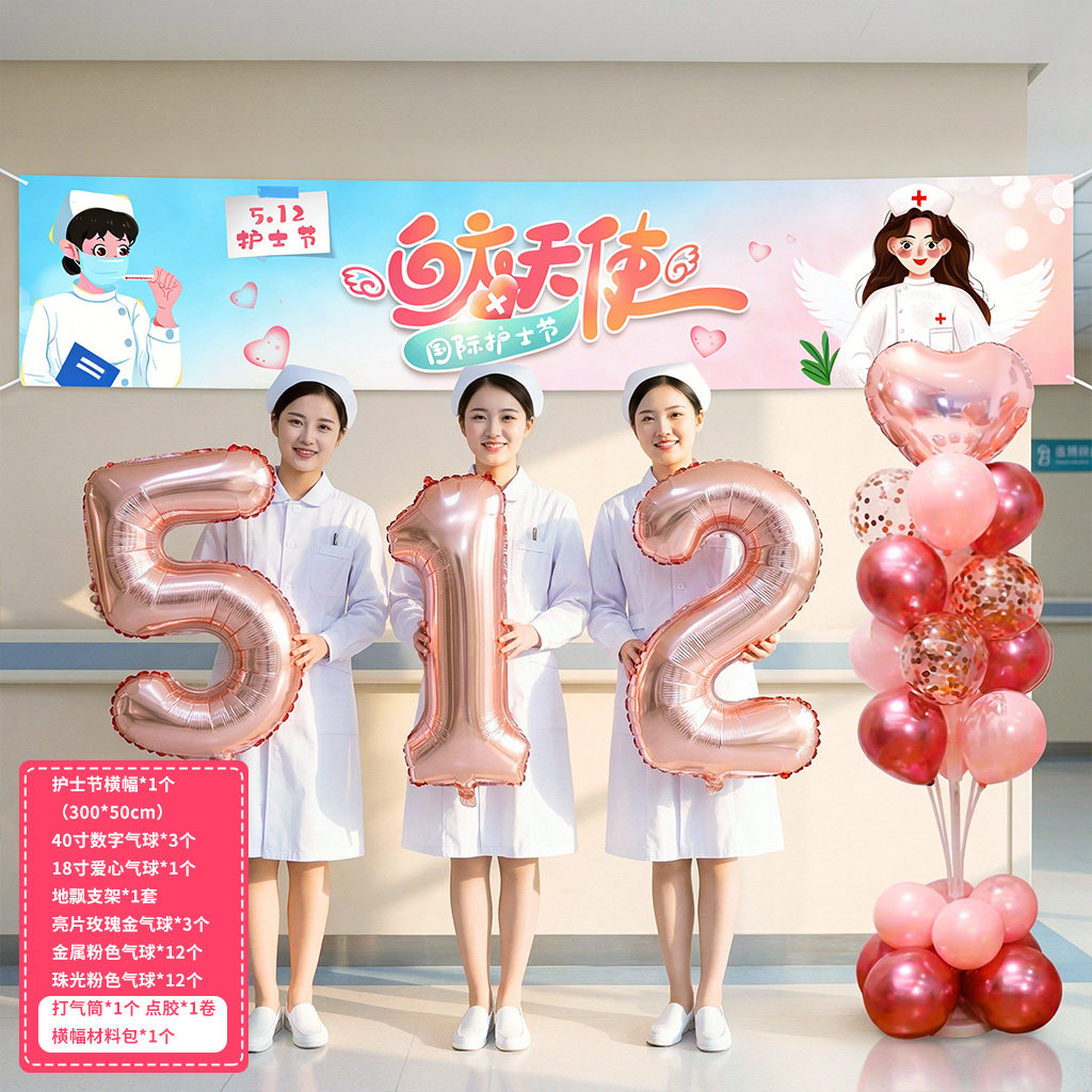 512 Nurses Day Decorative Balloons Hospital Event Venue Nurse Station Background Wall Decoration Photo Props Hand-Held Signs