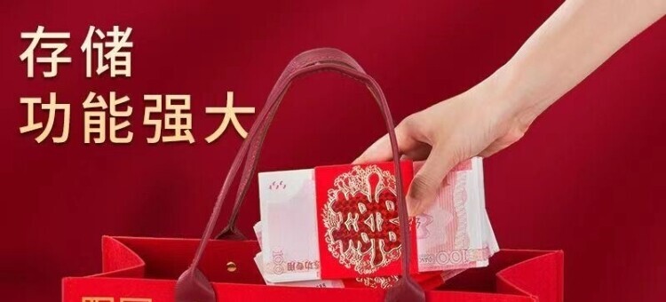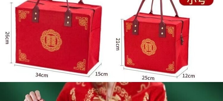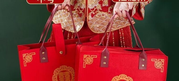 Wedding-Specific Felt Red Handbag, Bride's Dowry Bag, Engagement Gift, Large-Capacity Wedding Bag, Gift Bag
