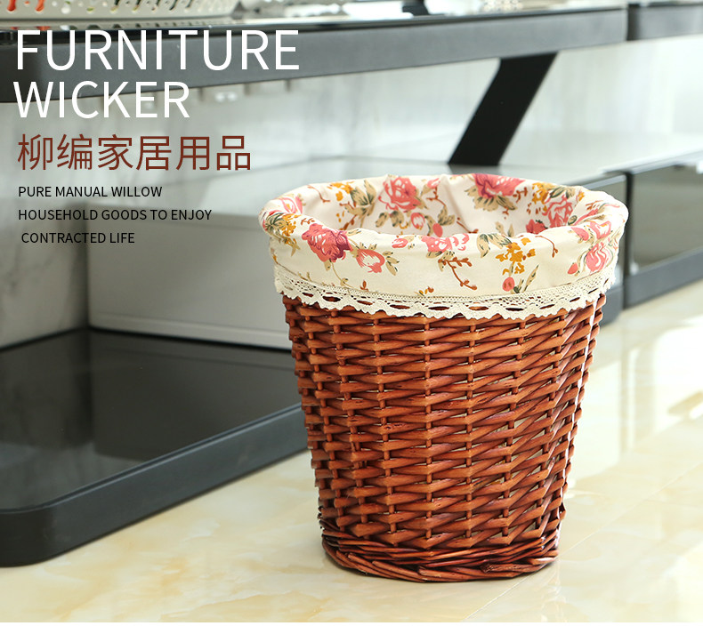 Liu Ruixuan Willow Woven Lidless Trash Can Waste Paper Basket Debris Storage Basket Decorative Basket Creative Flower Arrangement Basket