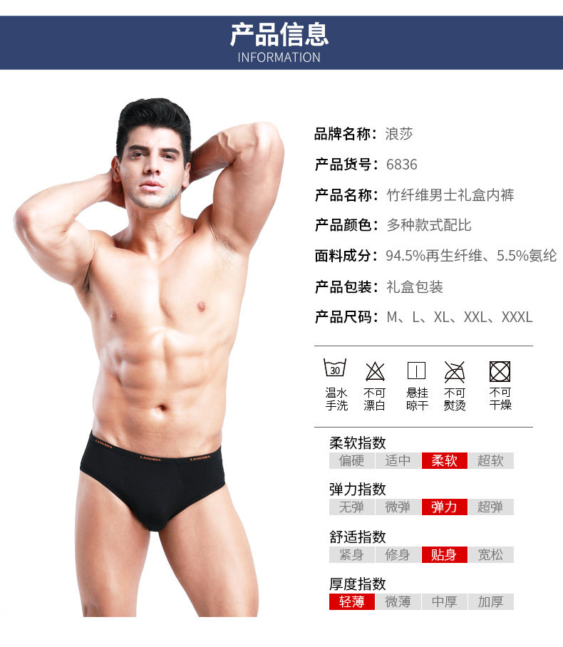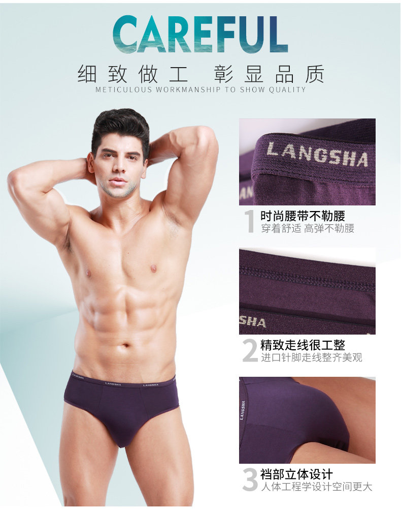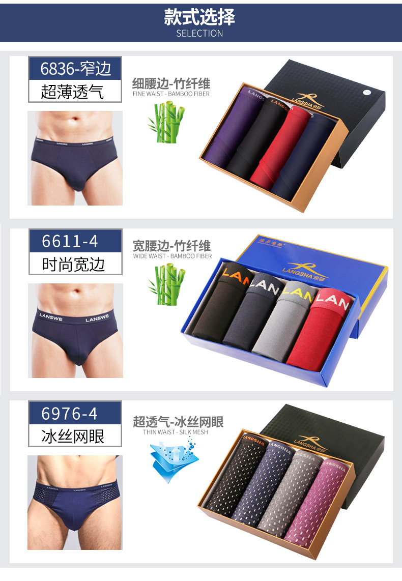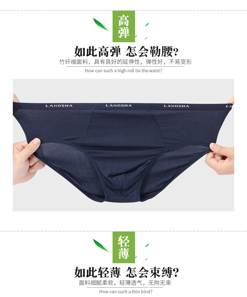 Langsha men's briefs Modal summer thin breathable and markless men's shorts bamboo fiber underwear men's large size