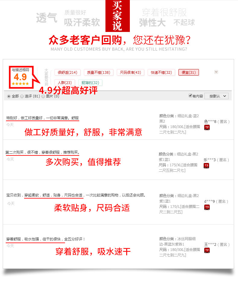 Large body material ingredients Bamboo fiber (bamboo fiber) 94.5% polyurethane elastic fiber (spandex) 5.5%