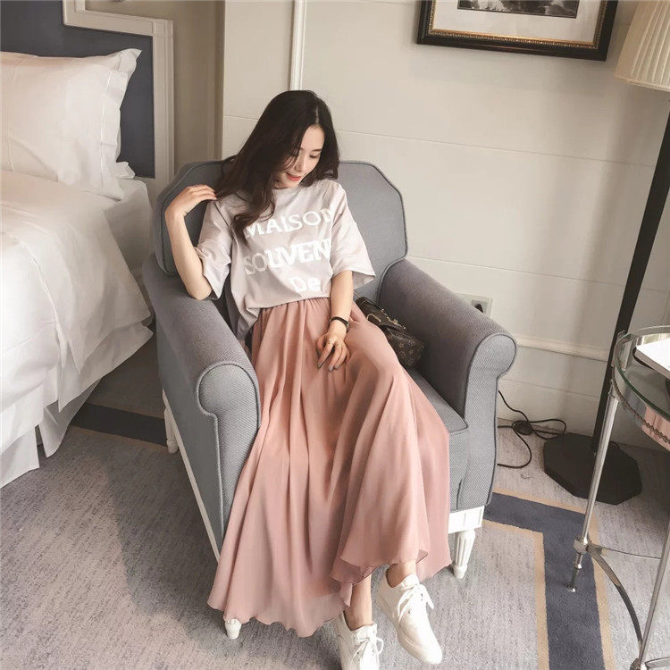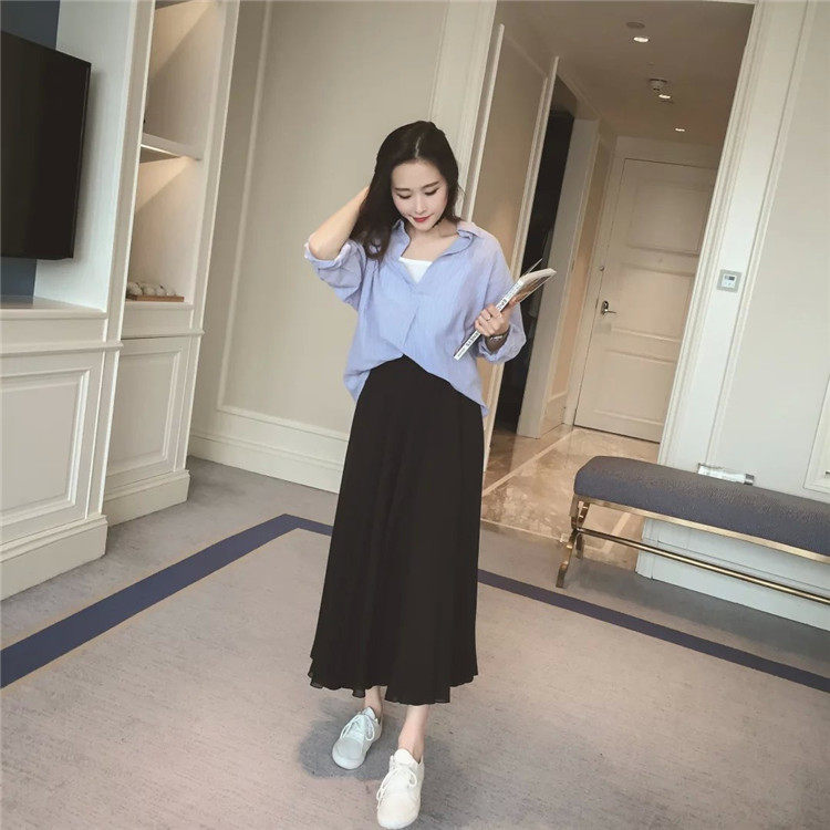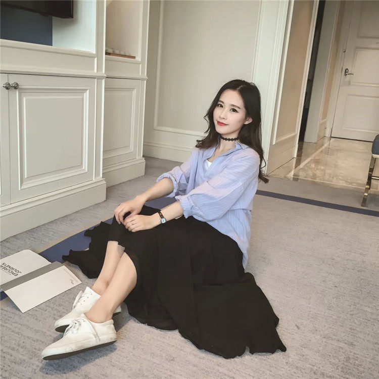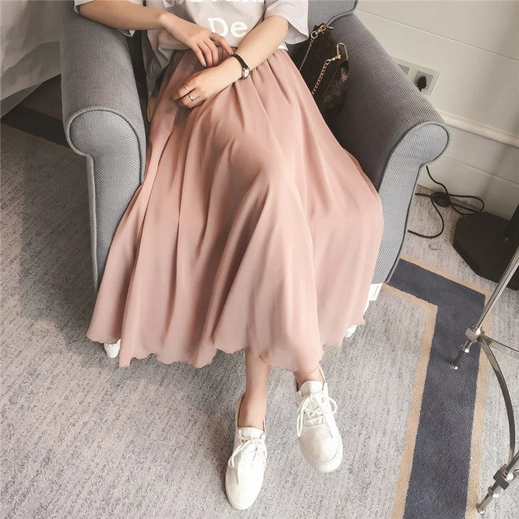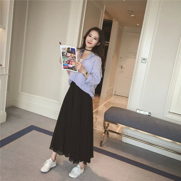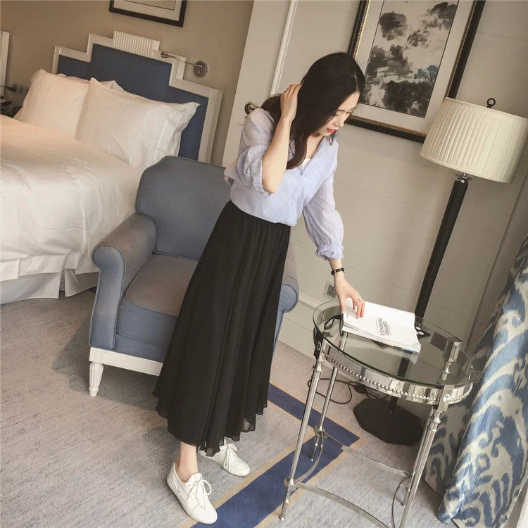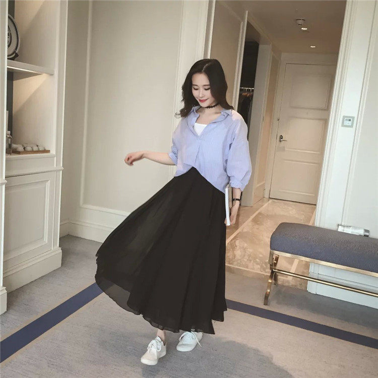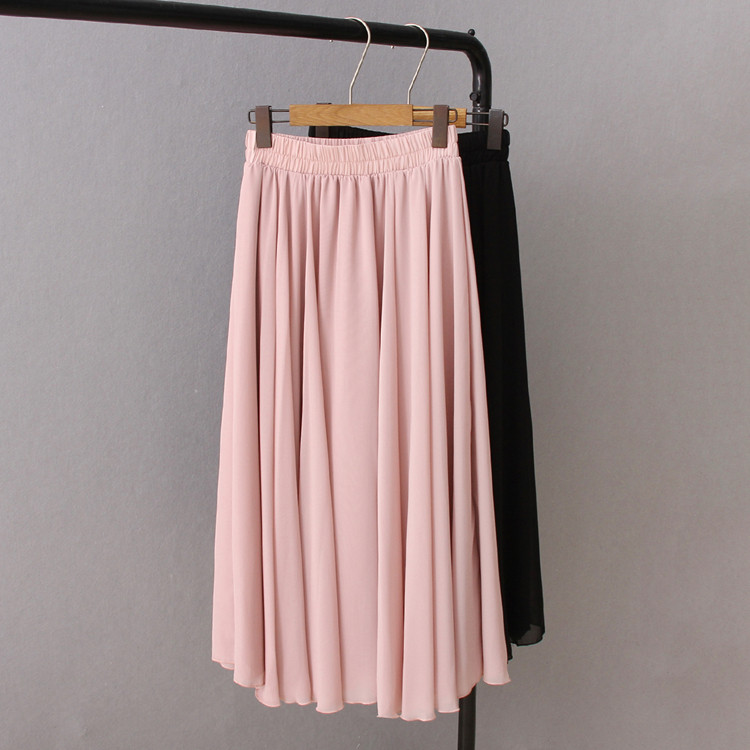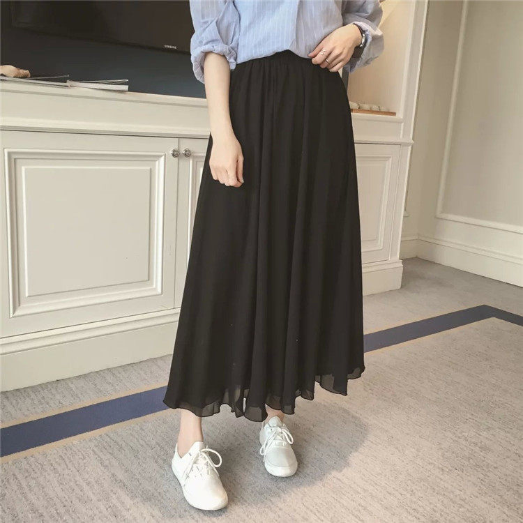 Summer Bohemian Large Hem Skirt Black Beach Pleated Skirt High Waist Large Size Chiffon Skirt