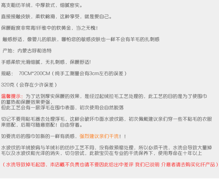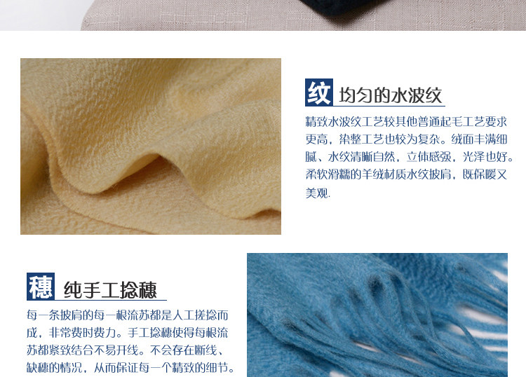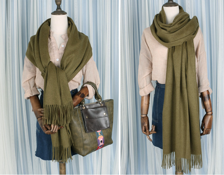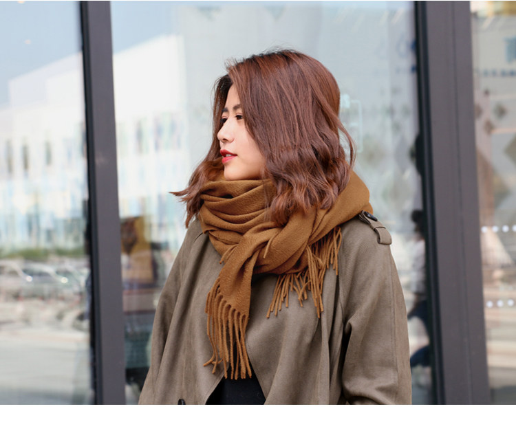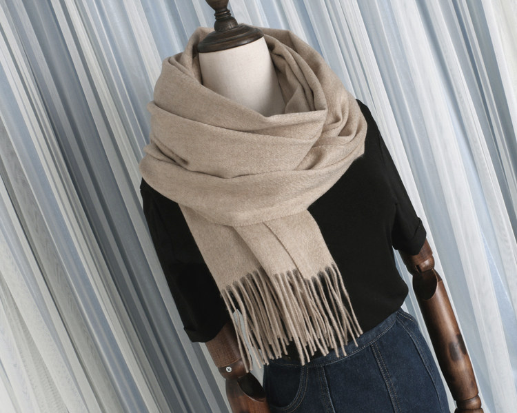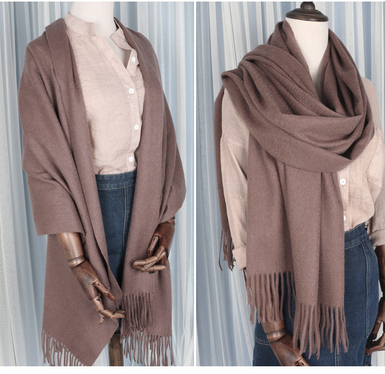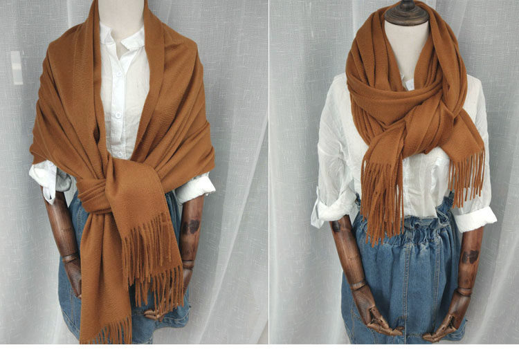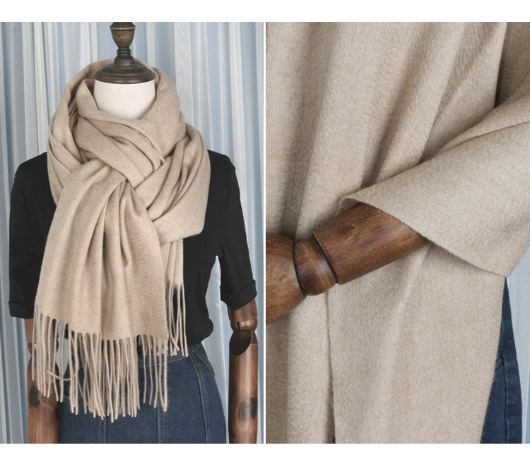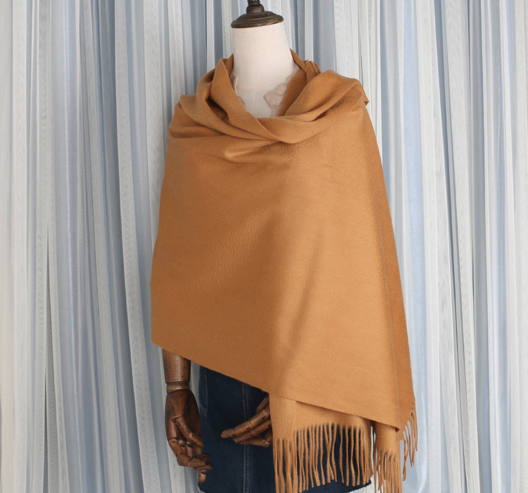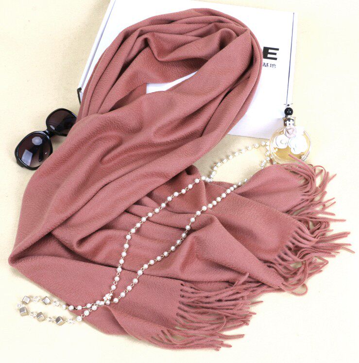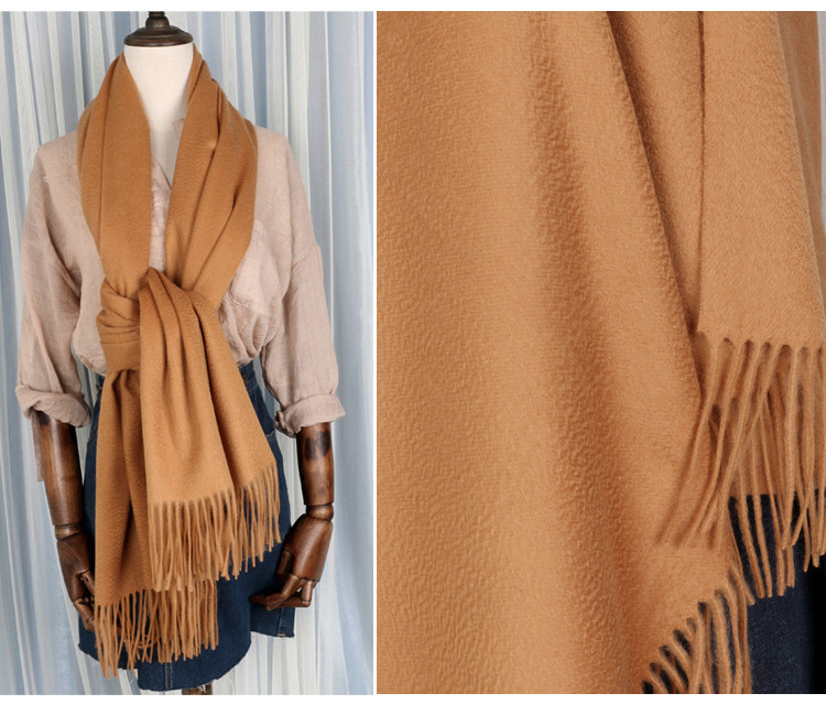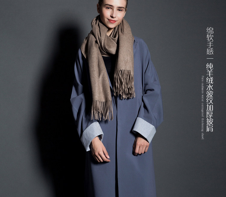 Cashmere Scarf for Women, 100% Pure Cashmere, Double-Sided Water Ripple Shawl, Dual-Use Solid Color Neck Warmer, Thick for Winter