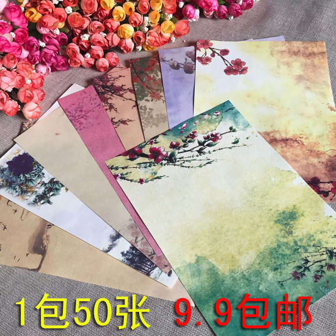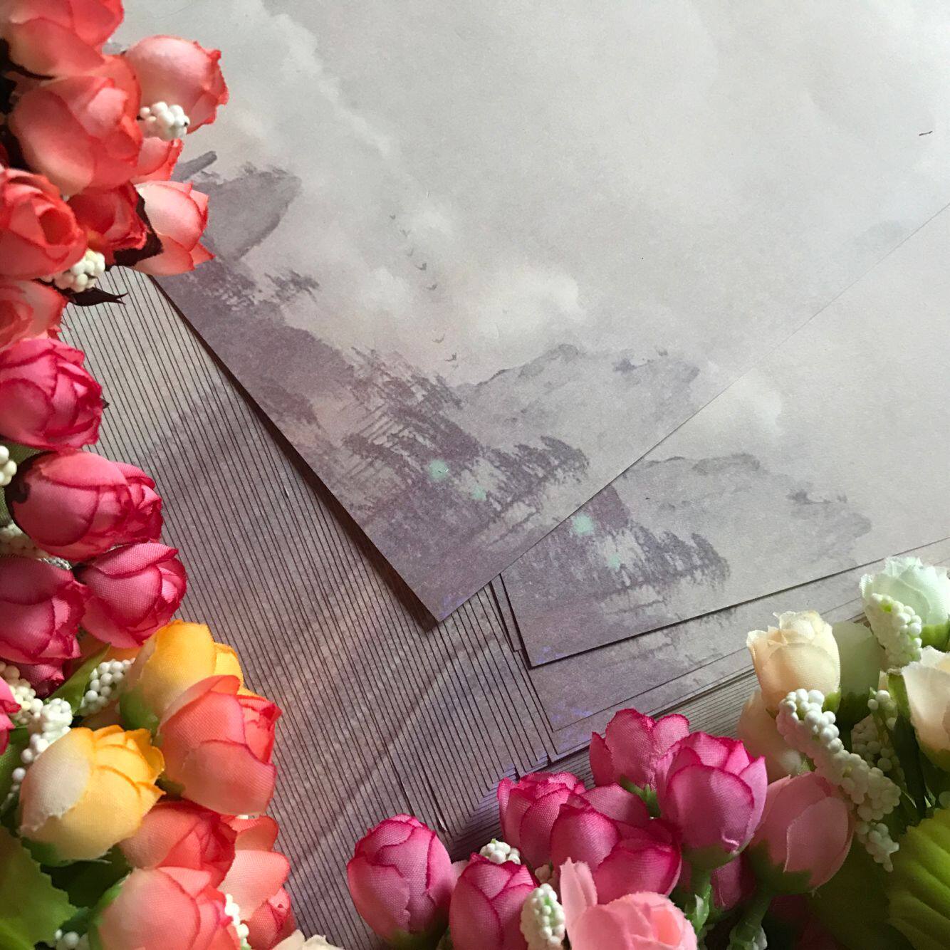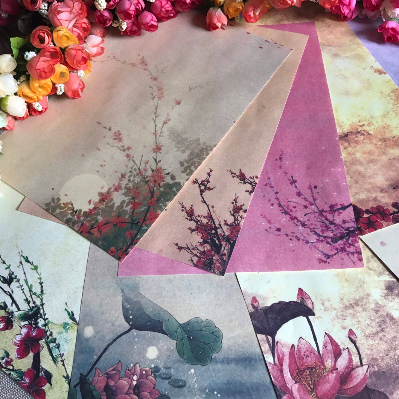 Birdsong Stream Letter Paper 16-Page Beautiful Chinese Style Ancient Style Letter Paper Exquisite Landscape and Floral Letter Paper 100 Sheets