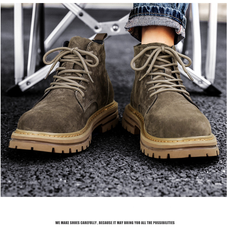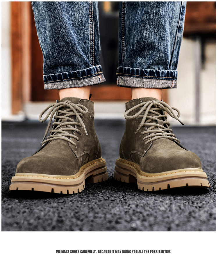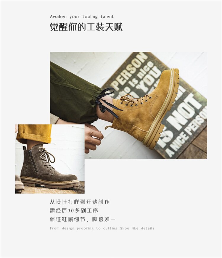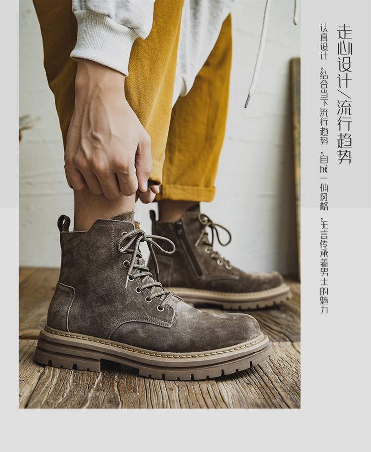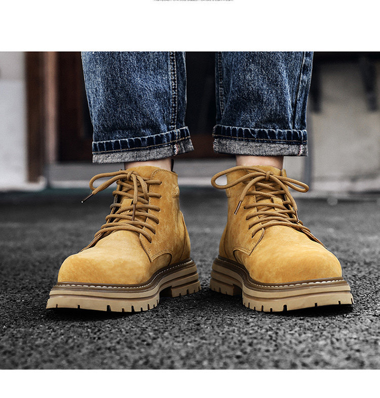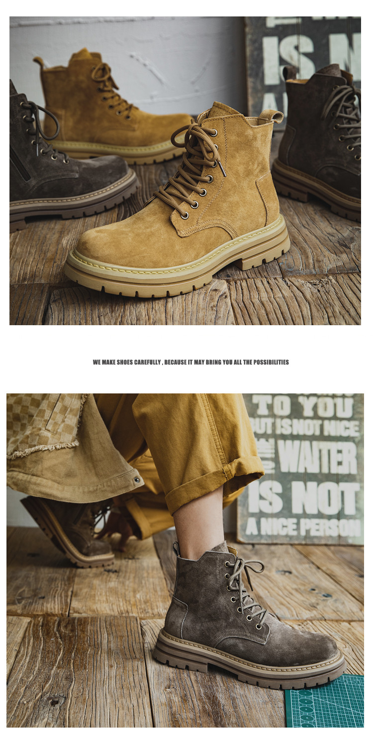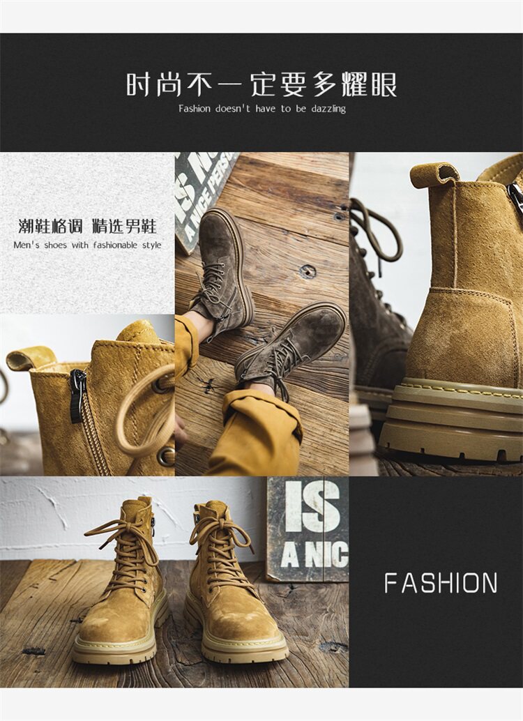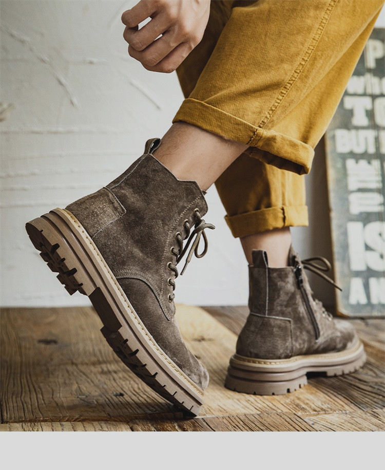 Martin Boots for Men, Winter British Style High-Top Shoes, Genuine Leather Mid-Top Trendy Short Boots, Retro New Breathable Work Boots
