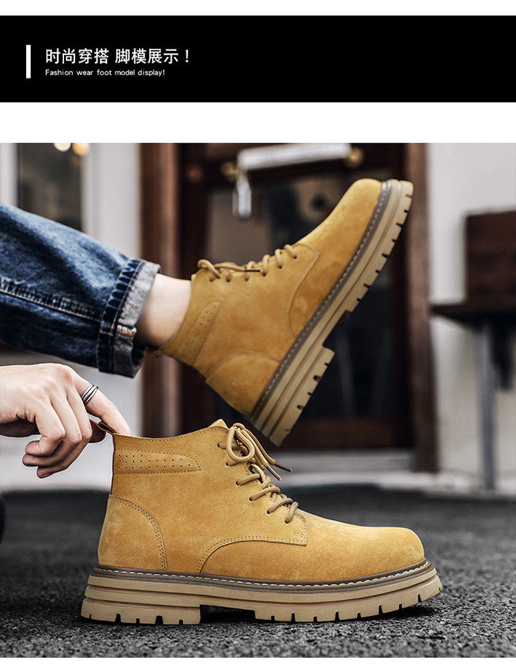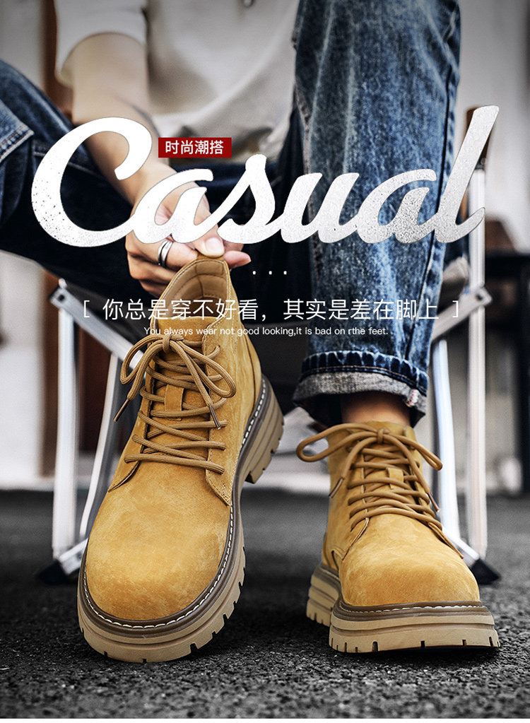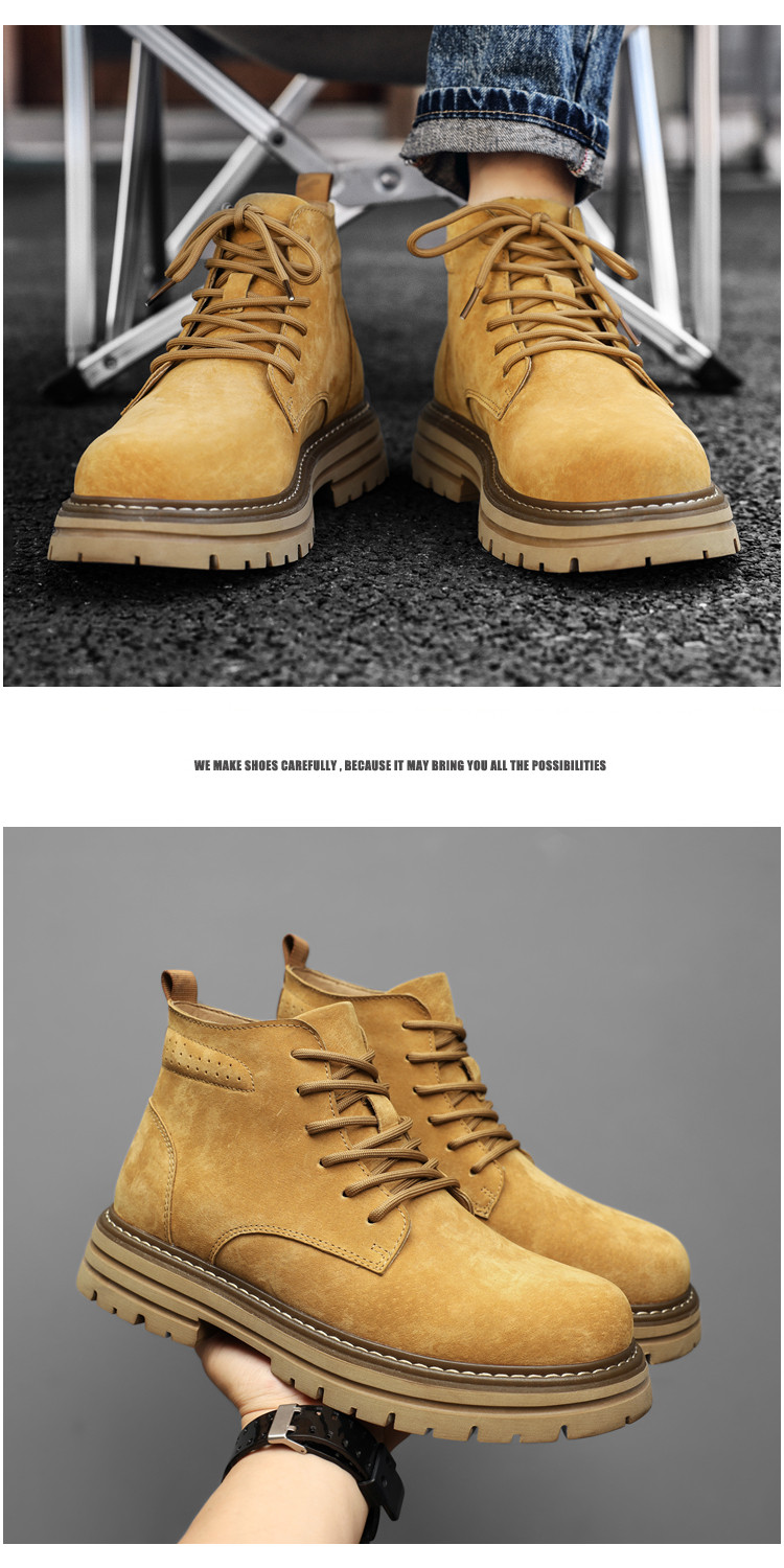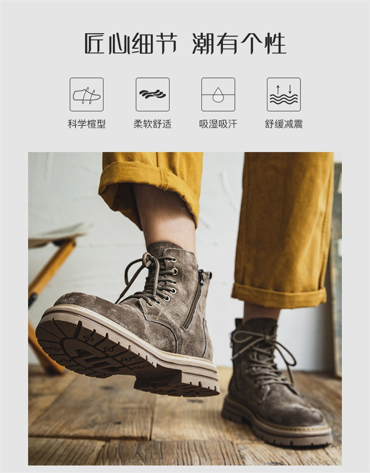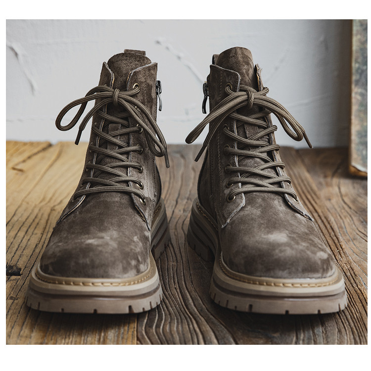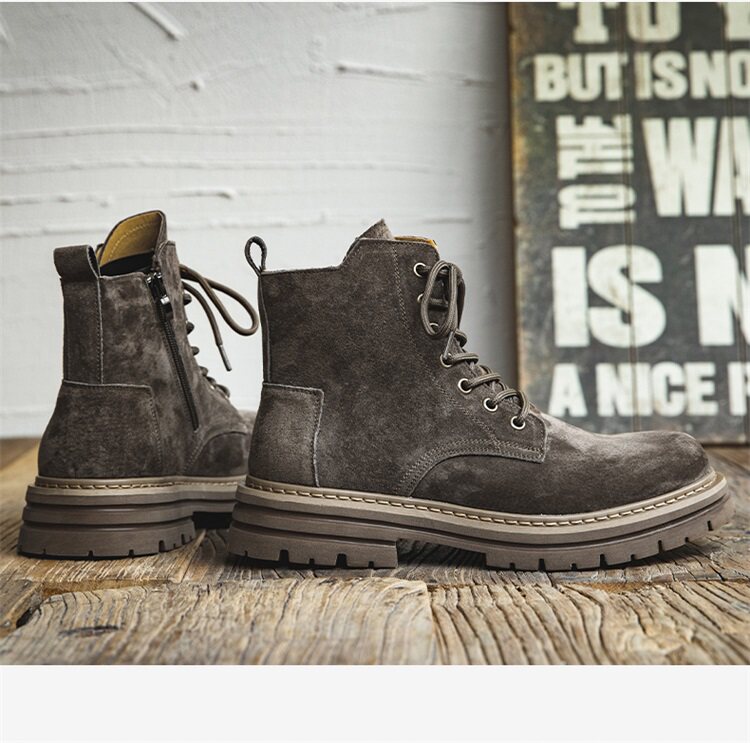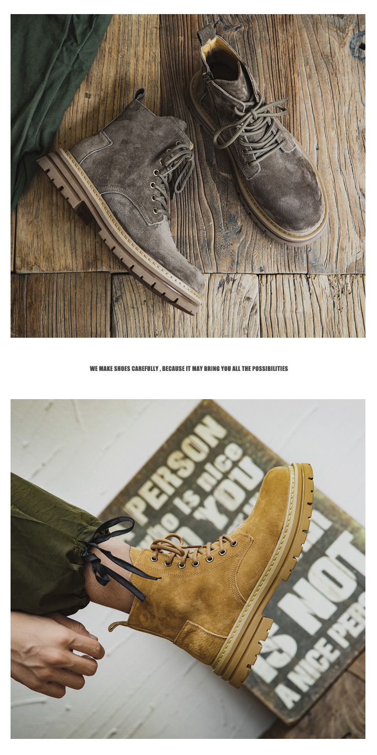 Martin Boots for Men, Winter British Style High-Top Shoes, Genuine Leather Mid-Top Trendy Short Boots, Retro New Breathable Work Boots