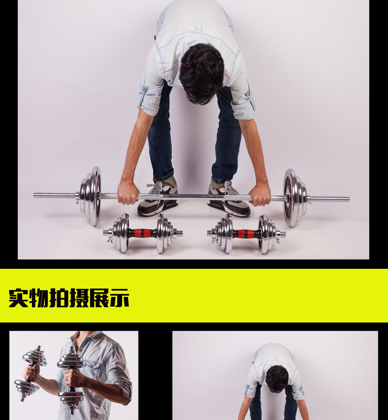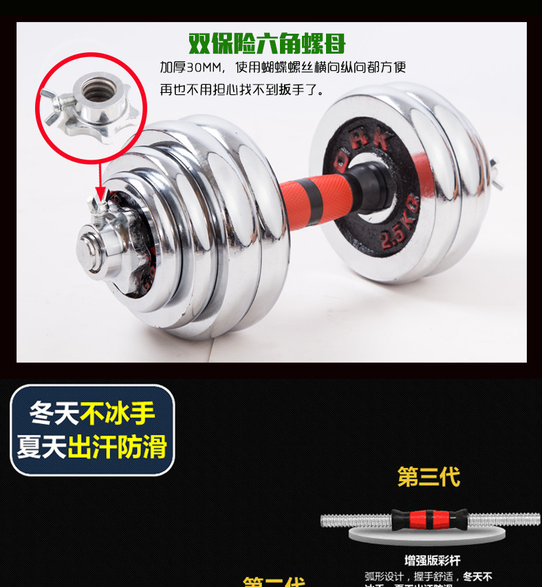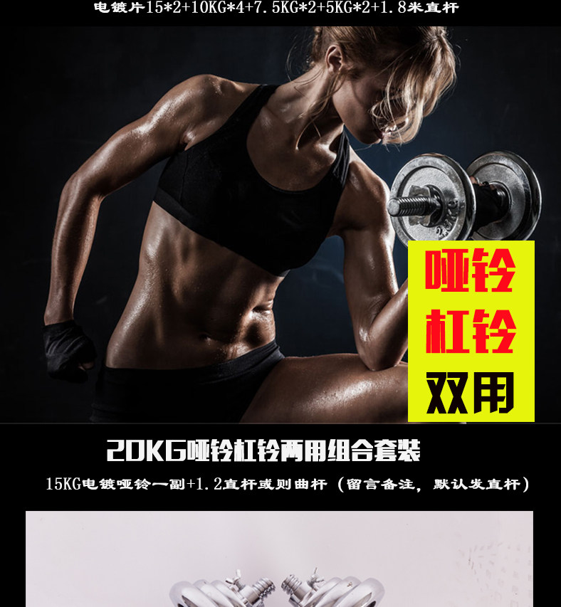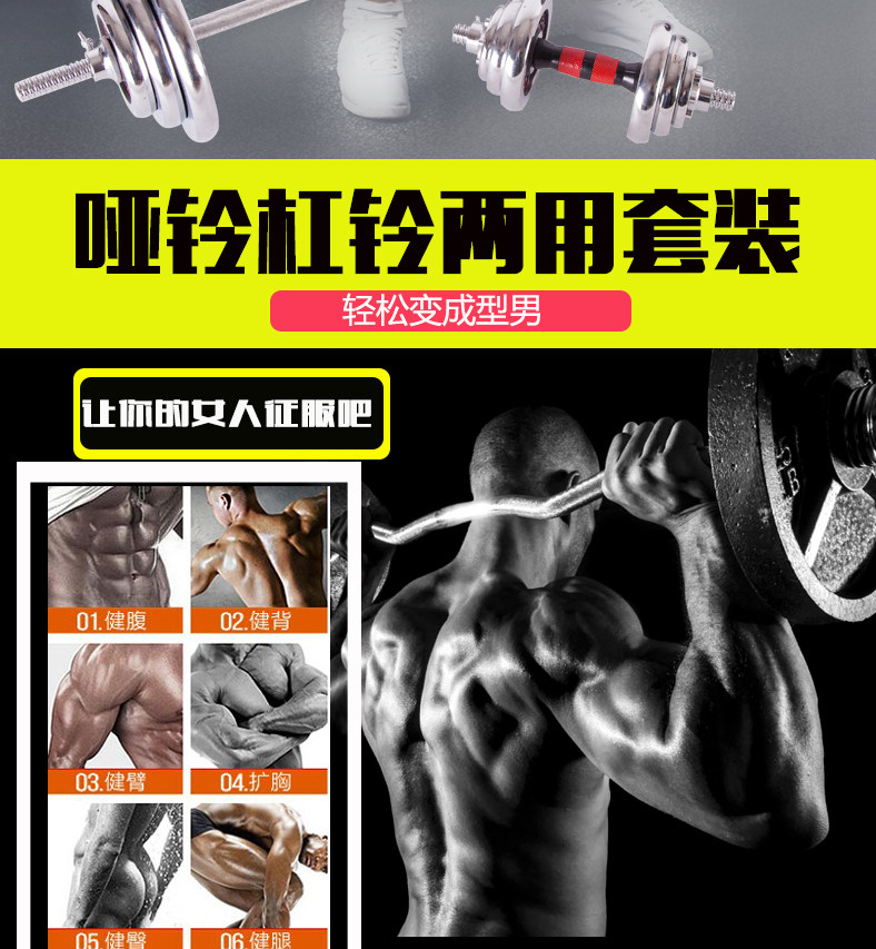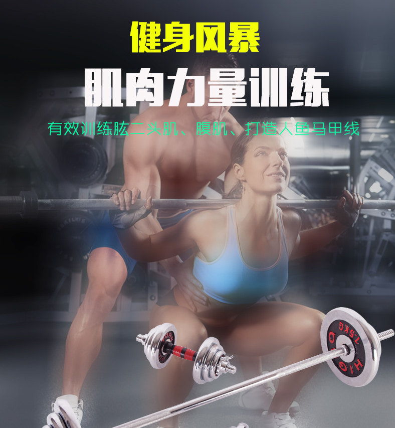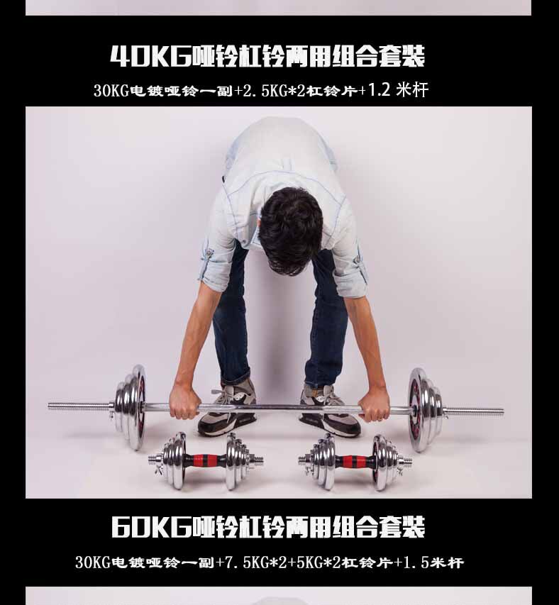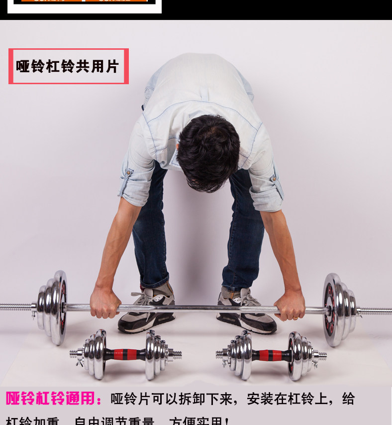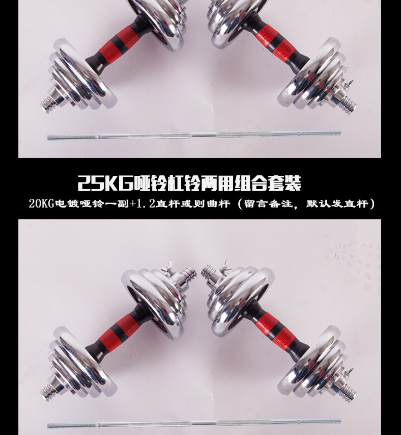 Electroplated barbell dumbbell dual-use set men's dumbbell weightlifting barbell home fitness barbell men's arm muscle training