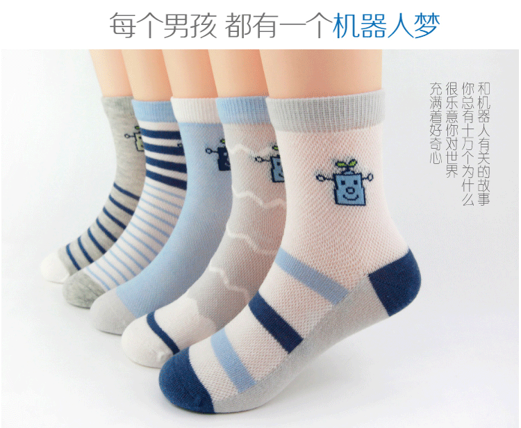 Color Classification Robot Summer Half Mesh Five Pairs,Mesh Classic Stripes,Summer Super Team Five-Pair Pack,Summer Navigator Five-Pair Pack,Summer Collection: Prince Car Five-Pair Pack,Thin Section-Tornado Basketball,Robot-Themed Lightweight Cotton Socks - 5-Pair Pack (Spring/Summer)