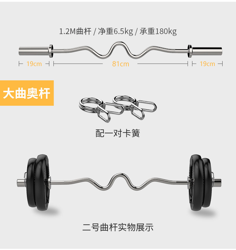 Xuan Ge Fitness Equipment Barbell Bar Weightlifting Olympic Bar Straight Bar Curved Bar Set for Home Use Dumbbell Olympic Bar Large Hole