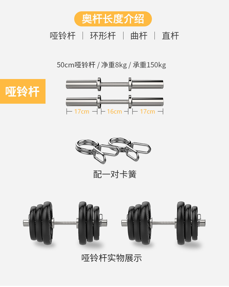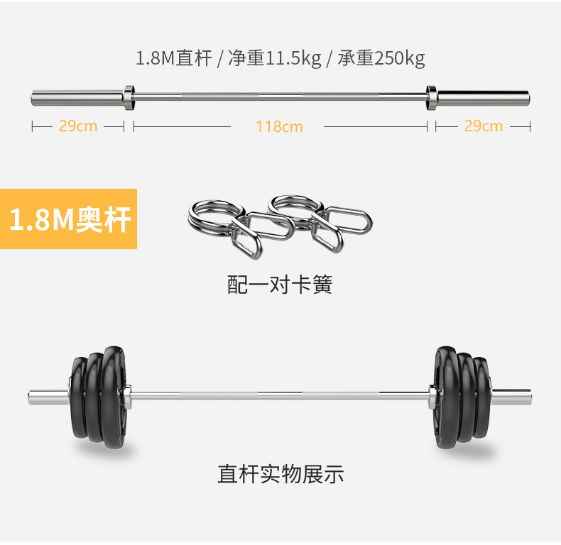 Color Classification A Pair of Olympic Dumbbell Bars (Diameter 5cm) + 4 Retaining Rings,1.2m Straight Pole (Diameter 5cm) + Shoulder Pads,1.2m Quao Rod (Diameter 5cm) + Shoulder Pads,1.5m Straight Pole (Diameter 5cm) + Shoulder Pads,1.5m Quao Rod (Diameter 5cm) + Shoulder Pads,1.8m Straight Pole (with Copper Sleeve 15kg) + Shoulder Pads,Ring Pole + 2 Circlips,2.2m Straight Pole (16kg) + Shoulder Pads