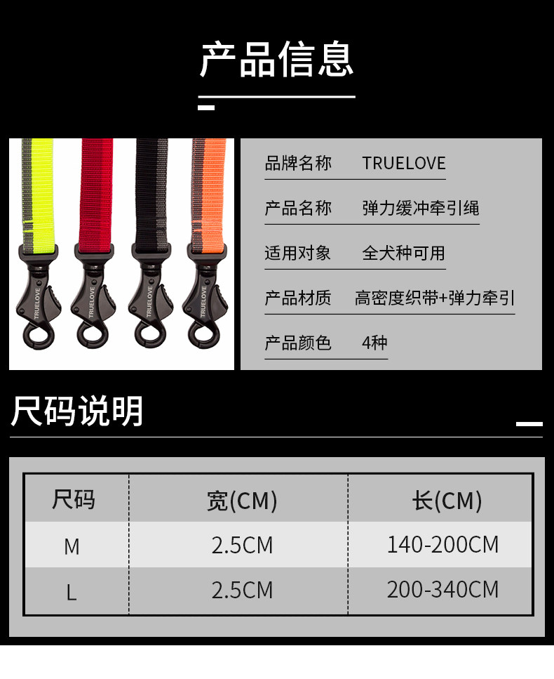 Truelove pet leash dog leash dog chain dog leash golden retriever large dog buffer elastic traction