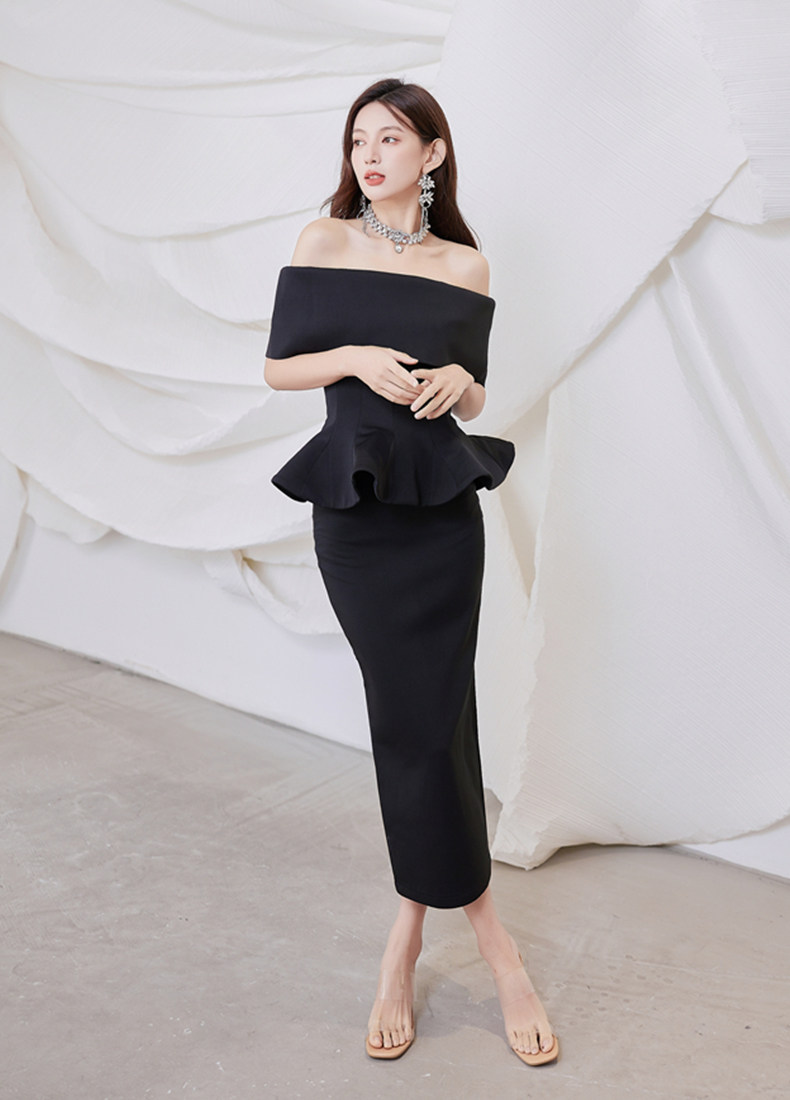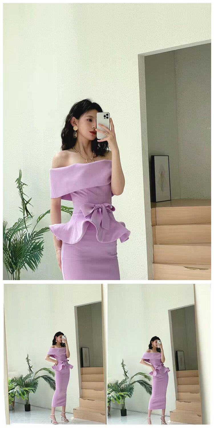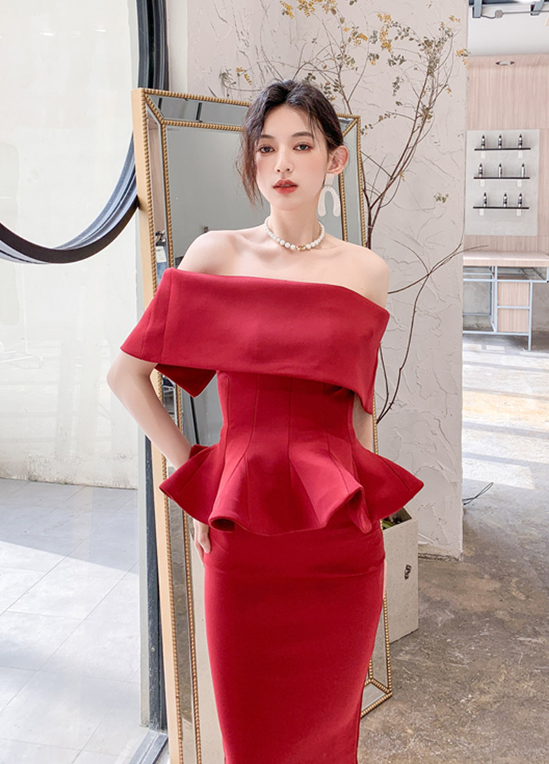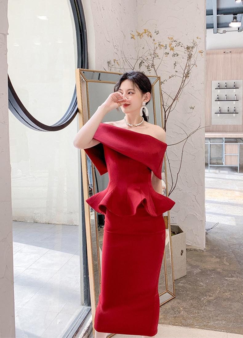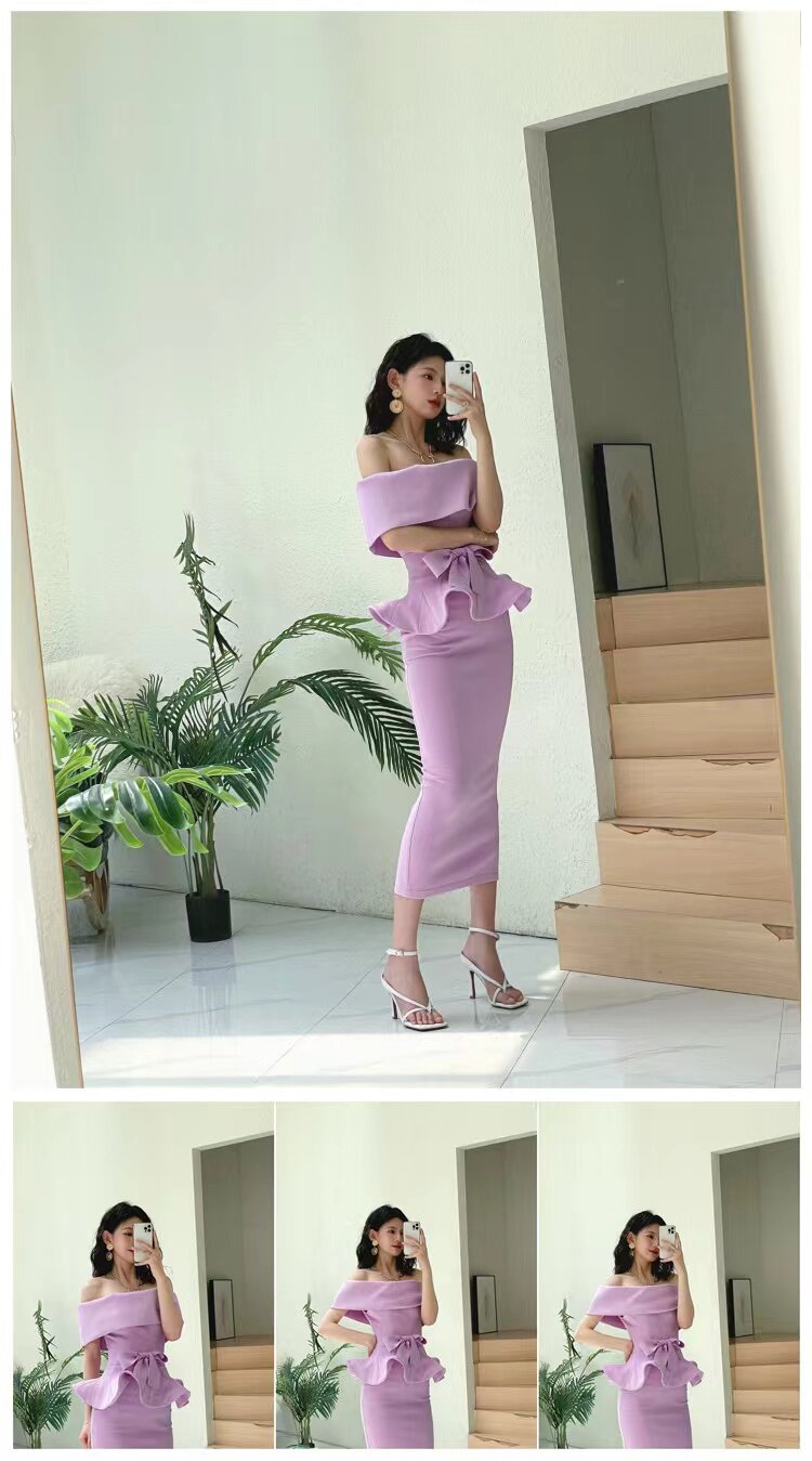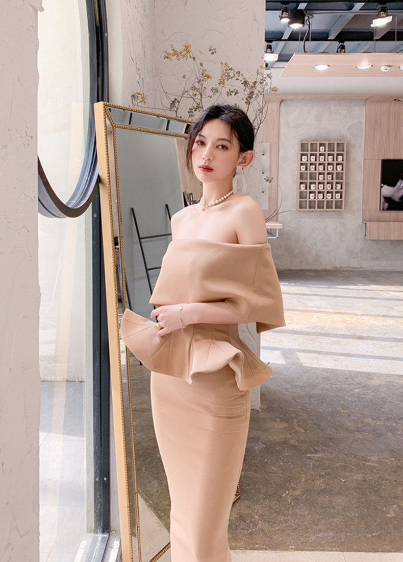 2025 spring and summer new arrivals, ladylike one-shoulder slim-fitting gown, backless two-piece hip-hugging ruffled dress
