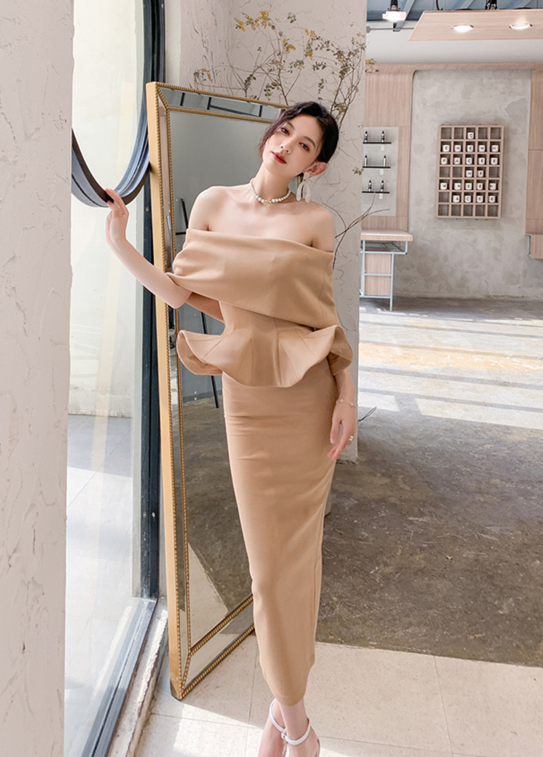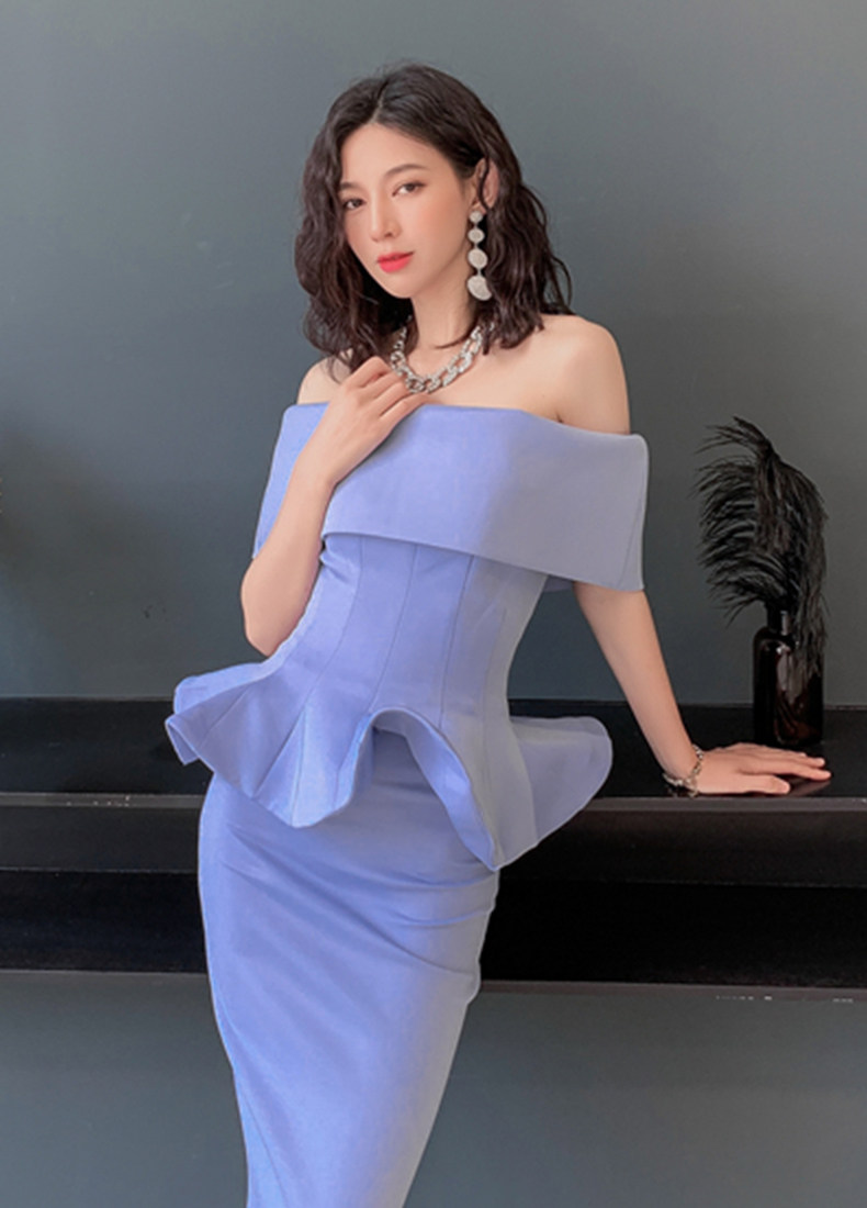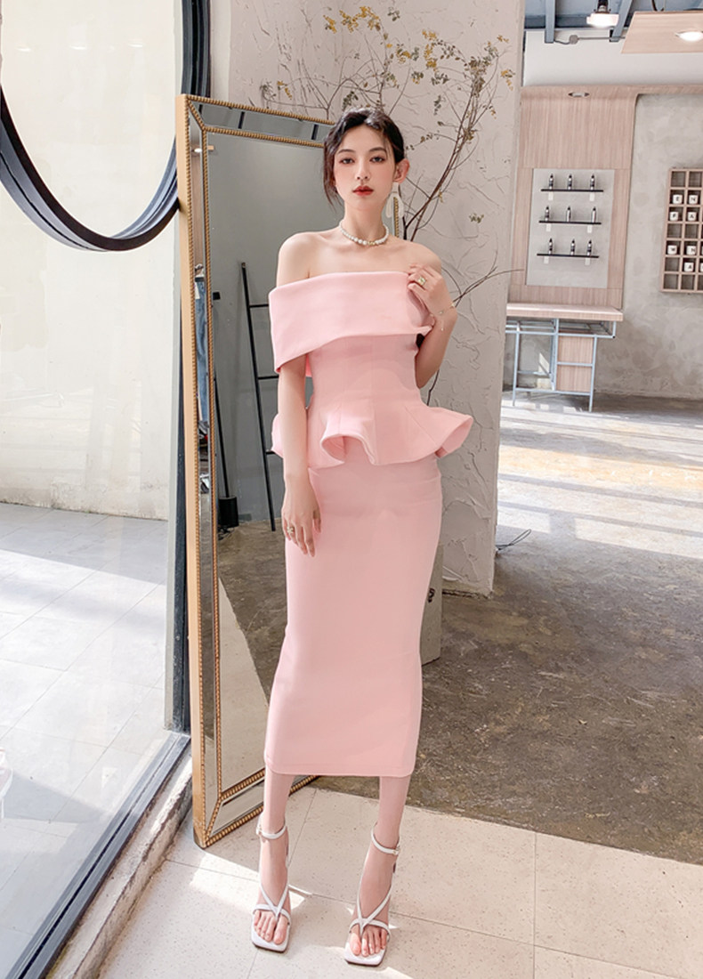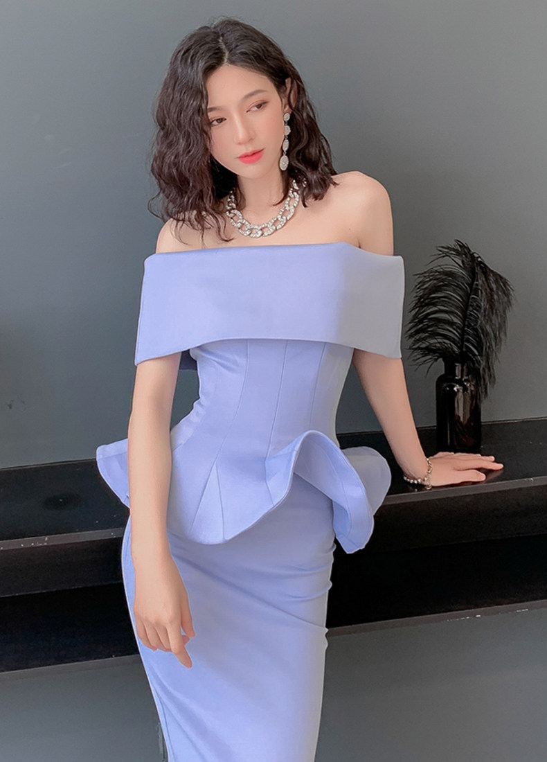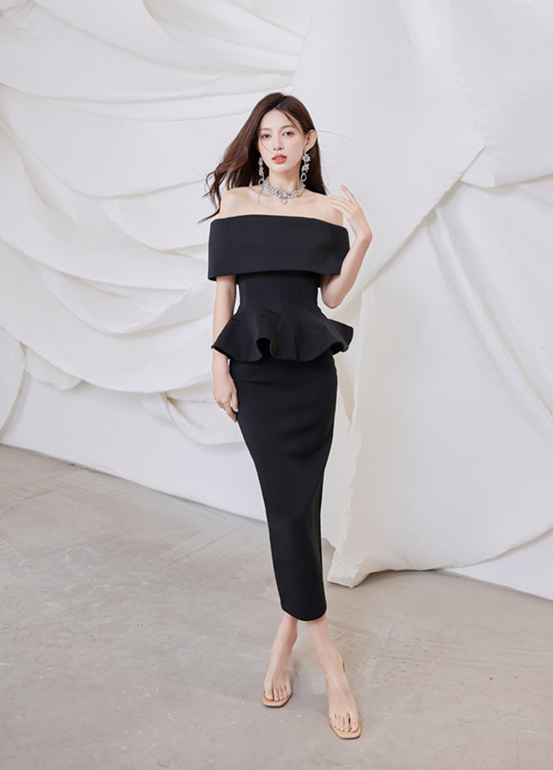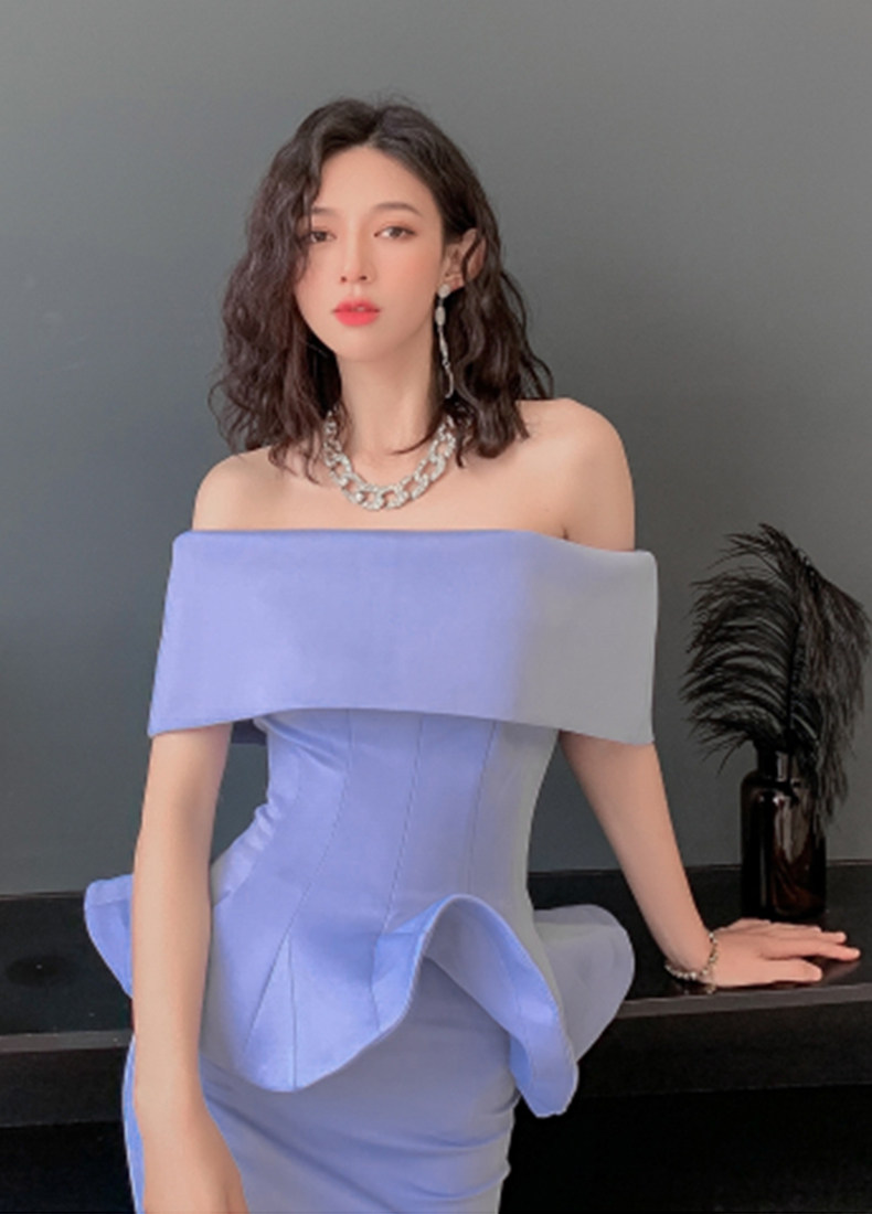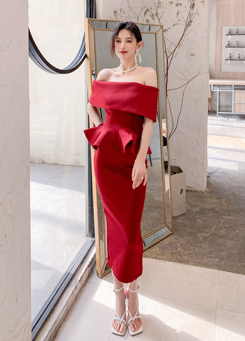 2025 spring and summer new arrivals, ladylike one-shoulder slim-fitting gown, backless two-piece hip-hugging ruffled dress