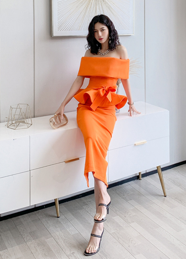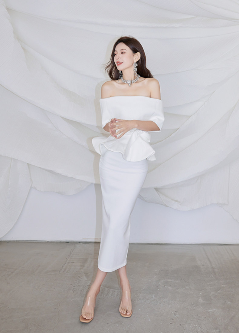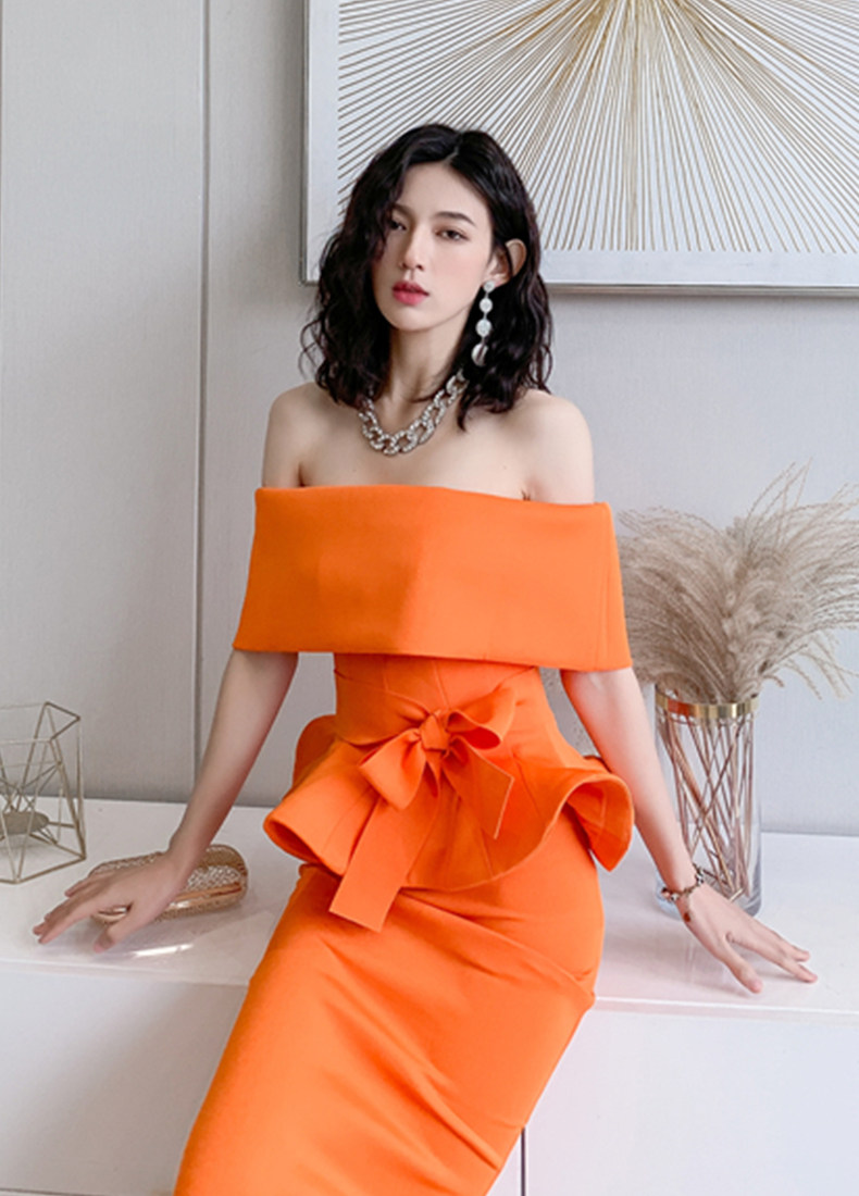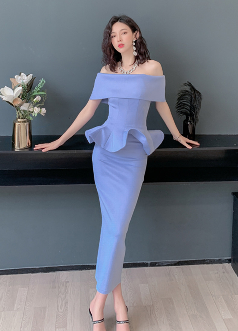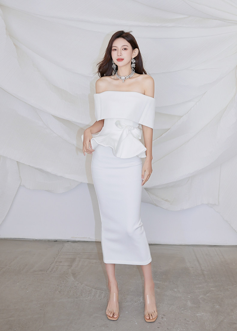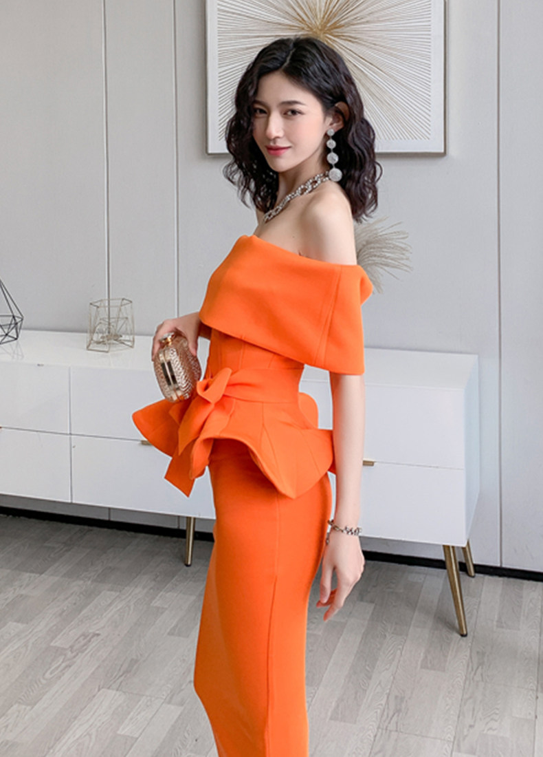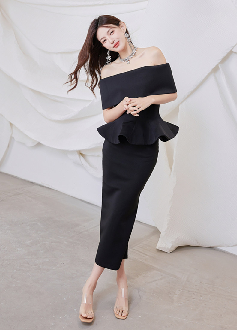 2025 spring and summer new arrivals, ladylike one-shoulder slim-fitting gown, backless two-piece hip-hugging ruffled dress