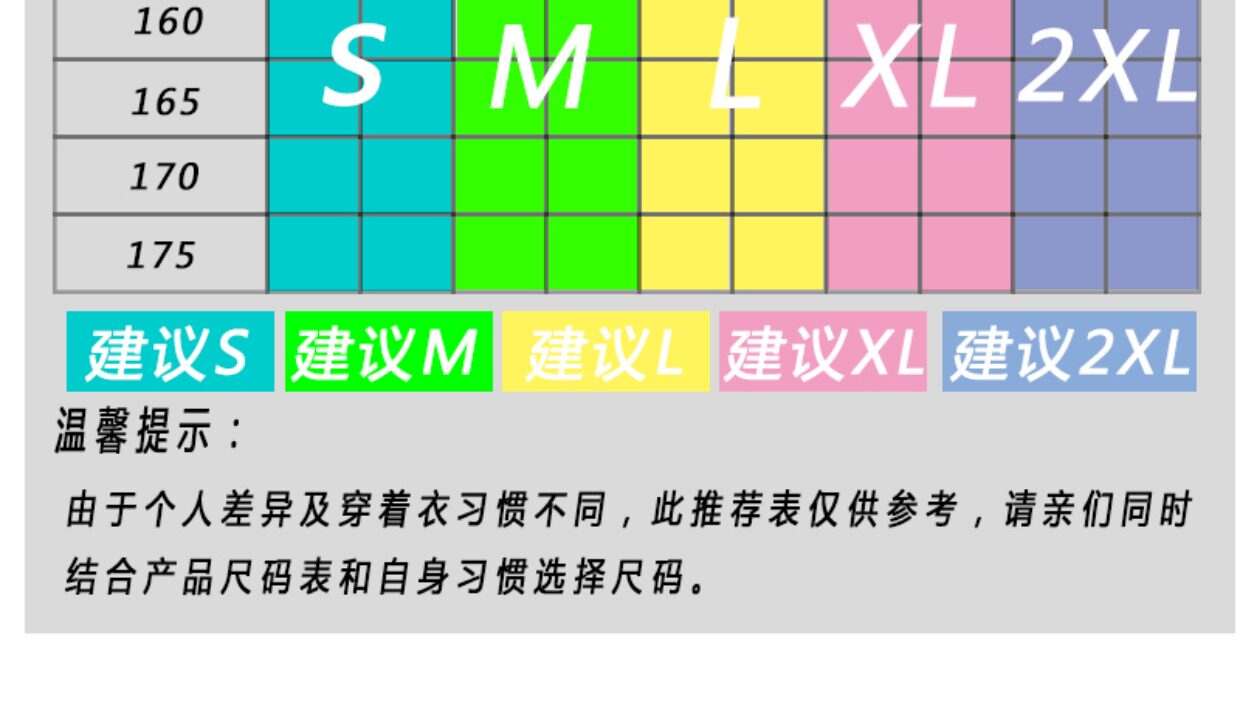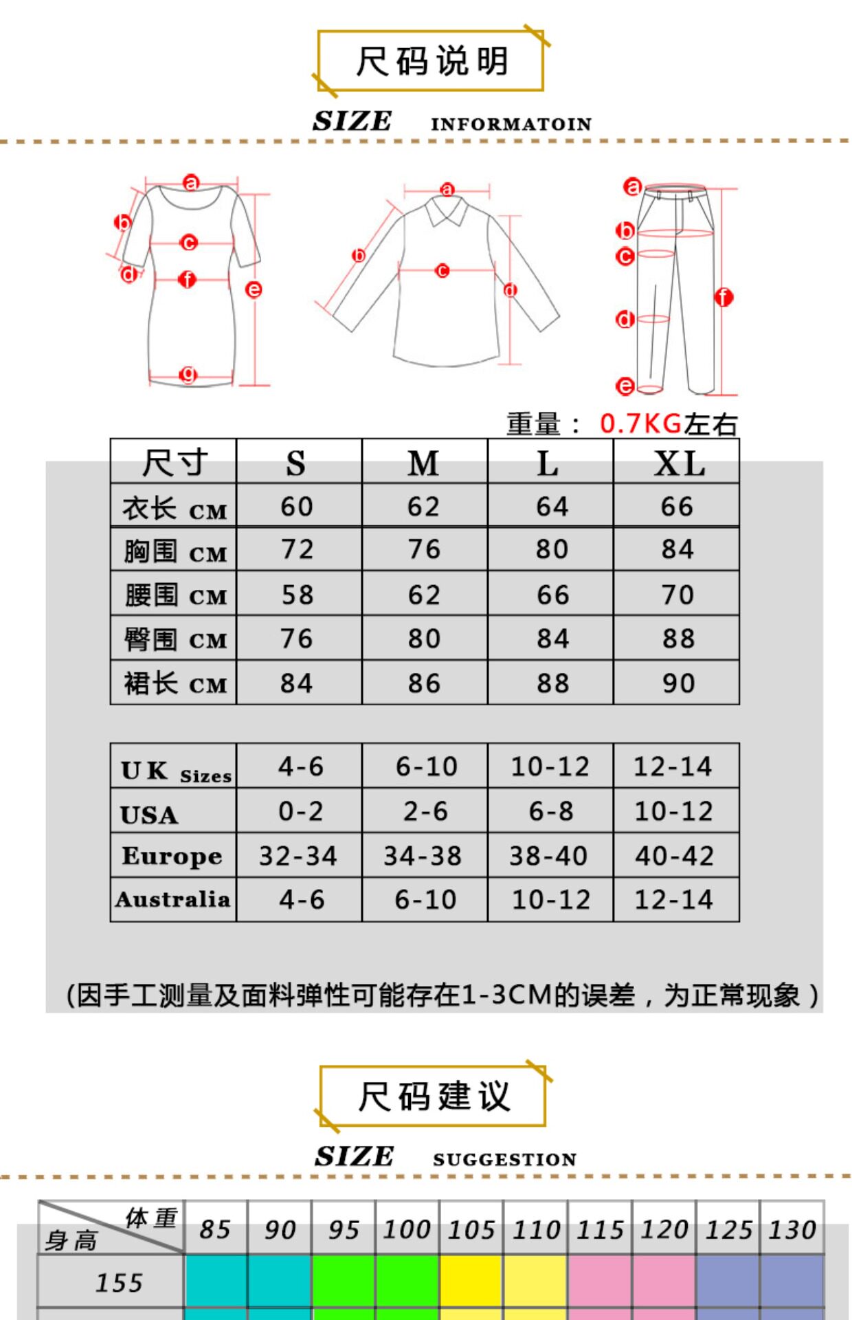 China (cm) 160-165/84-86 165-170 / 88-90 167-172 / 92-96 168-173 / 98-102 170-176 / 106-110