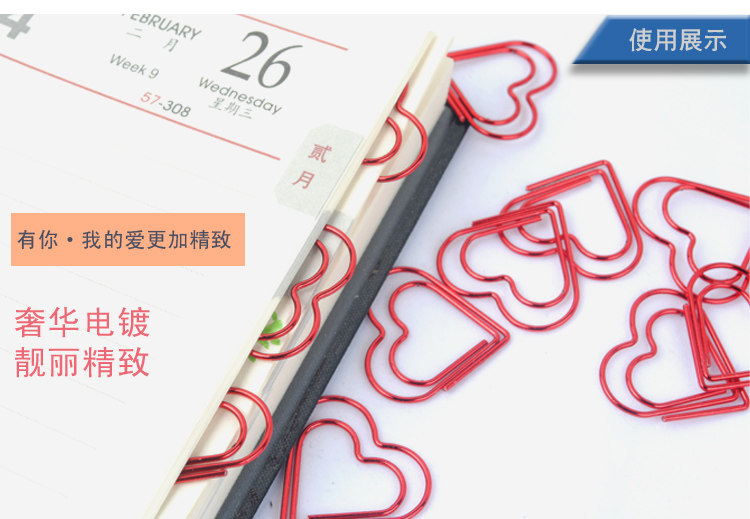 Lingqi new love red paper clip bookmark hand ledger peripheral learning stationery metal gift Taobao hot sale