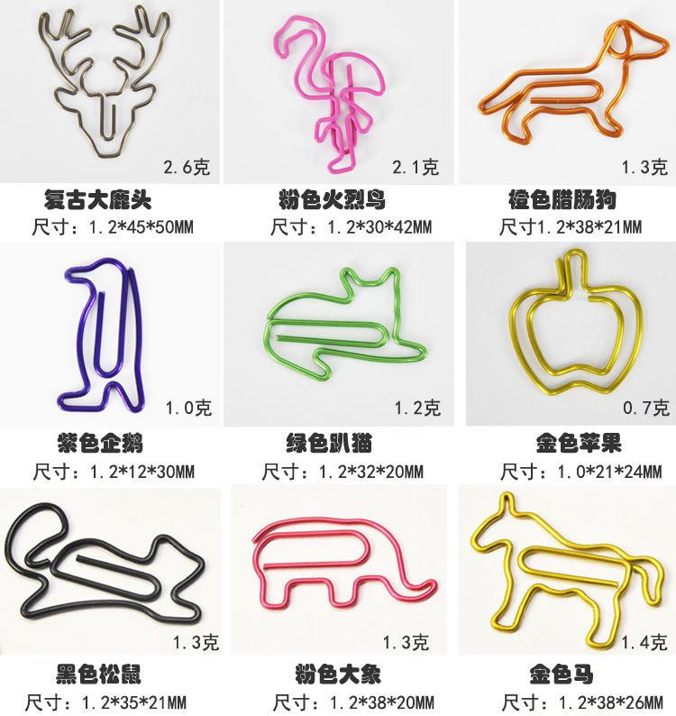 Hot-selling Korean version of creative metal wallet decorative accessories cute shape paper clips colorful cartoon animal paper clips