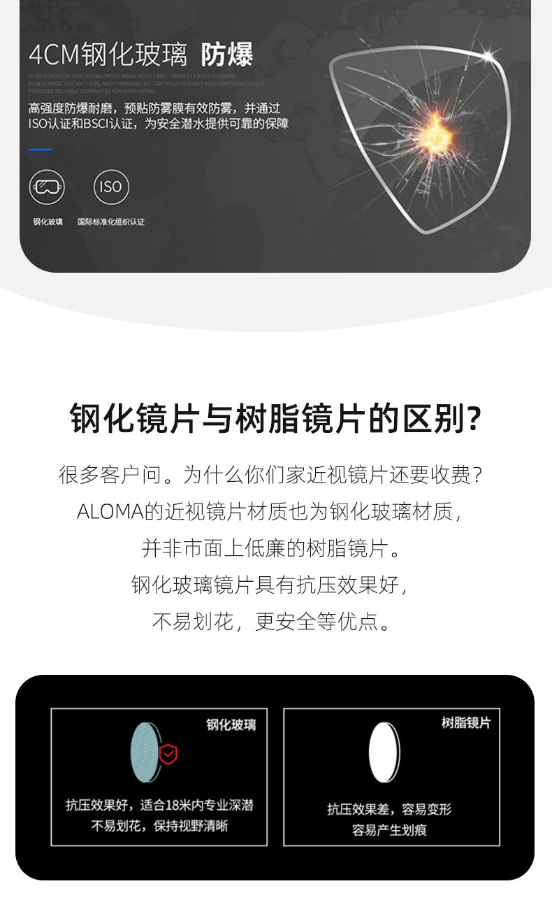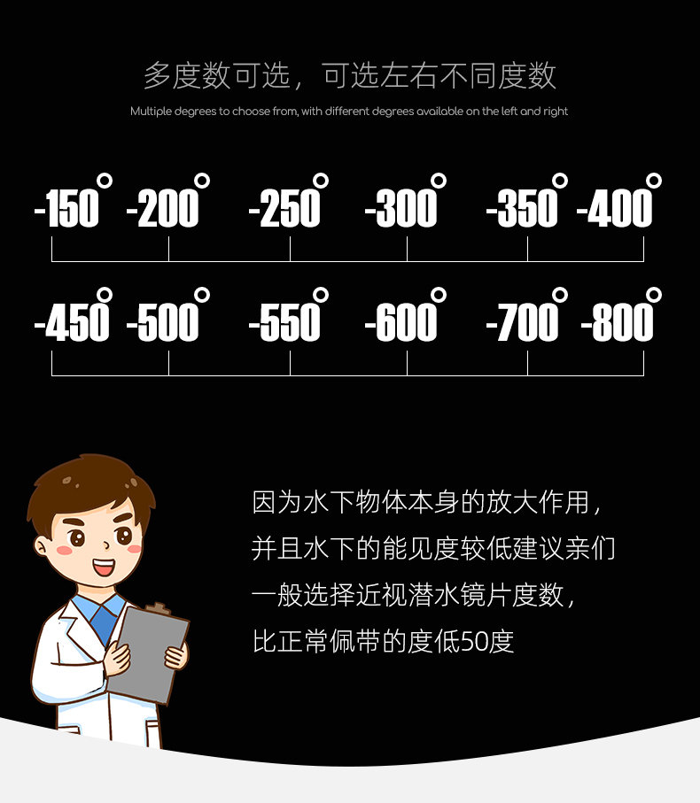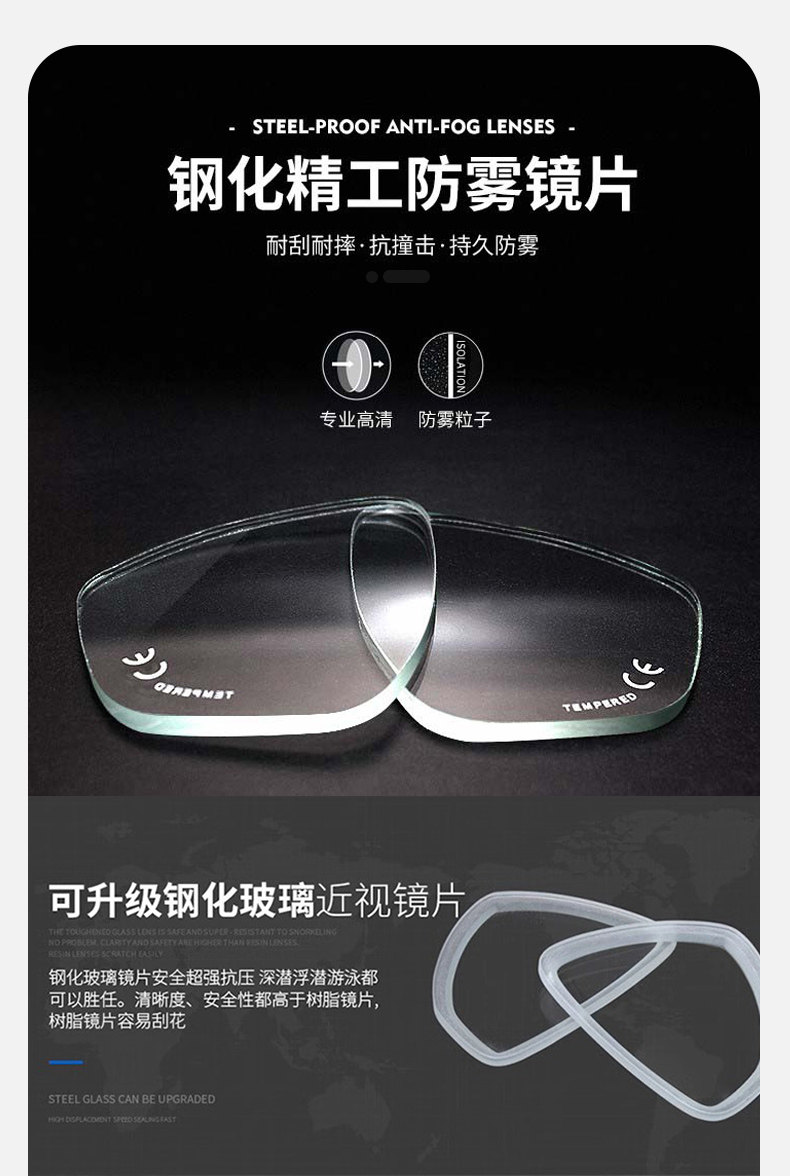 150-900 degrees special thickened explosion-proof tempered glass resin myopia lens for diving mask, installation included